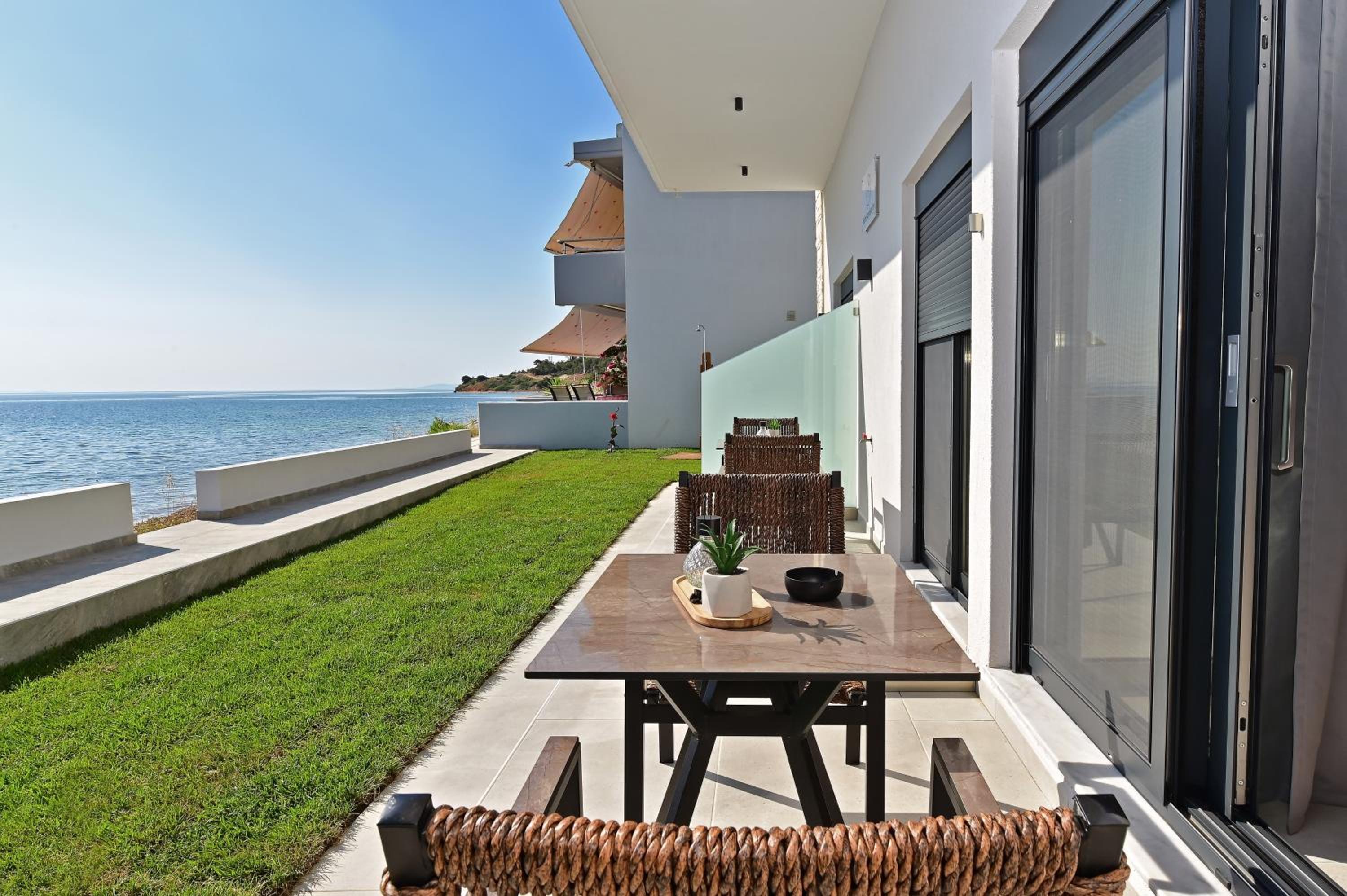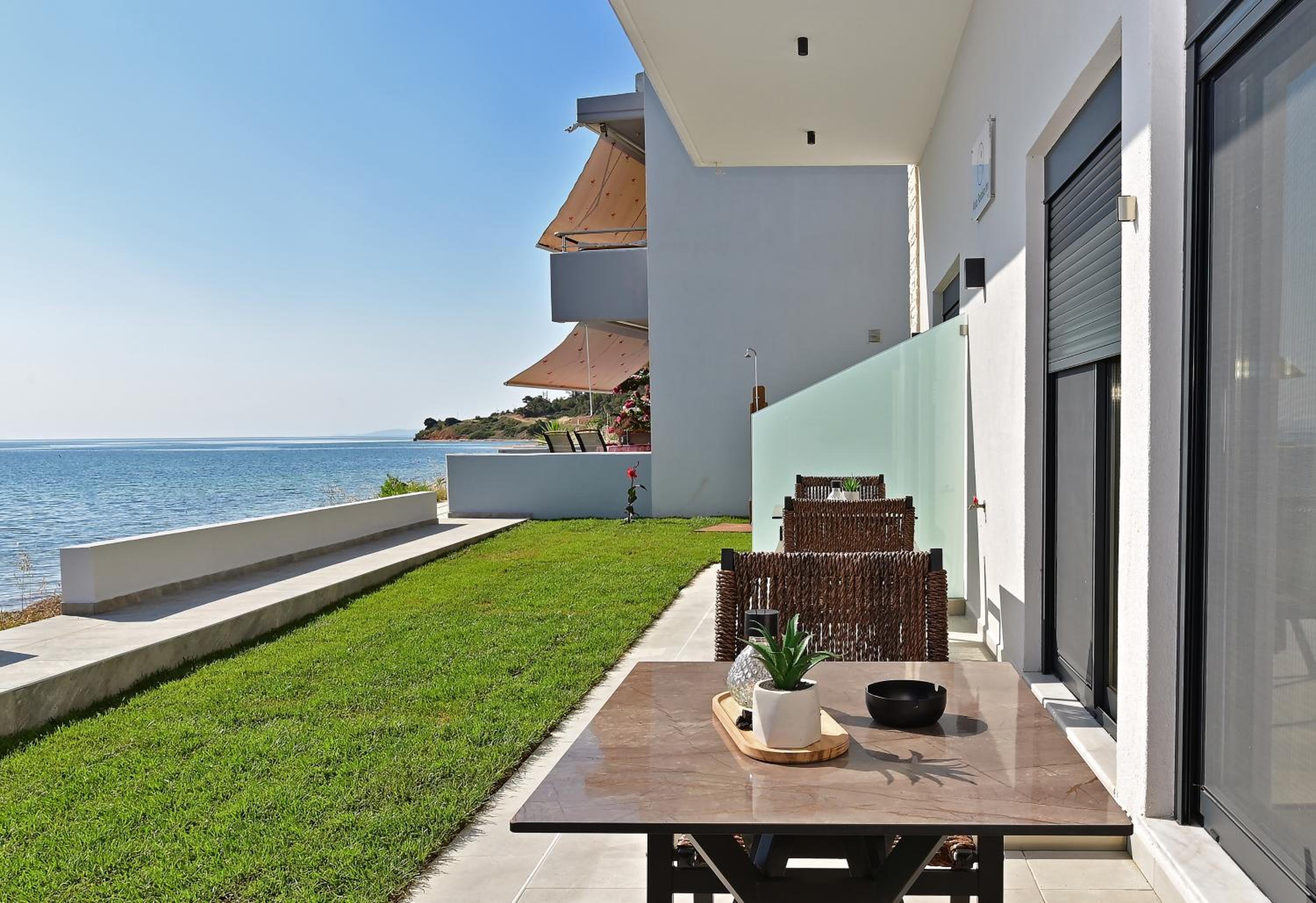 Brand new apartment, well equipped kitchen with appliances and utensils. Closeness to the sea practically it takes 10 steps through the garden of the apartment and the private beach that is equipped with sun beds and umbrella.