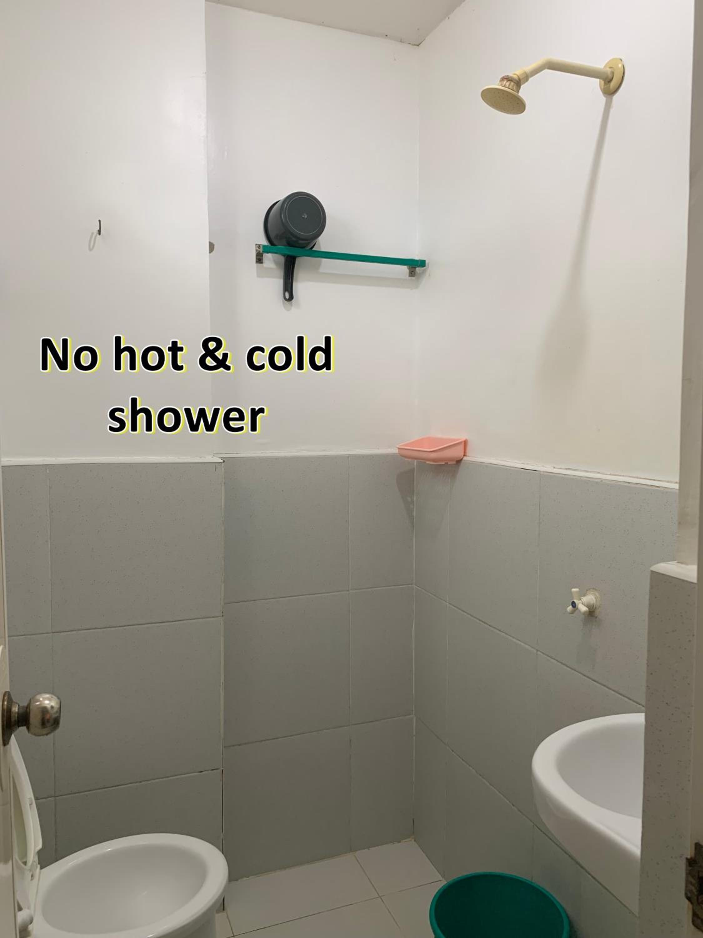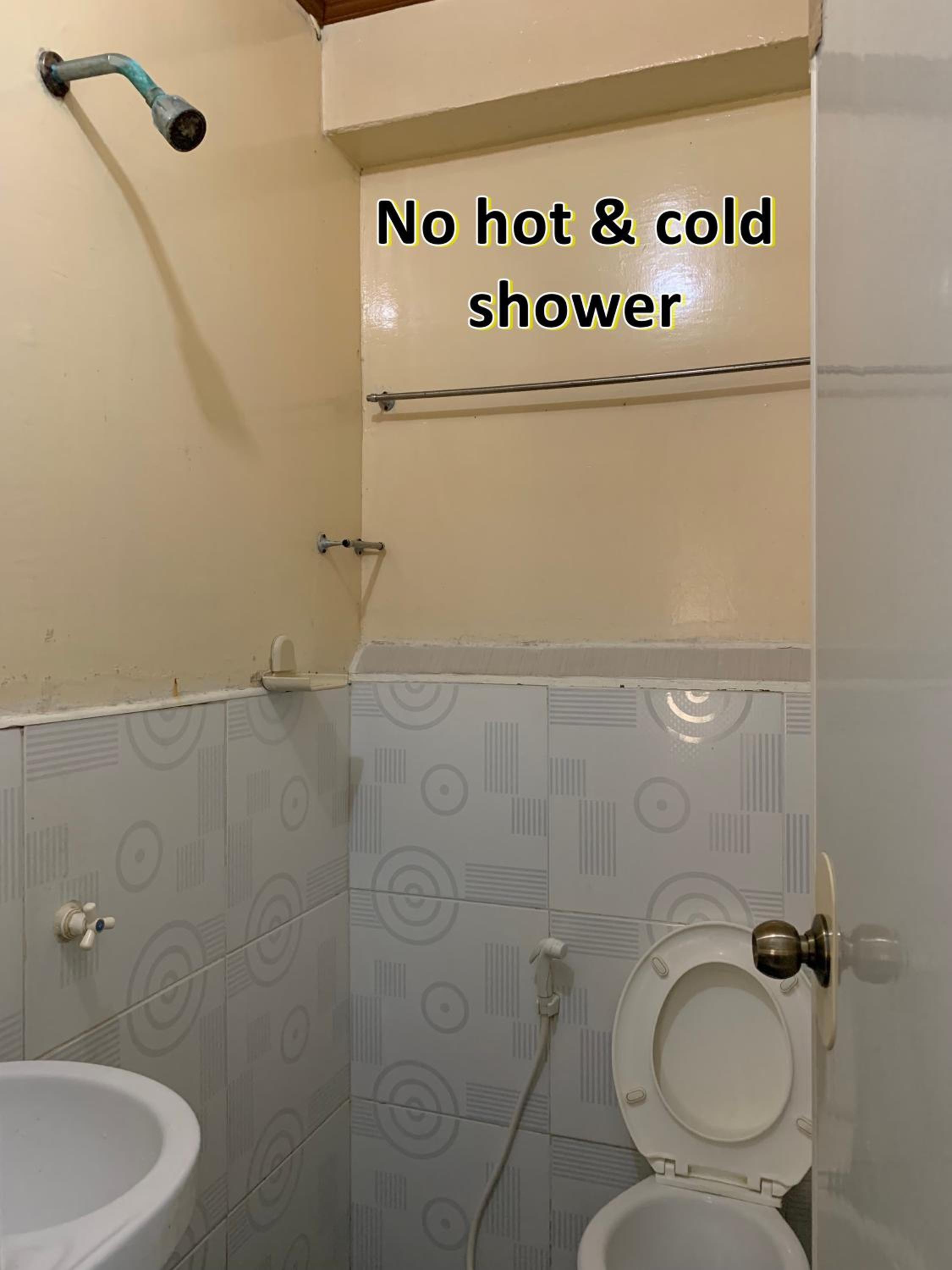 Eau froide. Pas de chasse d'eau. La douche est sur les toilettes