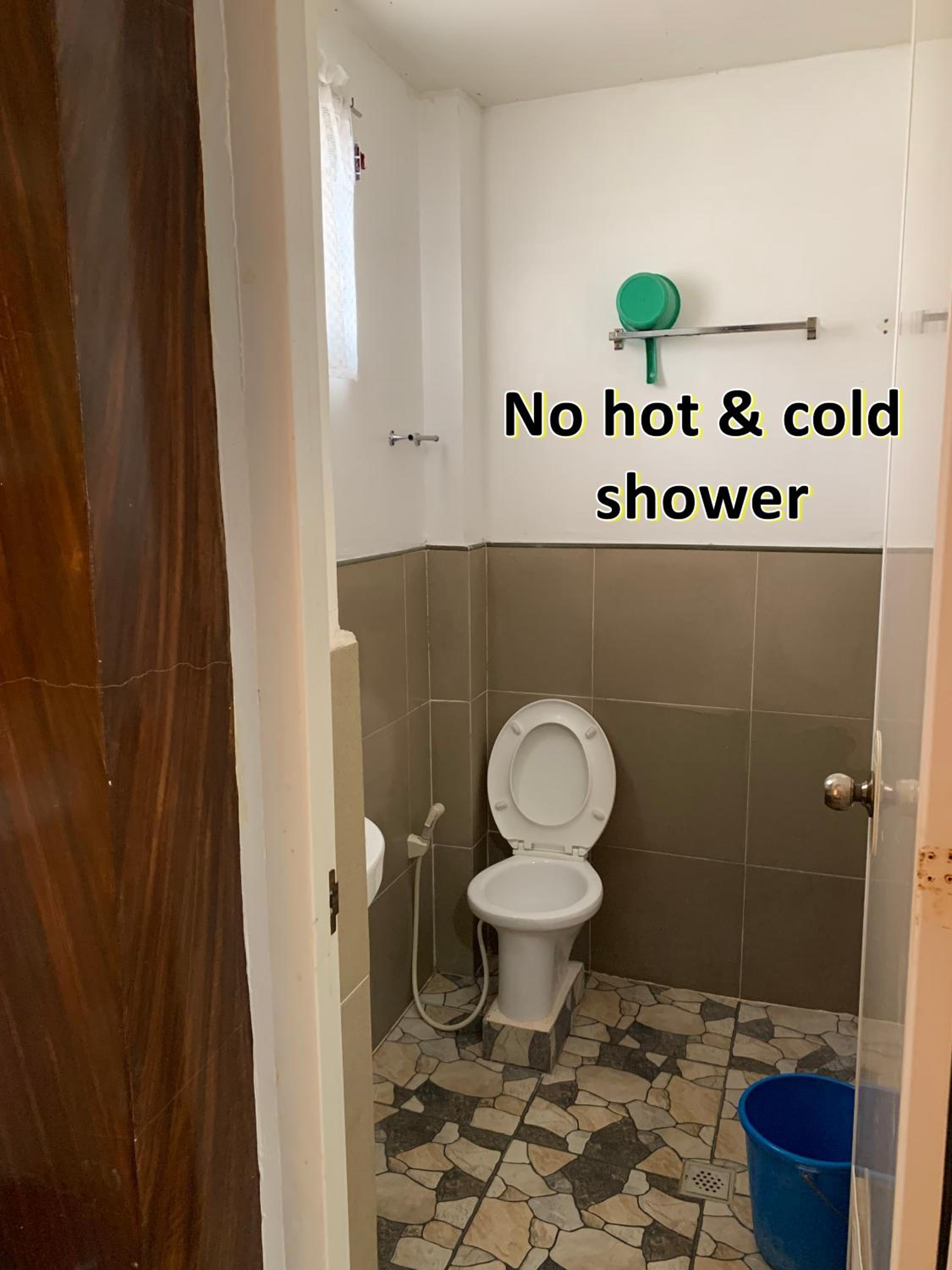Seulement de l'eau froide. Présence d'un gros cafard. Bruyant par un voisinage extérieur. Être au rez-de-chaussée