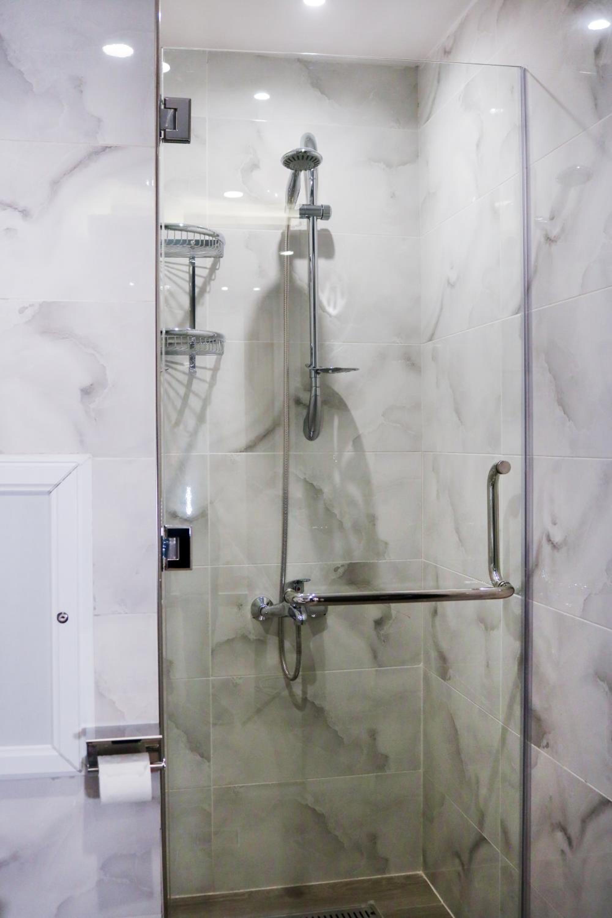 When i was taking a shower the water spilled out of the shower to the floor, but it was ok