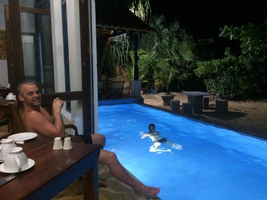 We thoroughly enjoyed our stay at Thomas’s place. It was clean and relaxed. You could go straight onto the beach from the hotel and there were plenty of sunbeds. The pool was nice and clean. The beach was beautiful and quiet - what a gem. The breakfasts and dinners made by Thomas were delicious and copious. Everything was fresh and really nicely cooked. From large platters of fruit in the morning with eggs any way you wanted them done to delicious fresh tuna and lovely curries in the evening - this was by far the best food we had in our 3 weeks in Sri Lanka. A nice touch was the free water, tea and coffee we could help ourselves to all day. We really enjoyed our stay