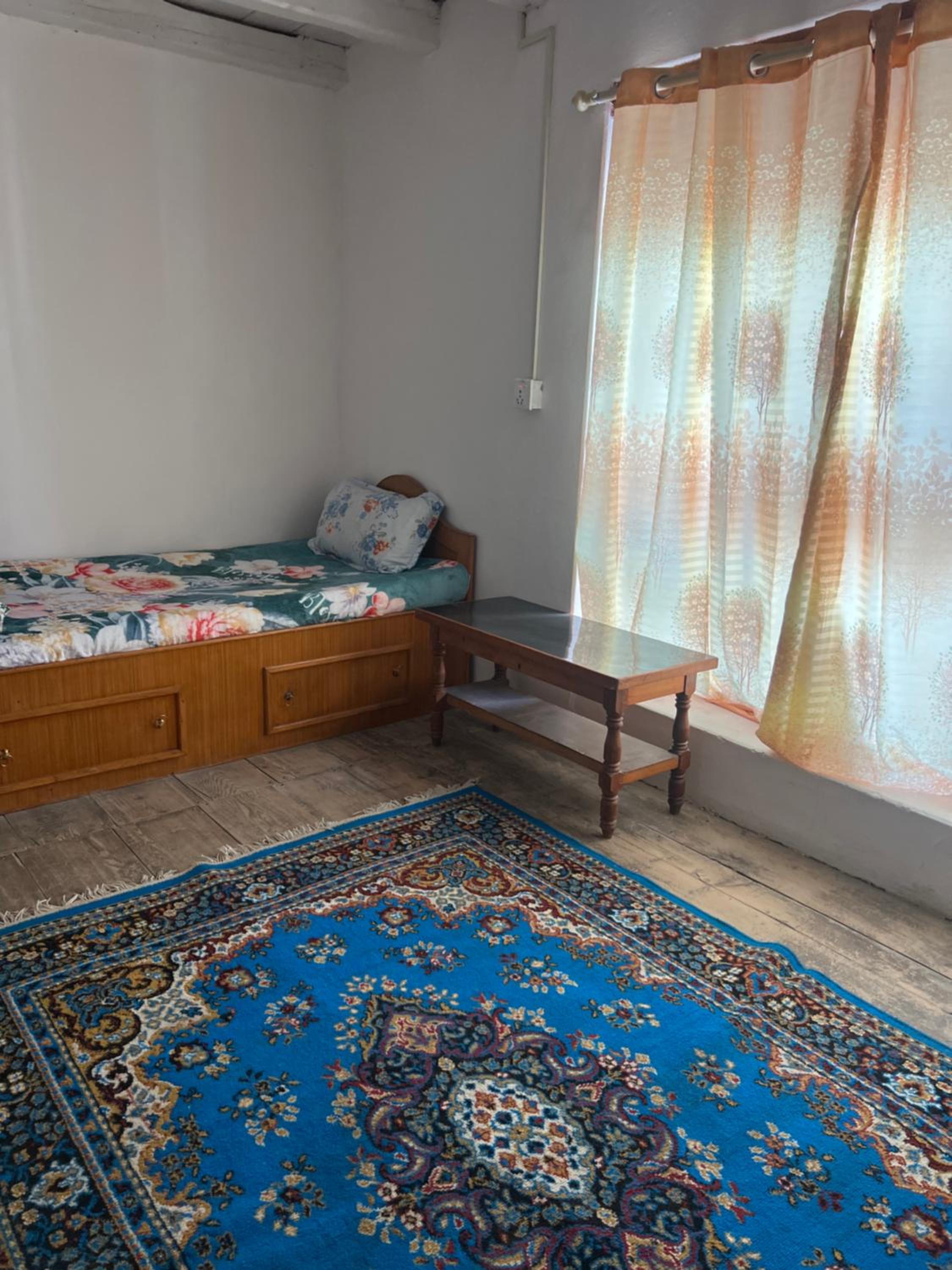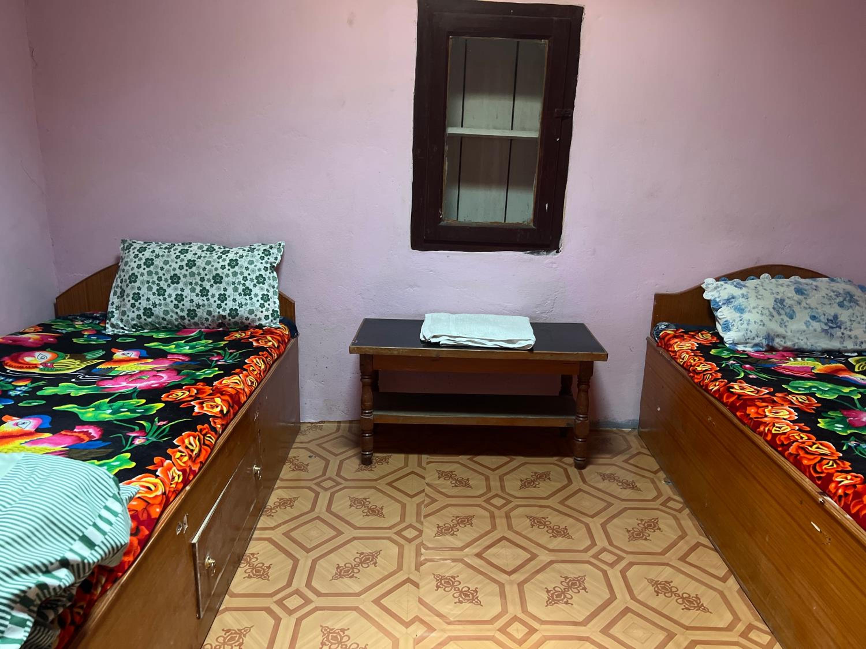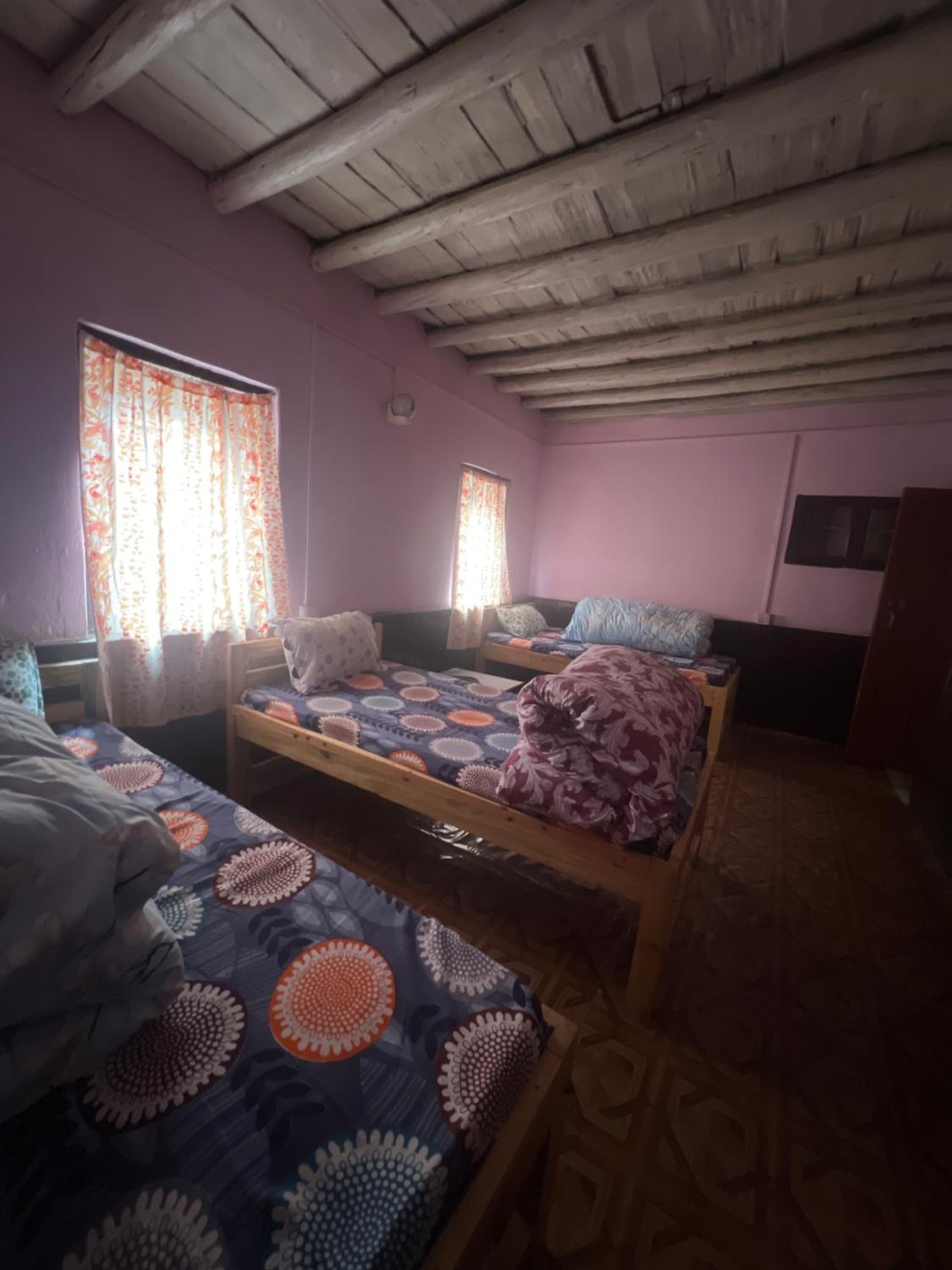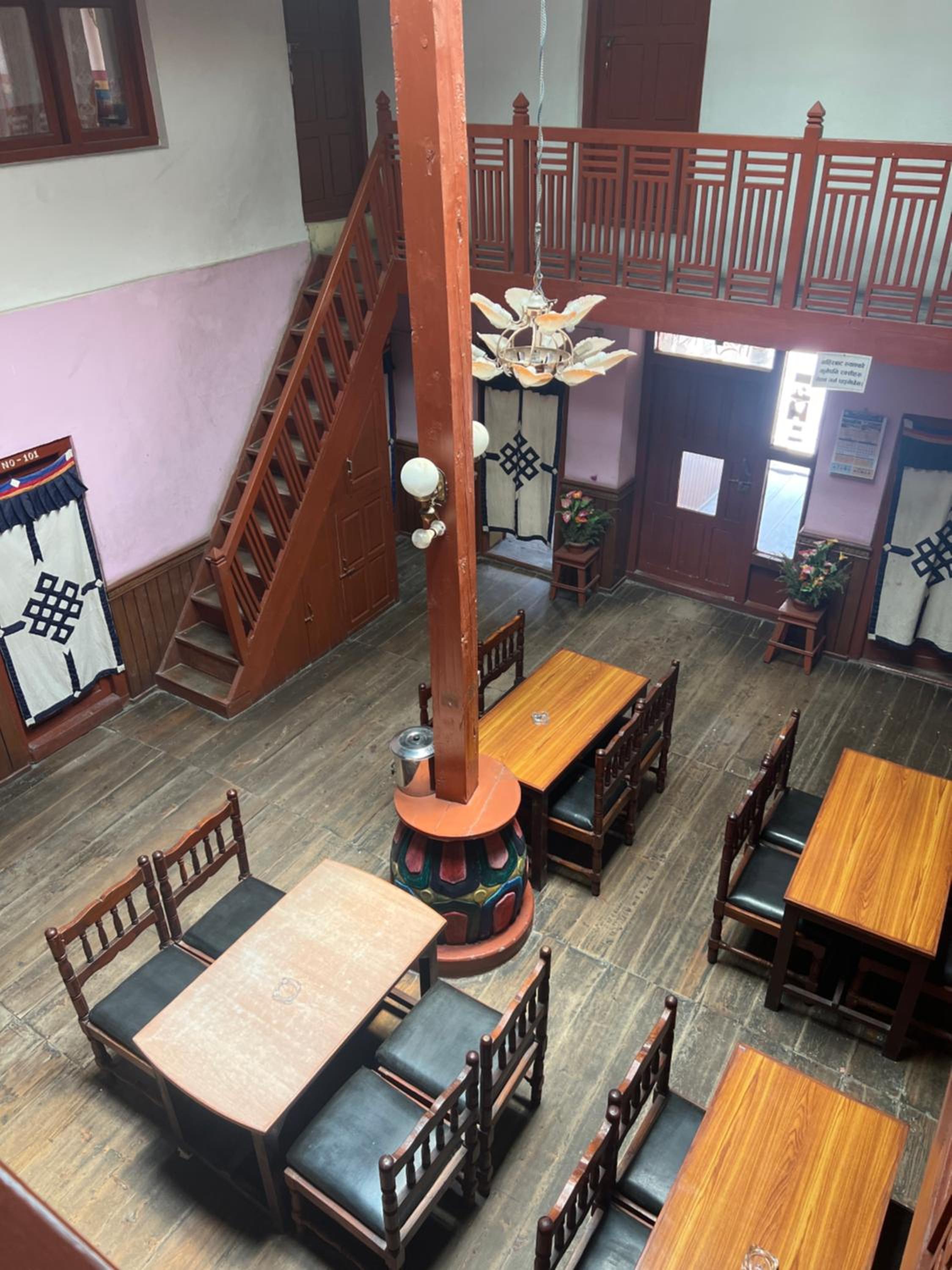 Cozy common area around the wood burning stove, with the host telling stories about the area. Lovely old wooden building with character. One of our most memorable stays in Nepal.