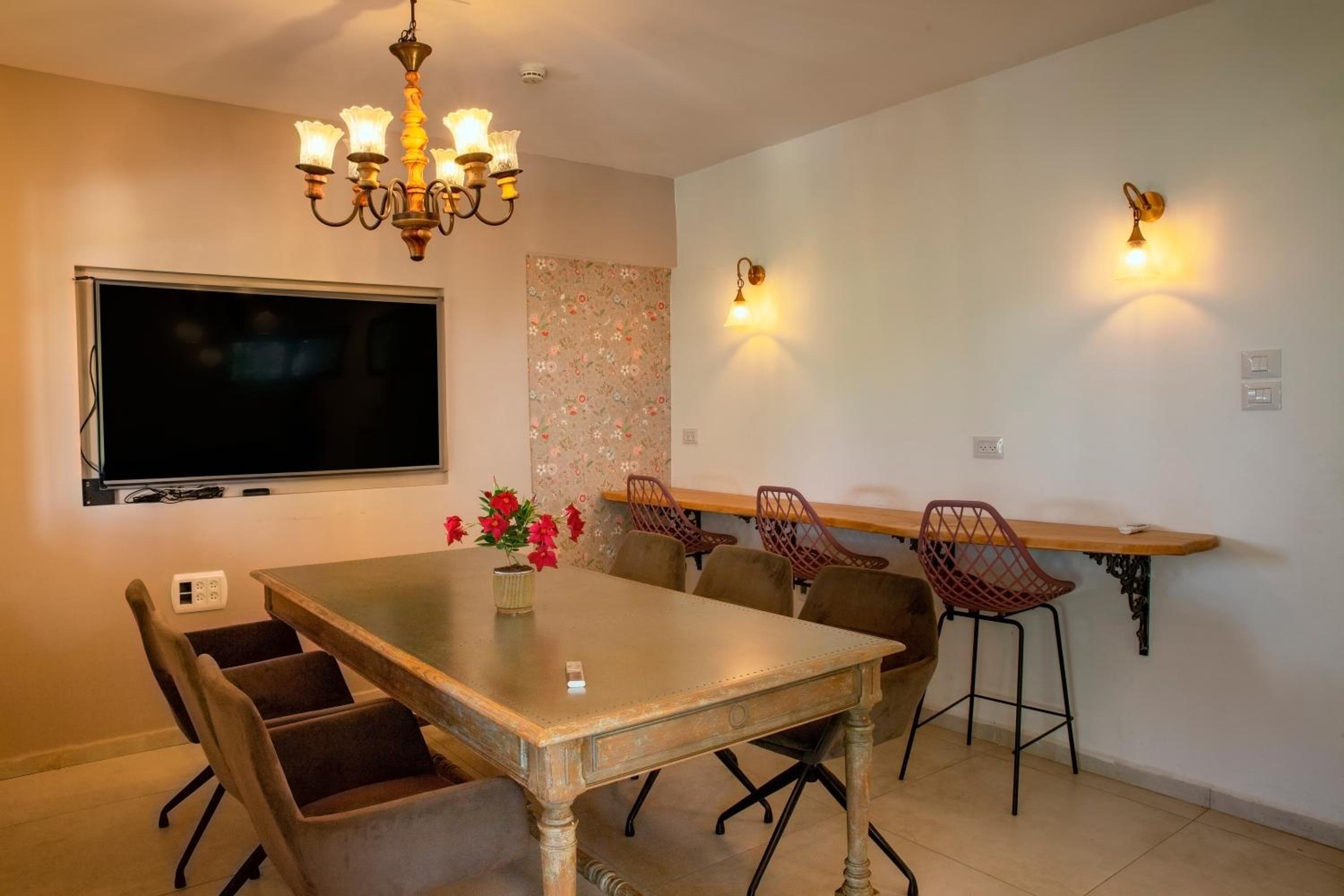 The hotel boasts expansive gardens and a refreshing swimming pool, perfect for unwinding and soaking up the sun. With ample outdoor space furnished with sun loungers, tables, and chairs, guests can relax in comfort amidst the lush greenery.