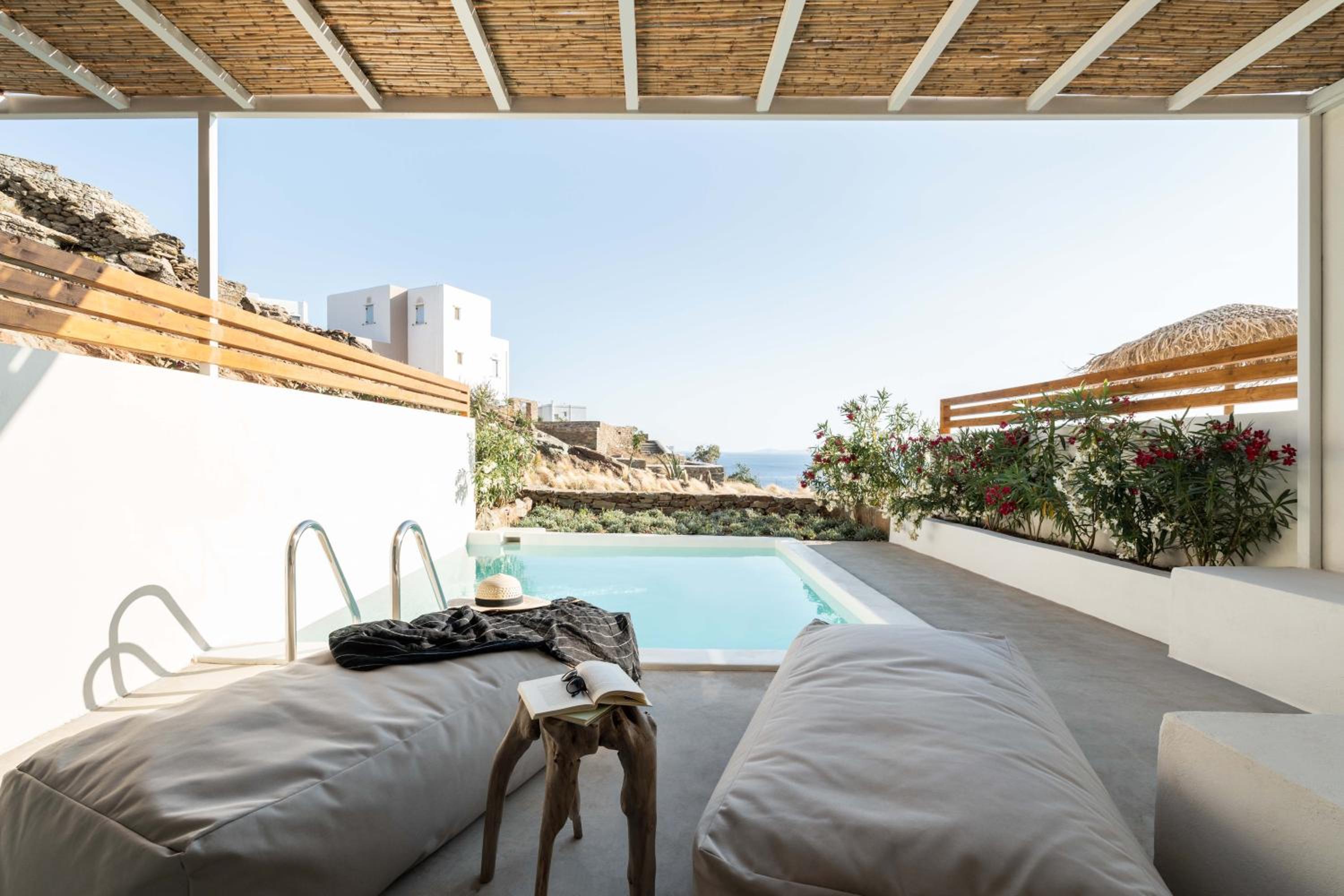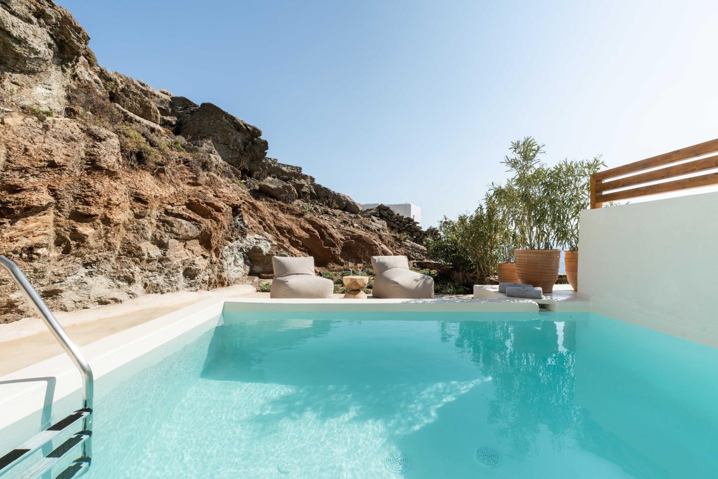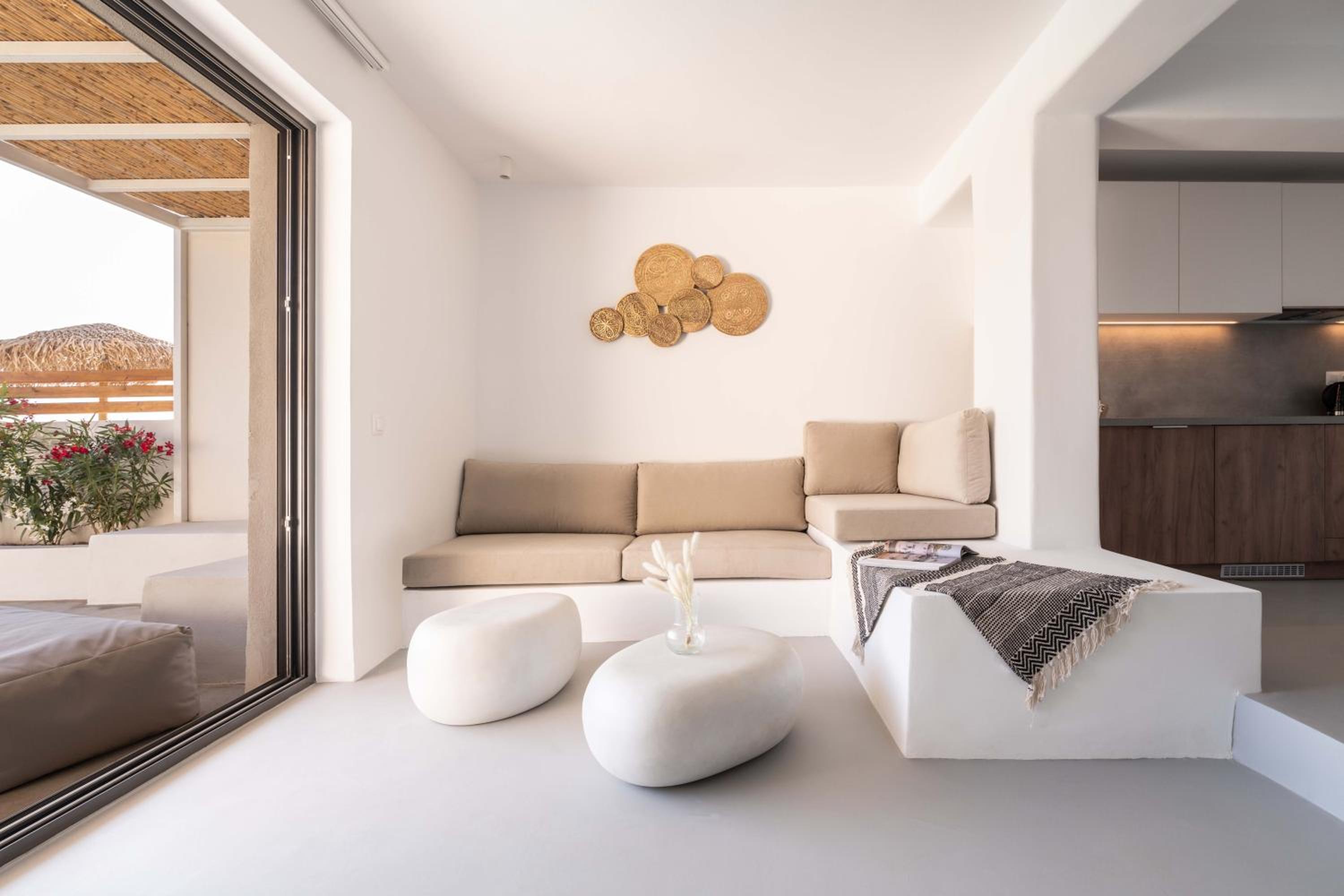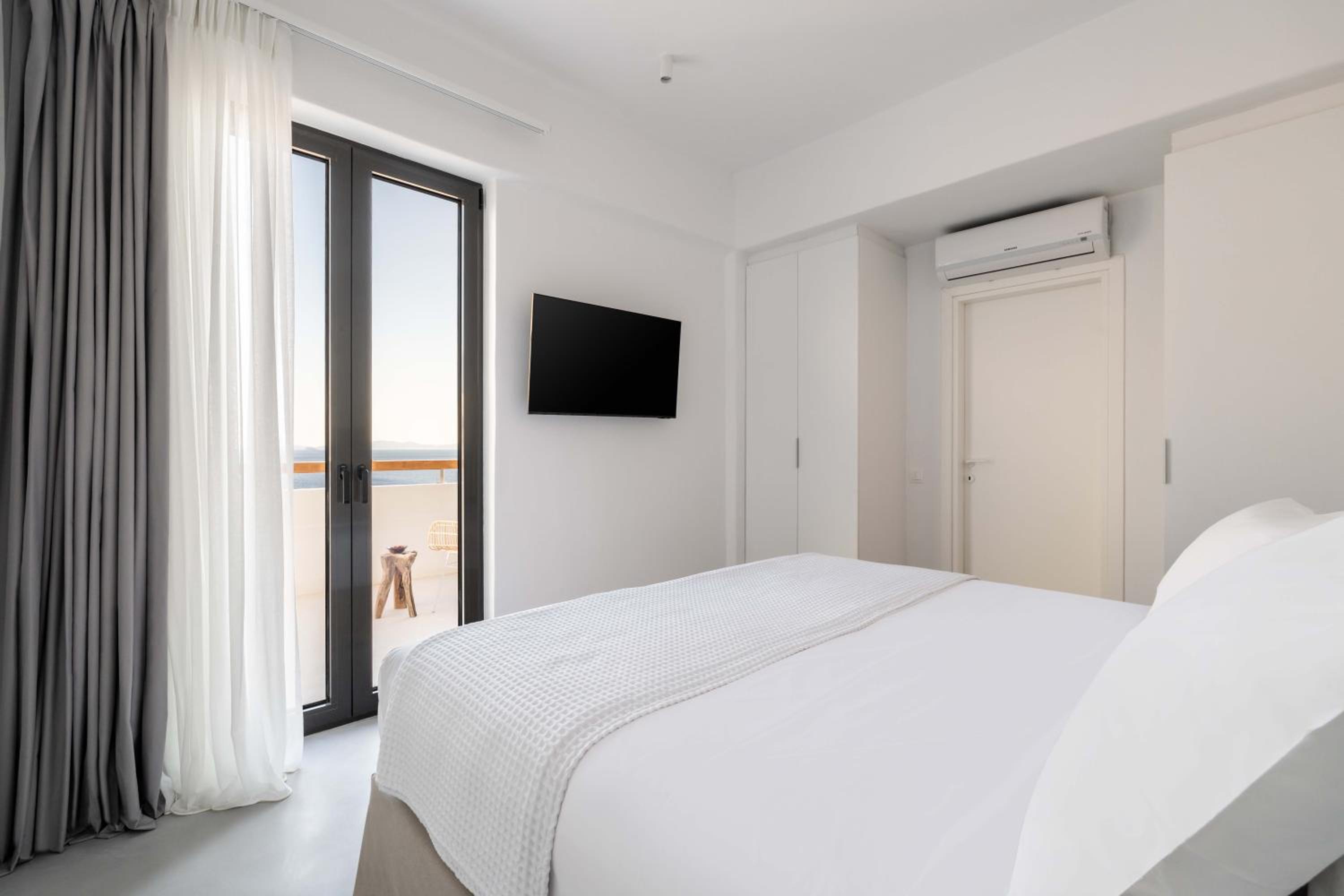 Experience a luxurious stay at Aura Villas Tinos, located just 300 meters from Vourni Beach. Our air-conditioned rooms are equipped with modern amenities including a coffee machine, fridge, and flat-screen TV. Relax on your private terrace and enjoy the comforts of a minibar and safety deposit box.