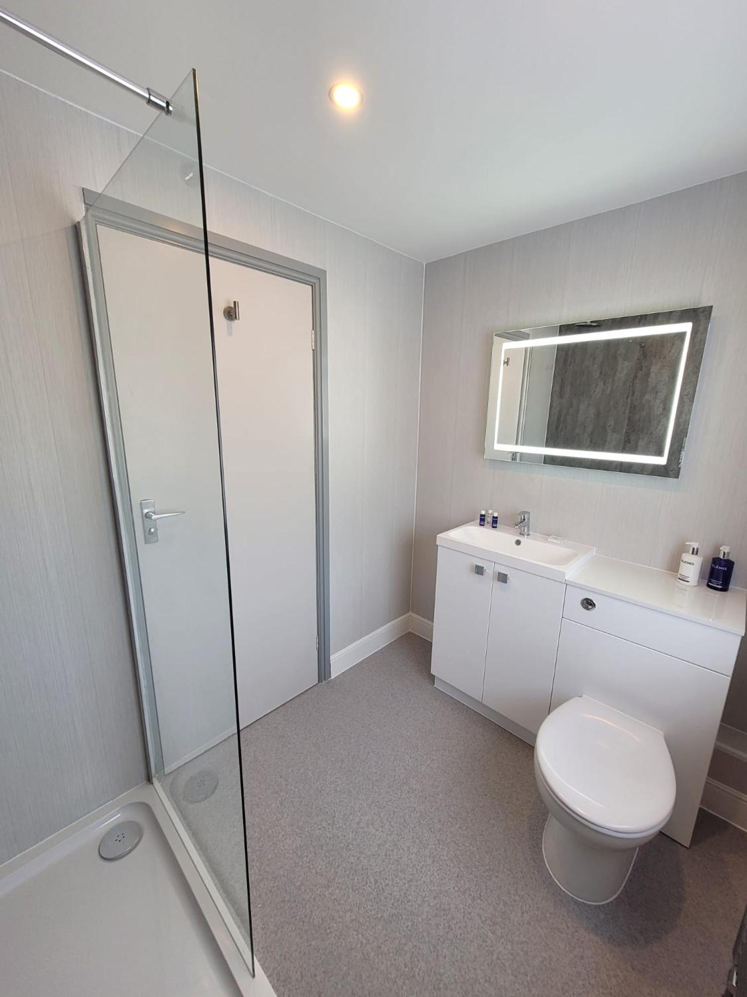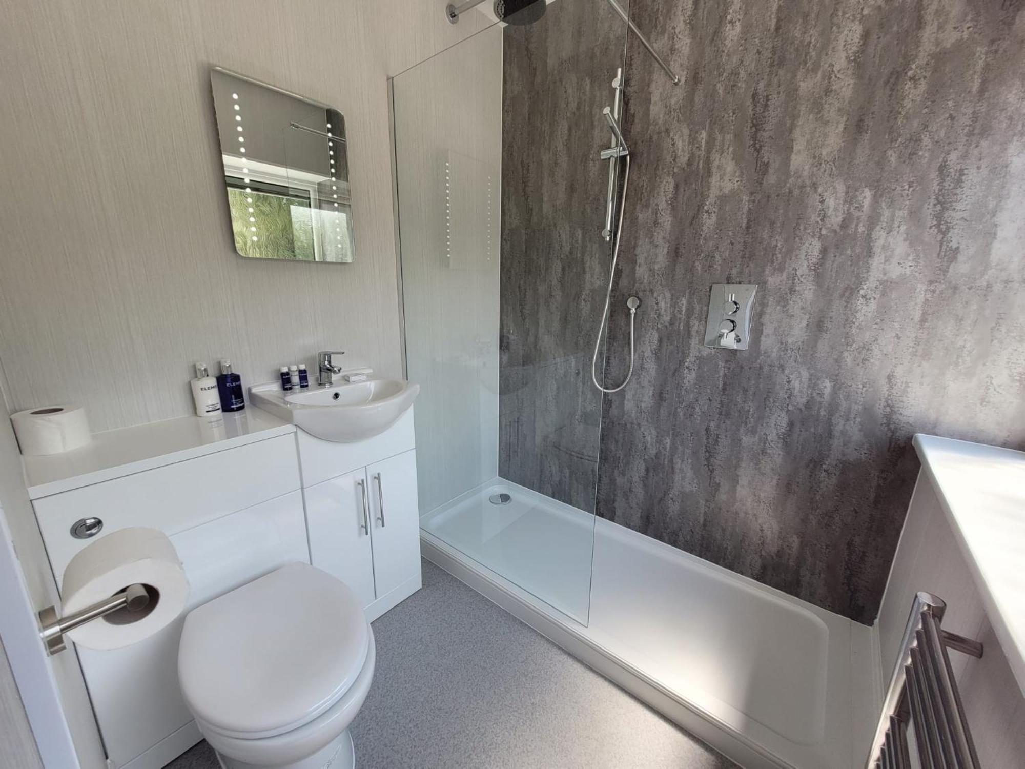 lack of toiletries and no shelf in the shower No light at the desk. Lack of space round bed very awkward to turn.