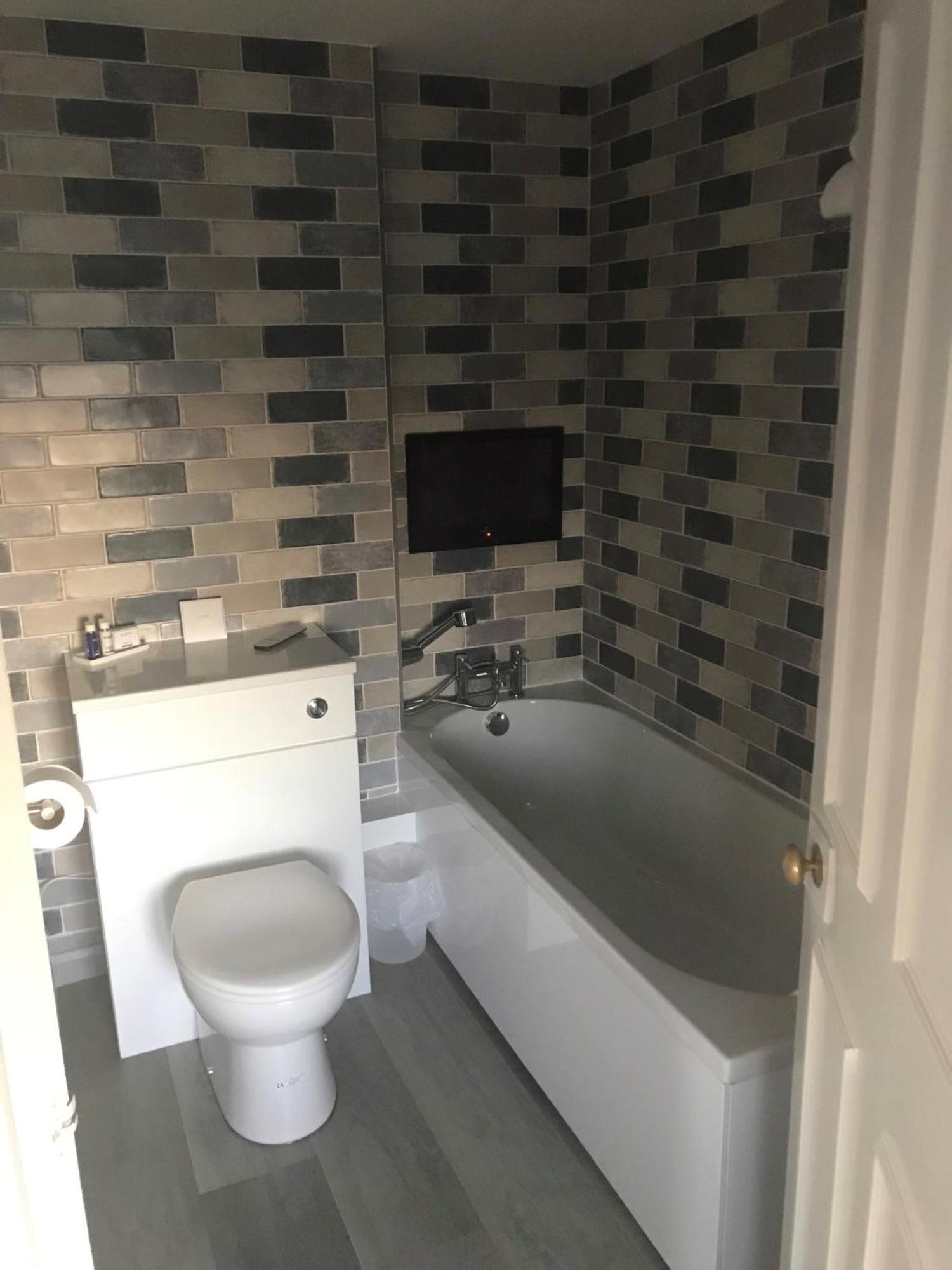 Rooms a bit tired with flakey paint. No toilet roll holder.