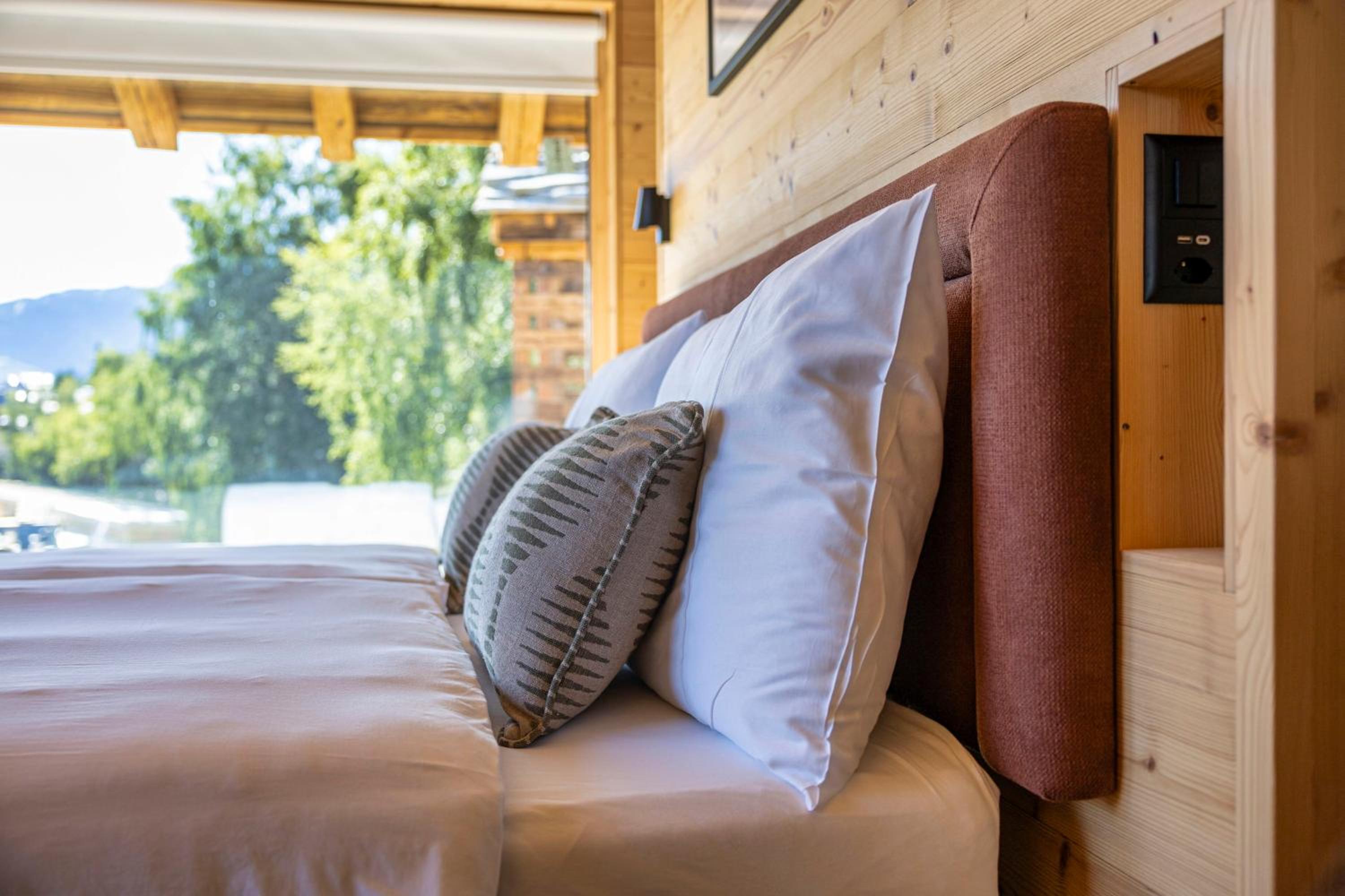 Unglaublich schöne Atmosphäre mitten in den Bergen. Die Zimmer sind in einer weitläufigen Anlage auf kleine Chalets verteilt.