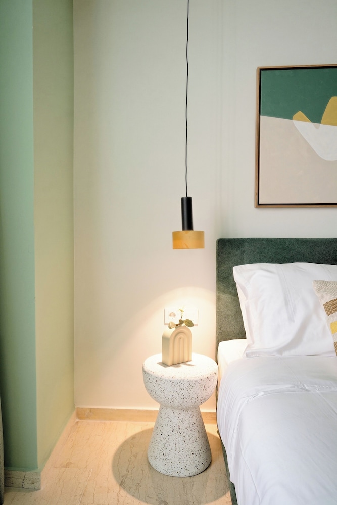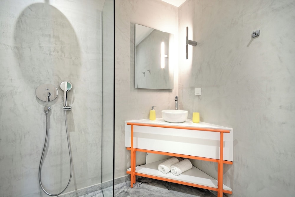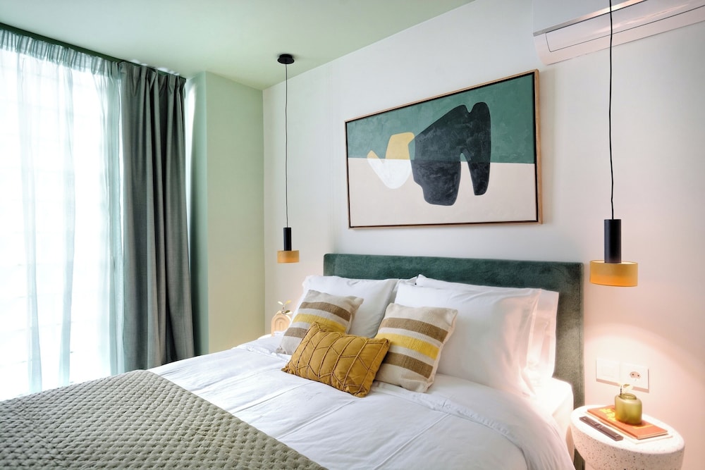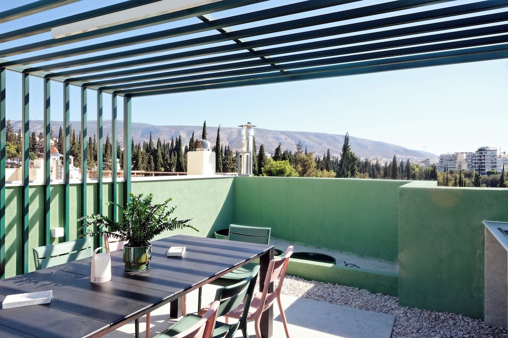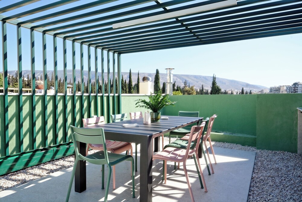 Modern, spacious apartments close to all sites including the Acropolis - 20 walk, ancient Agora - 30 minutes walk. Communication was easy & prompt the block is made up of approximately 7 flats on 5 floors which have been designed individually with no expense spared. All equipment and bedding felt new & our flat Eden had two bathrooms & an outside courtyard for our private use. There’s also a rooftop space with seating, table & 2 loungers with a view of the Acropis which is quite spectacular at night when it’s lit up. The surrounding area includes a jazz club literally 100 metres away & several supermarkets & bar/restaurants just around the corner- 300 metres away. All in all this is a great choice for a few days stay in Athens at a very reasonable price.
