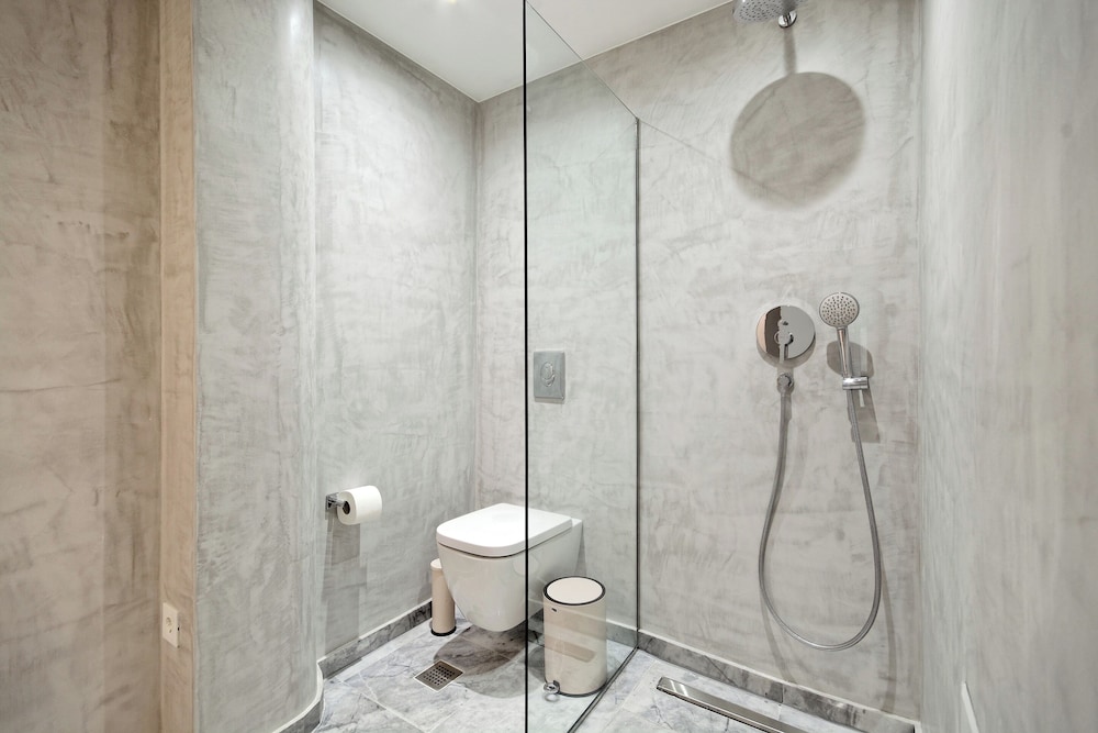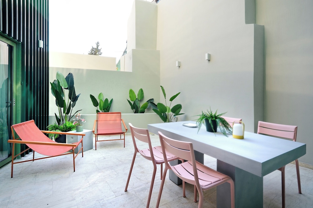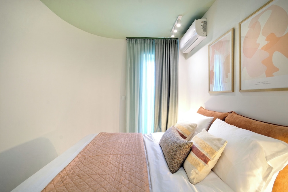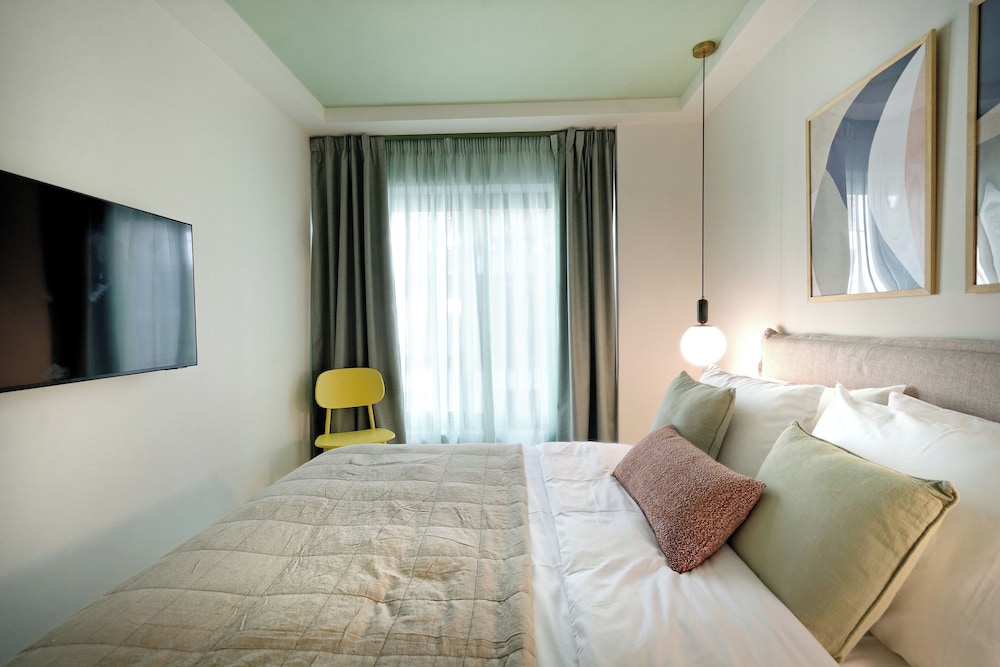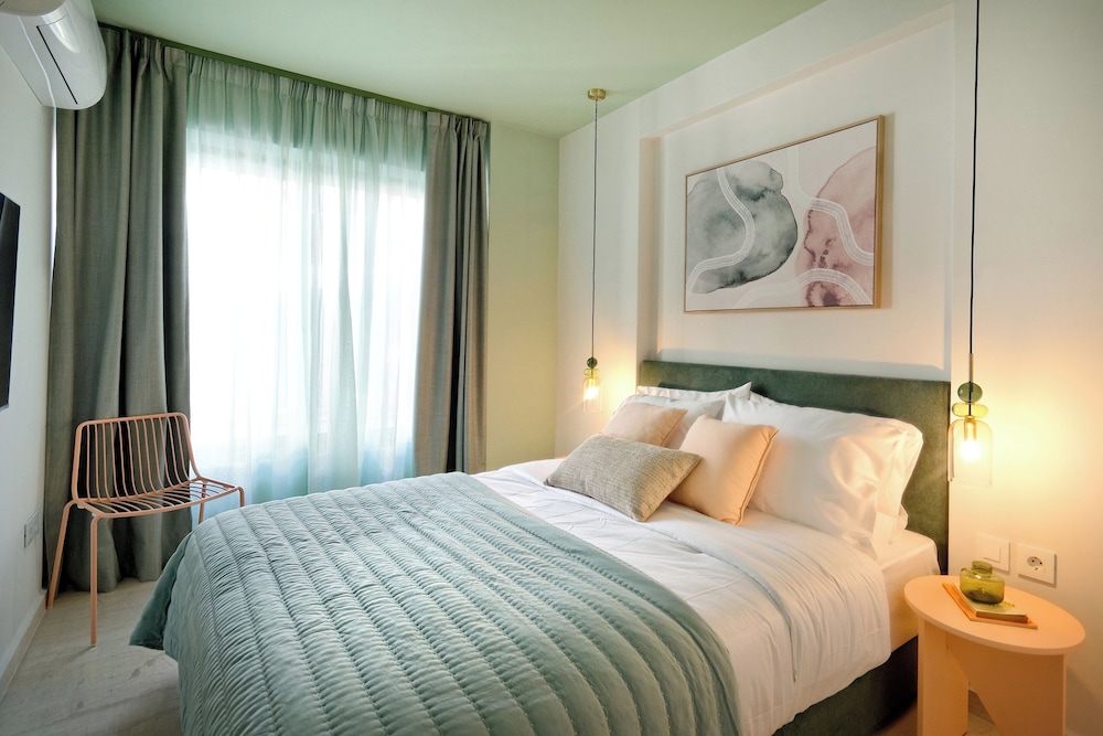 Modern, spacious apartments close to all sites including the Acropolis - 20 walk, ancient Agora - 30 minutes walk. Communication was easy & prompt the block is made up of approximately 7 flats on 5 floors which have been designed individually with no expense spared. All equipment and bedding felt new & our flat Eden had two bathrooms & an outside courtyard for our private use. There’s also a rooftop space with seating, table & 2 loungers with a view of the Acropis which is quite spectacular at night when it’s lit up. The surrounding area includes a jazz club literally 100 metres away & several supermarkets & bar/restaurants just around the corner- 300 metres away. All in all this is a great choice for a few days stay in Athens at a very reasonable price.