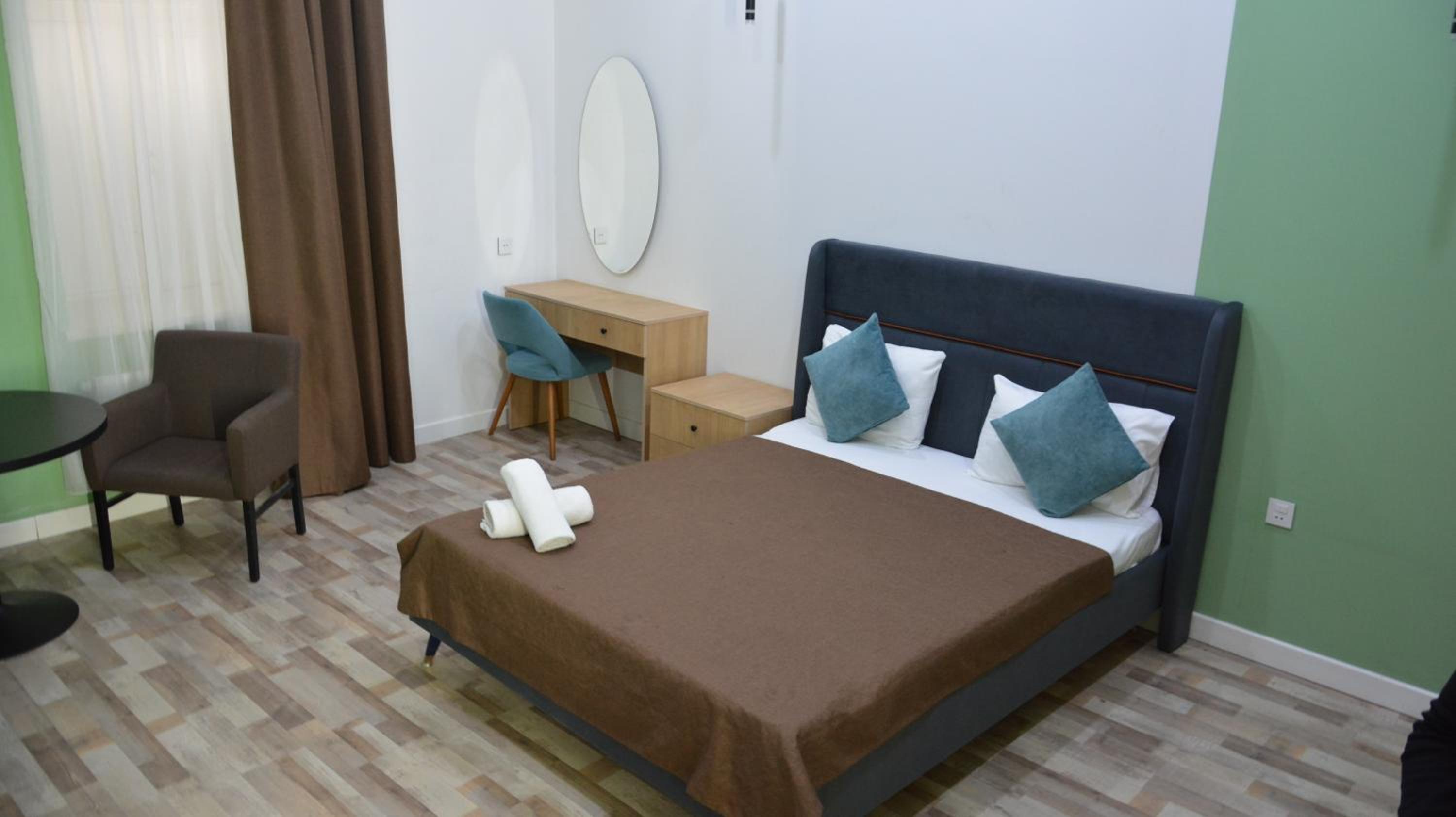 Провели незабываемых 4 дня в Баку. Отель нас привлек ценой. За 3 ночи получалось 134 маната. Включен завтрак, трансфер от и до аэропорта и бутылка вина( так заявлено на букинге) нам нужен был ранний заезд и поздний выезд. Отель добавил за эту услугу почти 80 манат. Получилось 210. На наш взгляд дороговато, при том, что отель не загружен. Нас в аэропорту встретили, рано утром привели в номер 118, сильно прокуренный, благо в нем не работал телевизор и нас поселили в 121 с балконом, светлый, просторный. Правда из 4 розеток две на работали. Зато расположен отель настолько удобно, что все достопримечательности в шаговой доступности Вино нам тоже принесли в ночь со второго на третий день. Завтраки обычные, но мы не привередливые. На ресепшен работает молодежь, хорошие ребята. Нас все устроило.