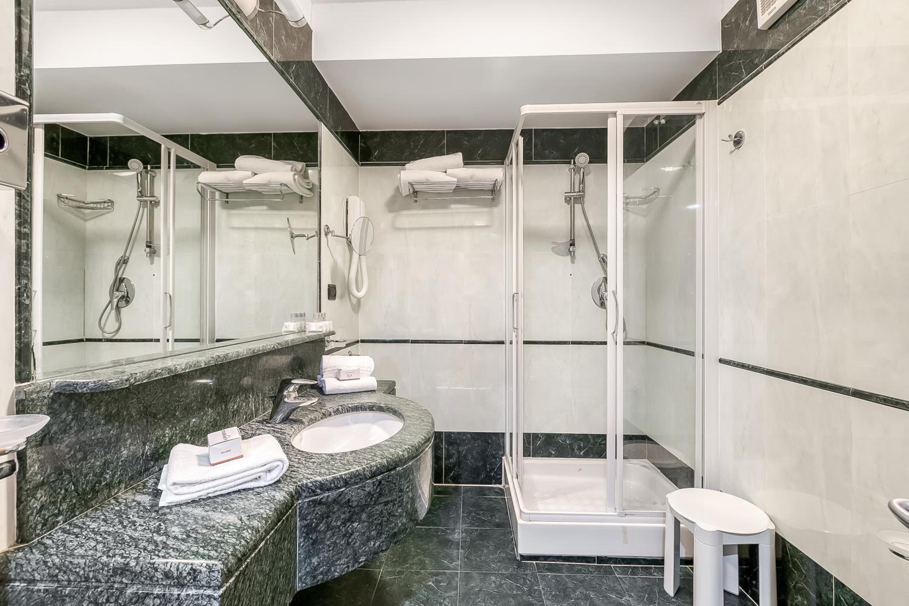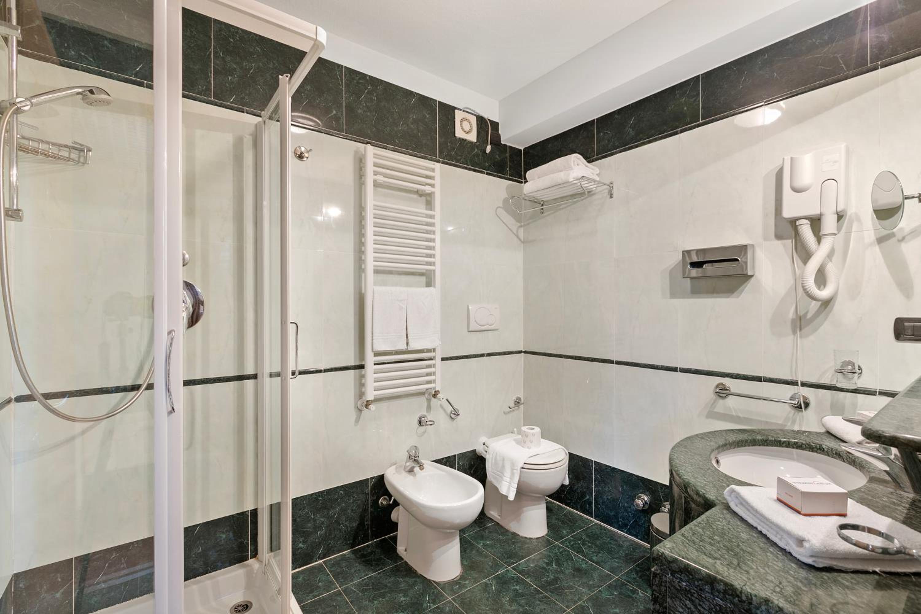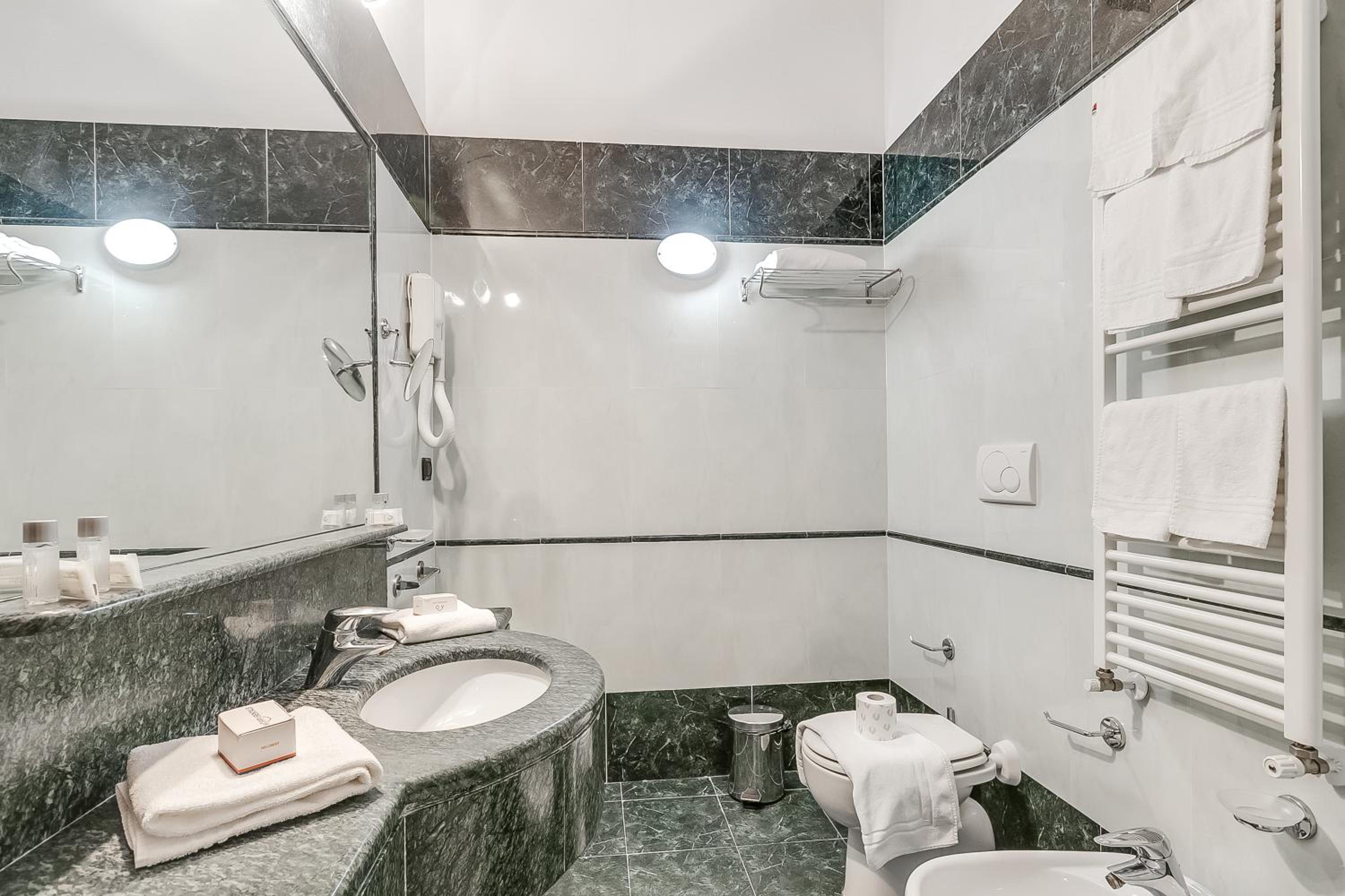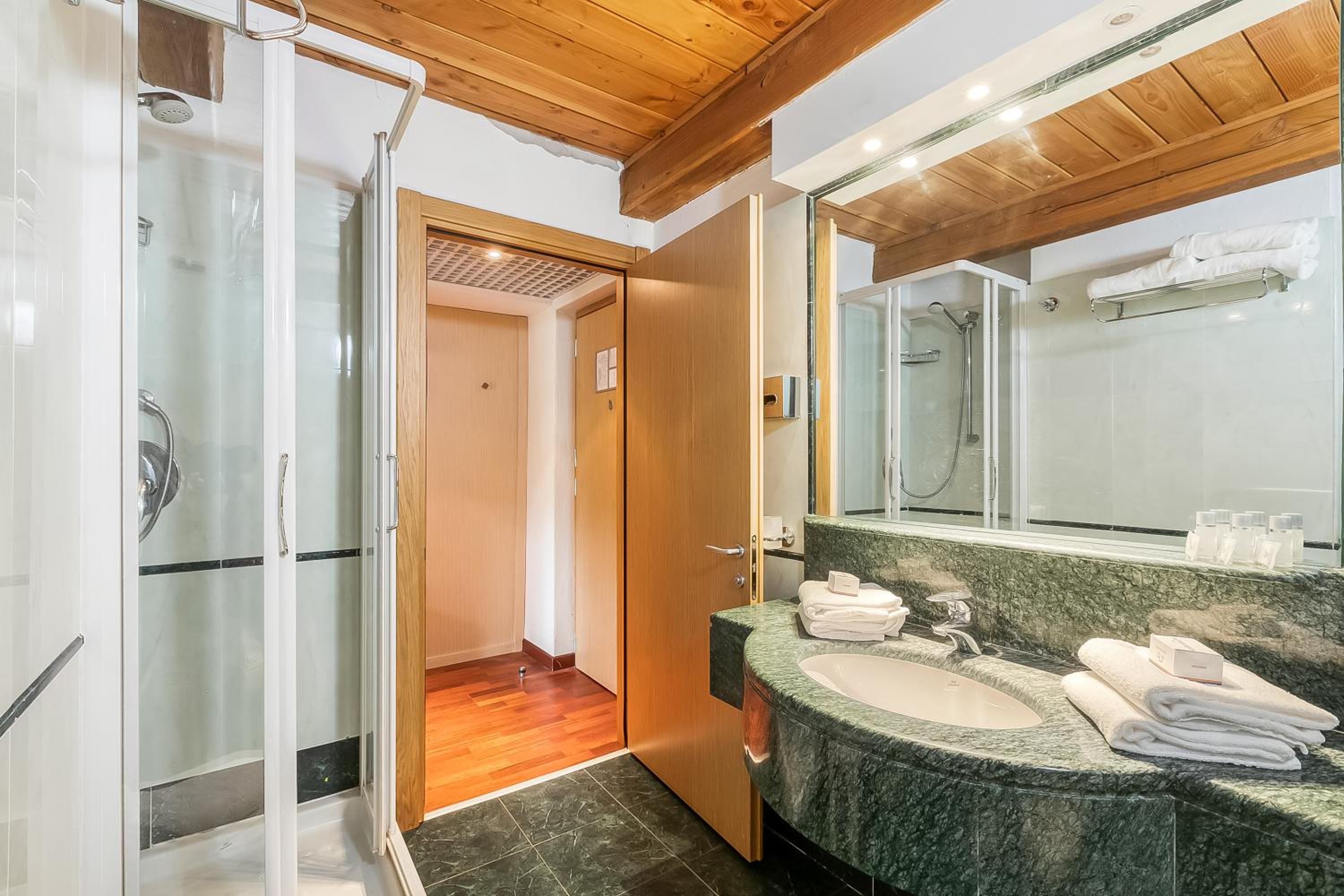 Porta di accesso alla stanza non funzionante, quindi restava sempre aperta, porta del bagno uguale, stanza cupa con poca luminosità e luci non funzionanti, doccia che si allagava già dal primo giorno senza buttarci dentro nulla, scarico del bagno poco funzionate.