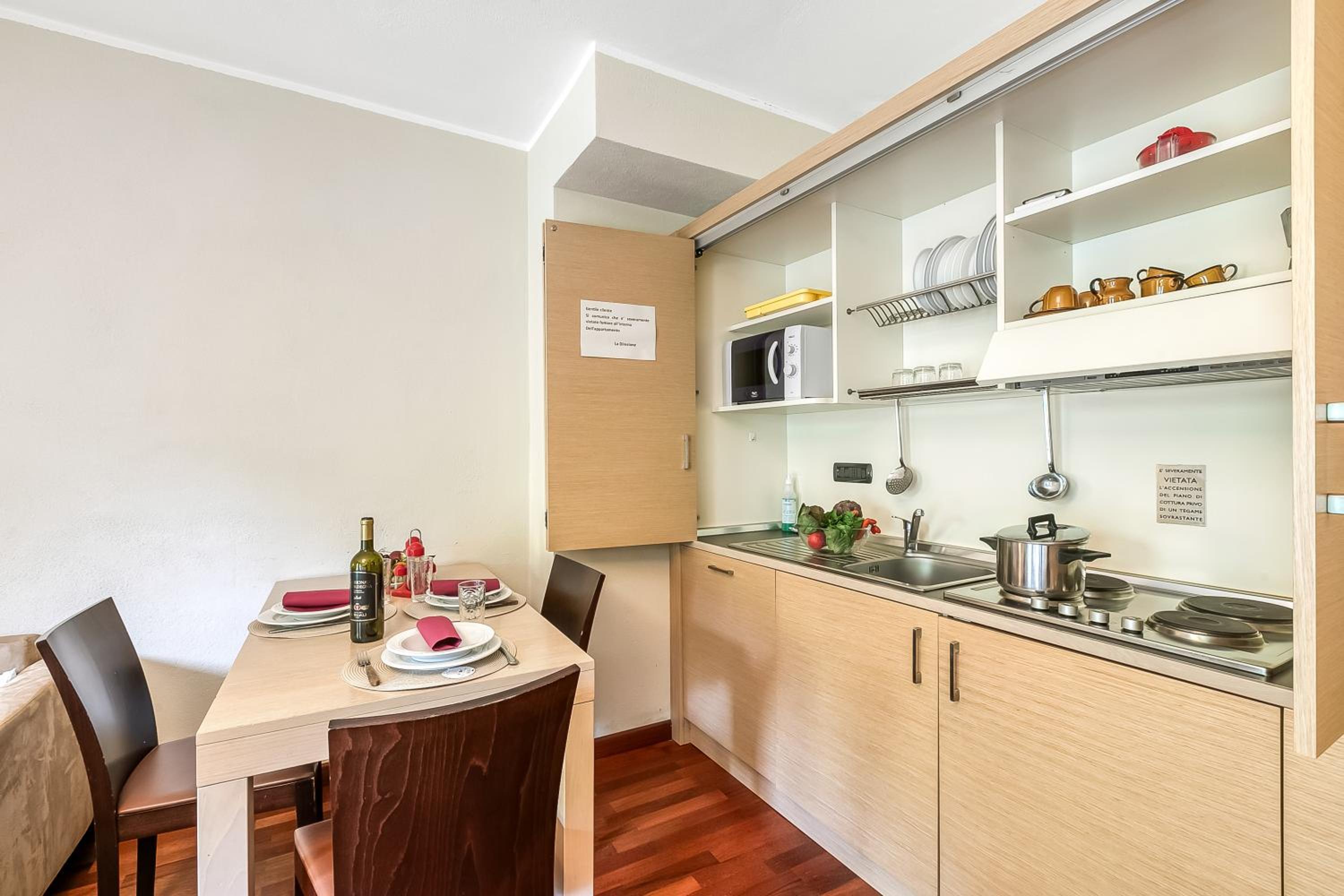 La strada che porta al residence è molto rovinata. Il divano letto matrimoniale è scomodo (si sprofonda), mentre il letto sul soppalco è impossibile da usare se si soffre di claustrofobia (anche blanda). La dotazione di stoviglie non è per tutte le esigenze: ad esempio sono a disposizione tazze molto piccole, e una teiera grande come una tazza, quindi per colazione dovevo fare due giri. Difficile usare internet per pianificarsi la vacanza perché la ricezione di alcuni operatori telefonici (Vodafone) è zero, e il wifi non è stabile, anche per il fatto che sono attive le reti a 5 e 2.4 Ghz sullo stesso SSID (la prima con scarsissima ricezione e nonostante ciò i dispositivi tendono a privilegiarla, venendo regolarmente disconnessi; consiglio al residence di separare le due reti o disabilitare quella a 5 Ghz).