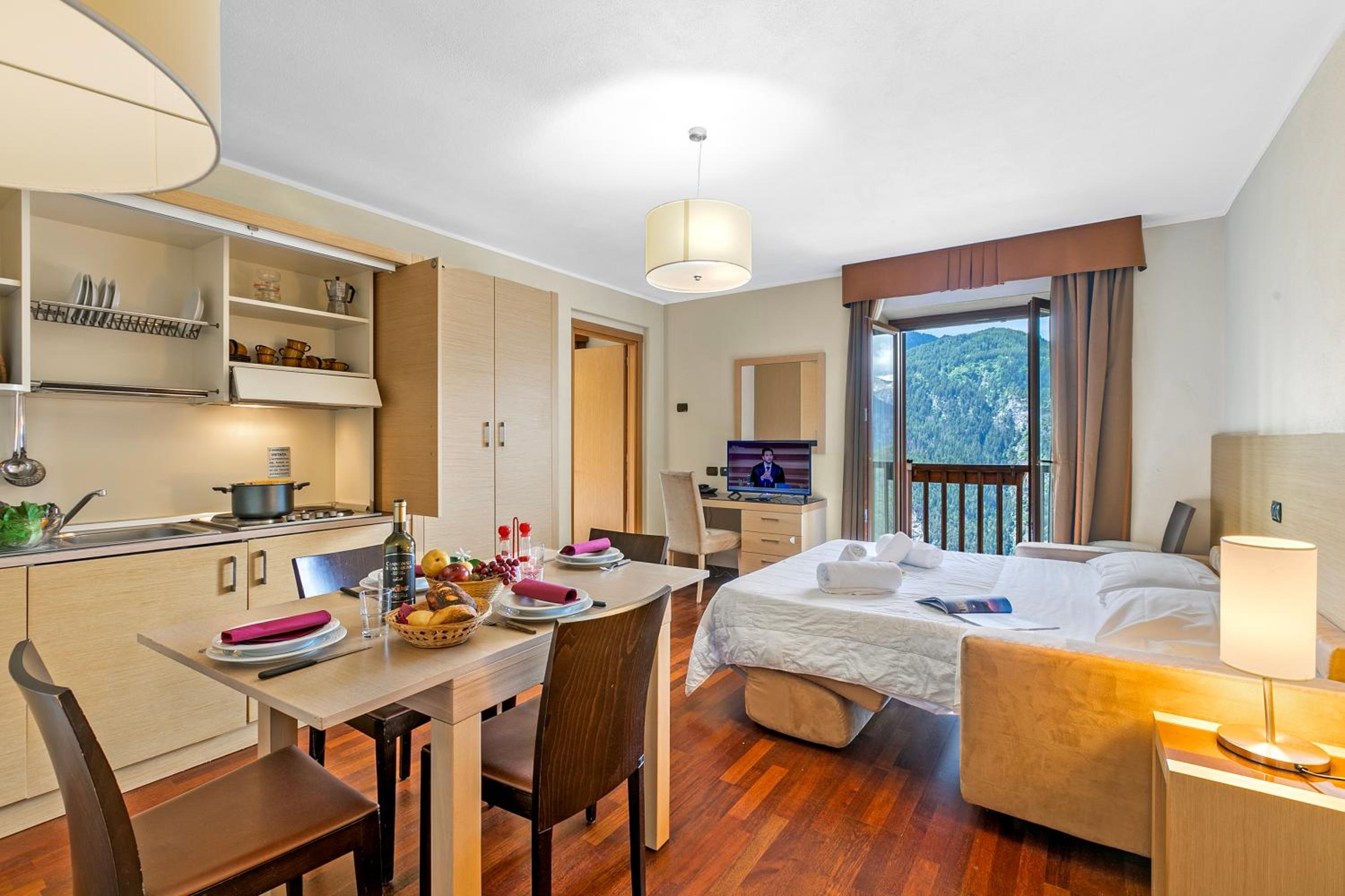 Modern Amenities: Aparthotel Cianfuran Residence offers free WiFi, free private parking, and facilities for disabled guests. Each unit is well-equipped with a kitchen, flat-screen TV, and a private bathroom. Some units also feature terraces or balconies with stunning mountain views.