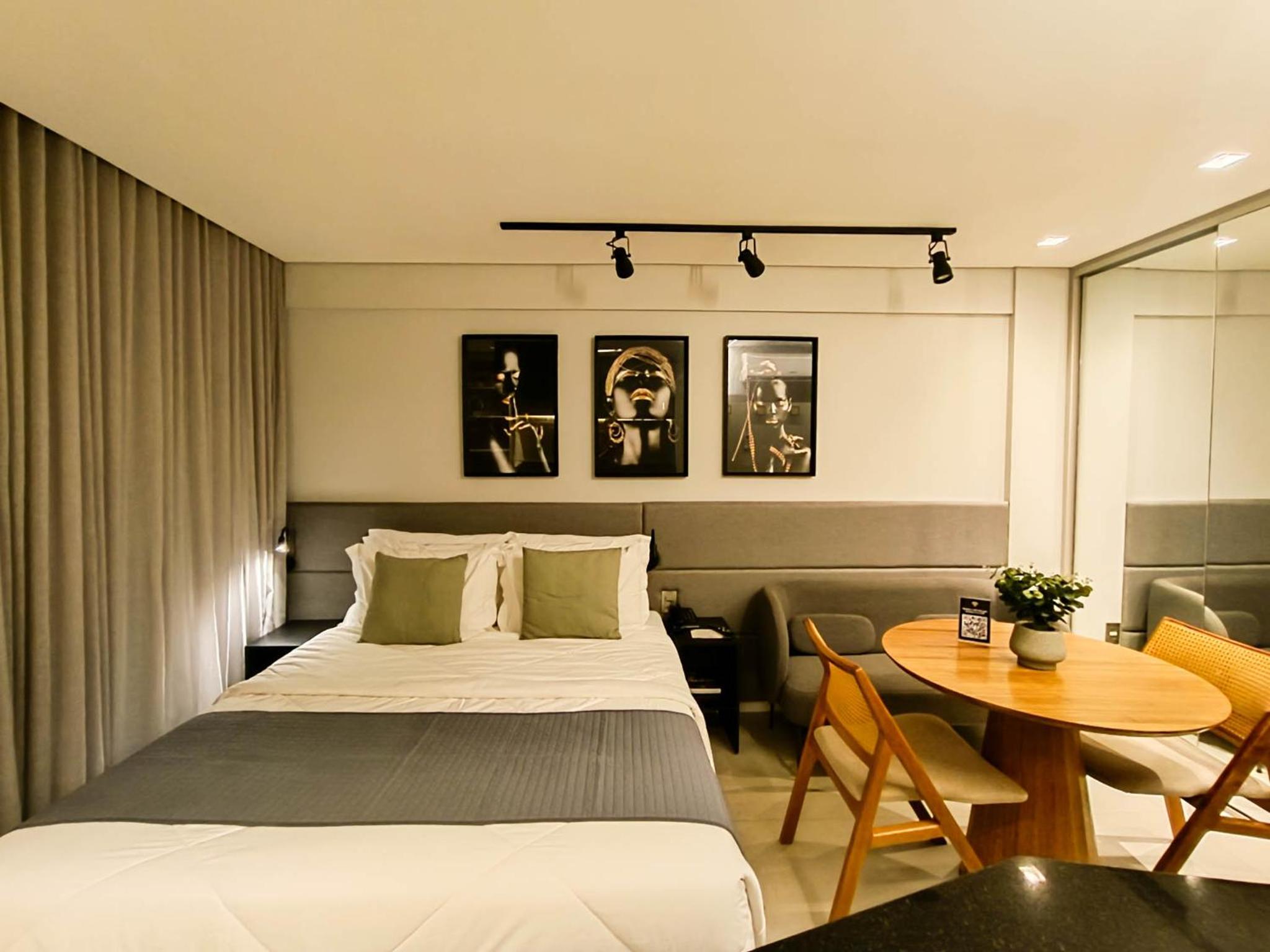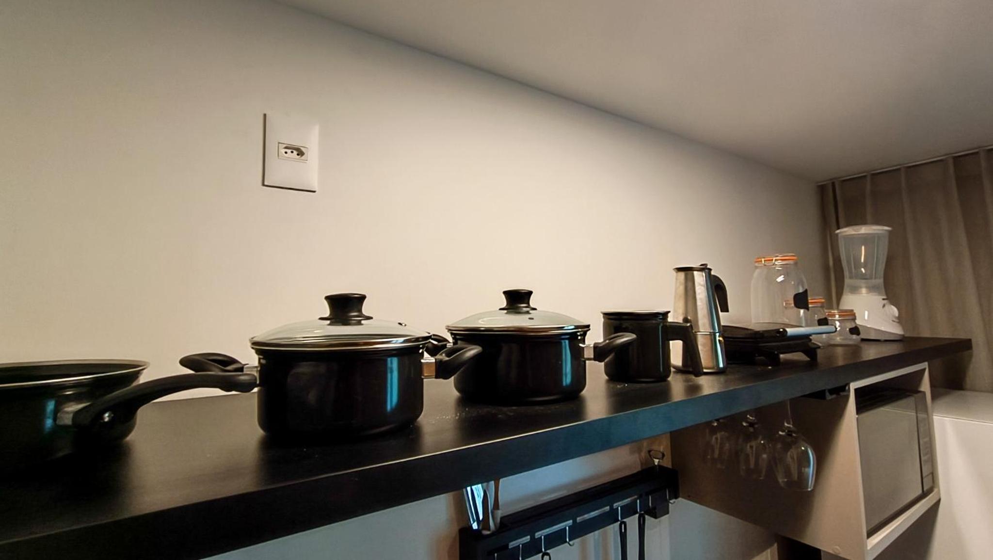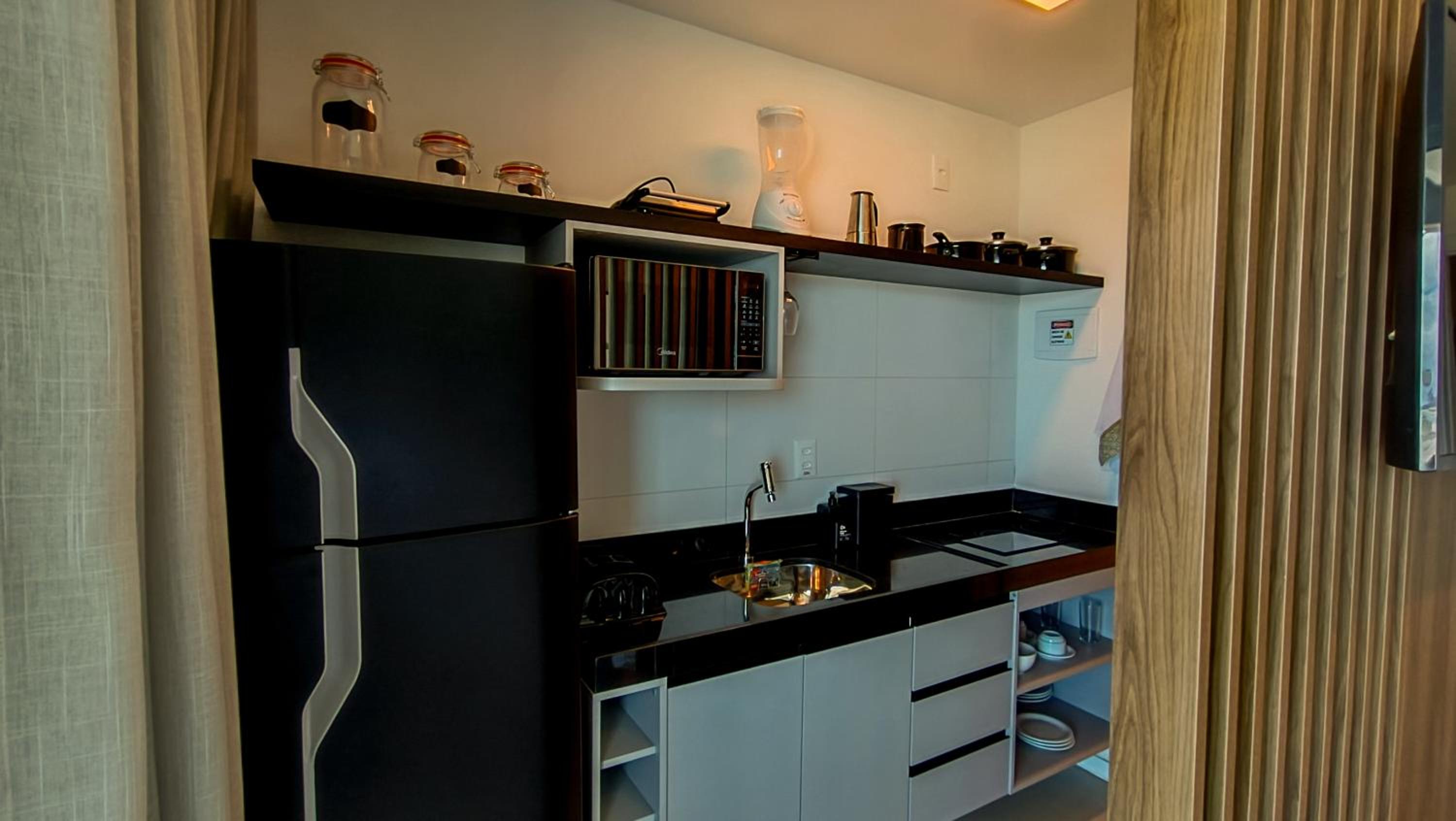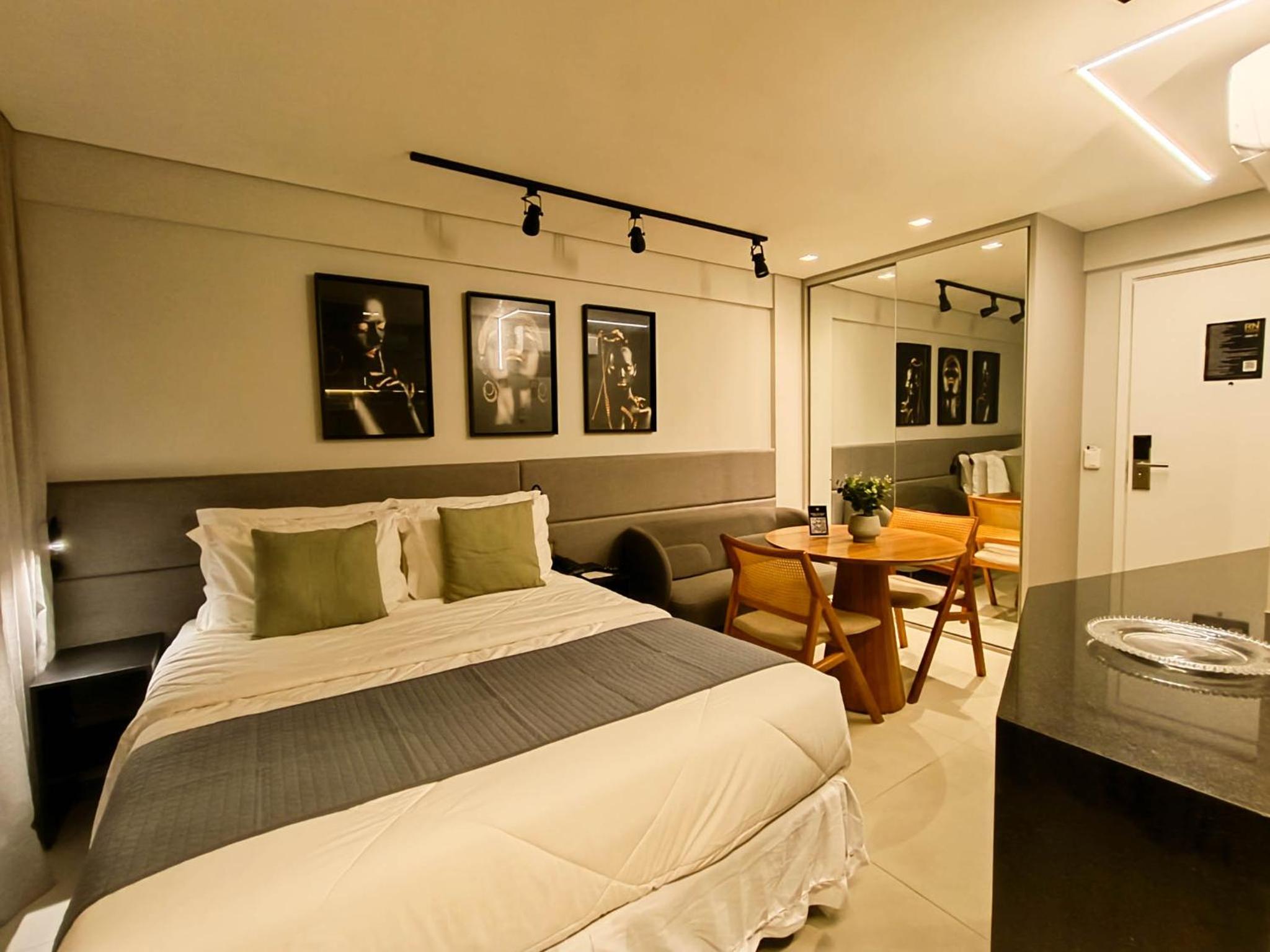 Apesar de pequeno (Studio) o hotel é novo e os quartos são equipados com todas as comodidades geladeira, Cooktop...