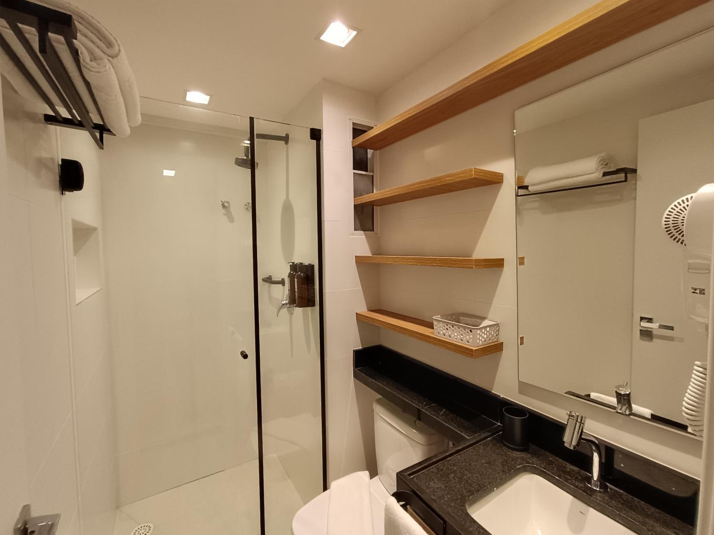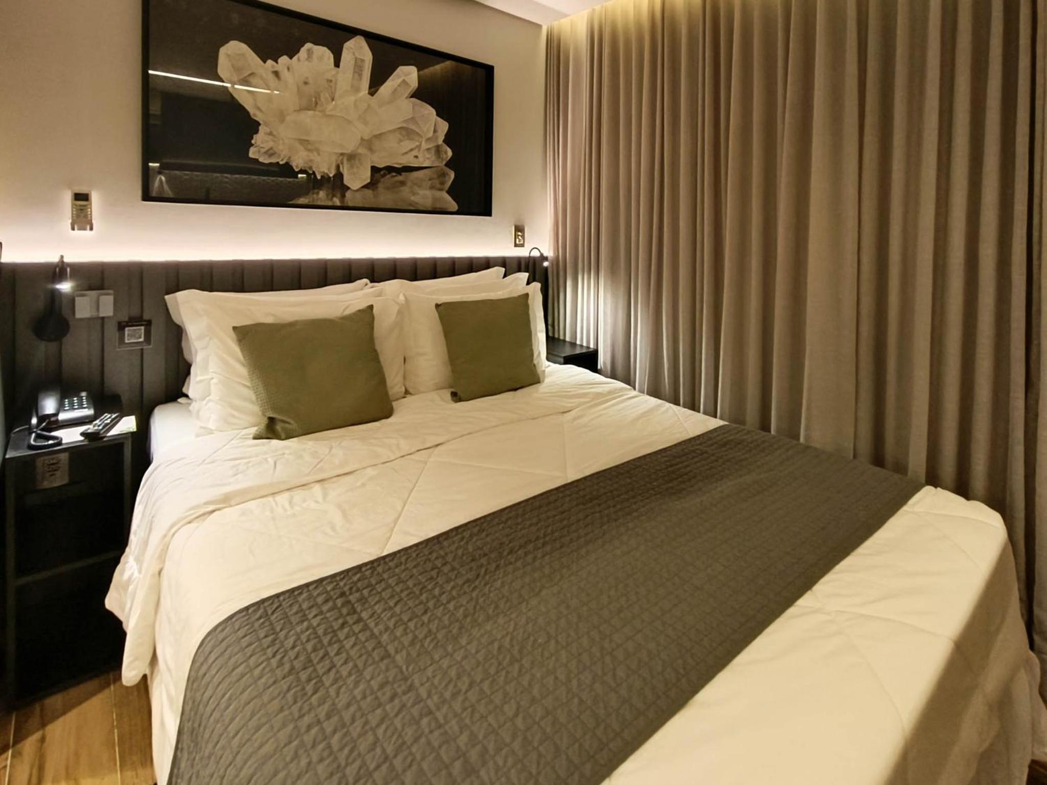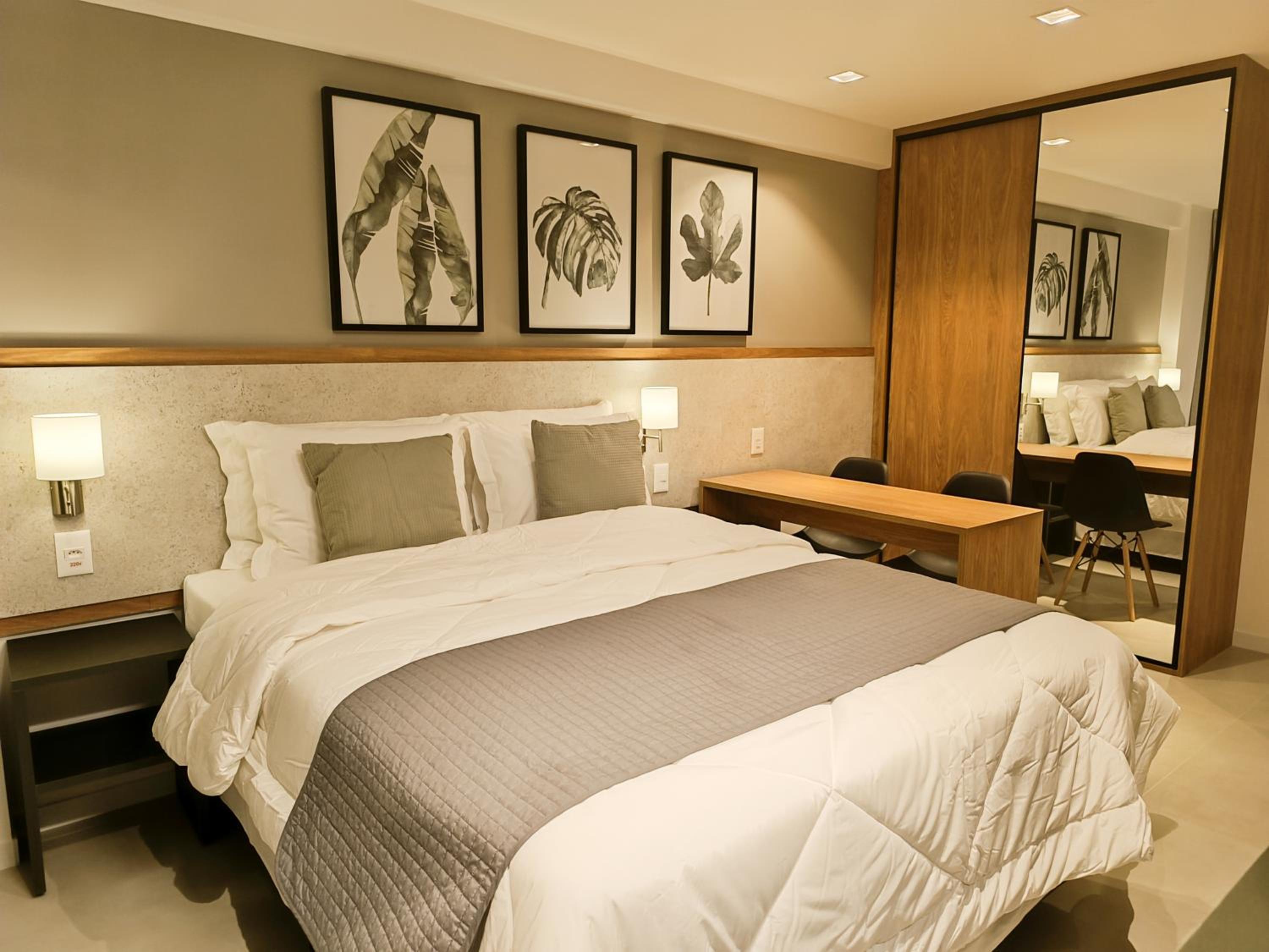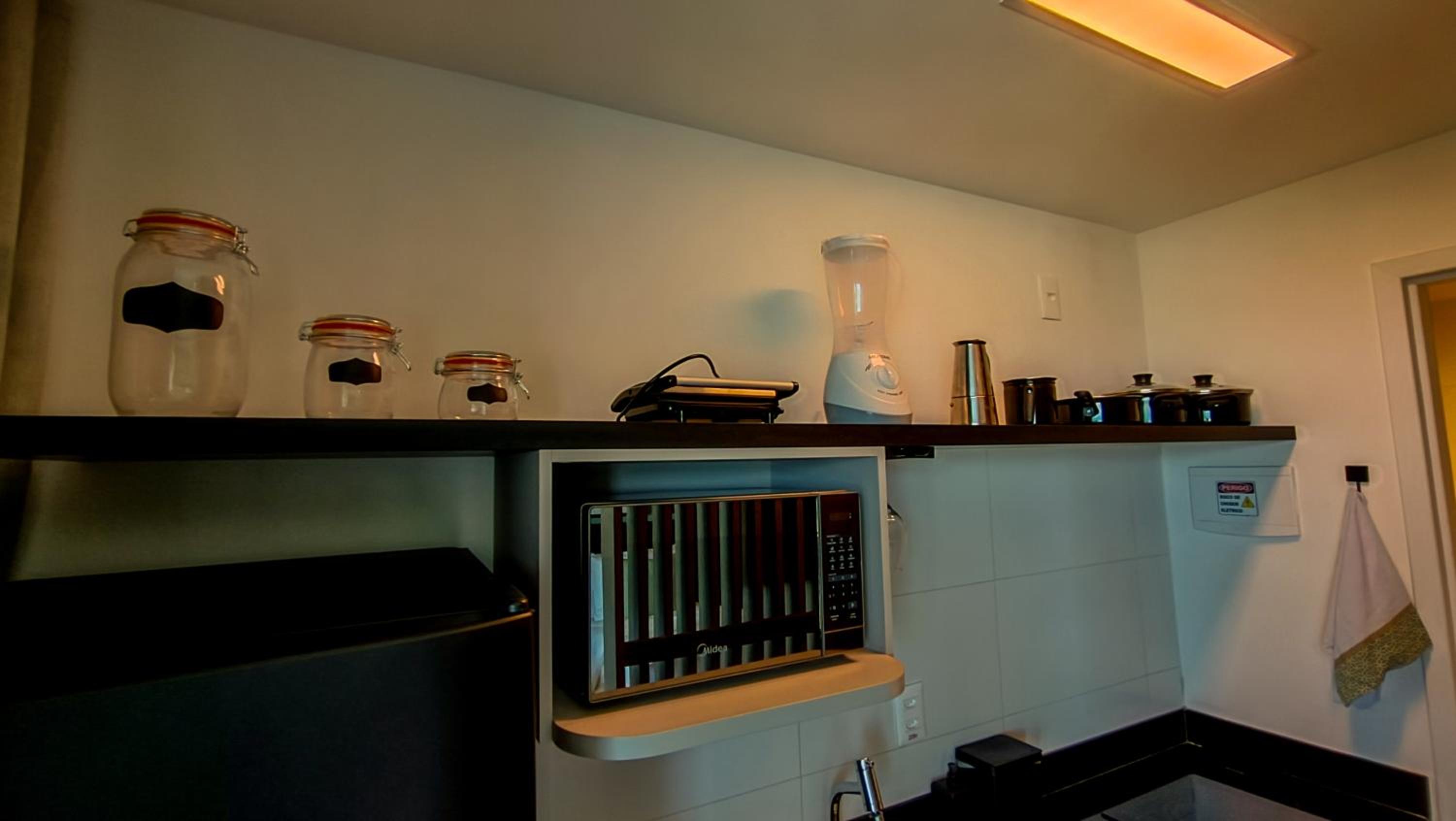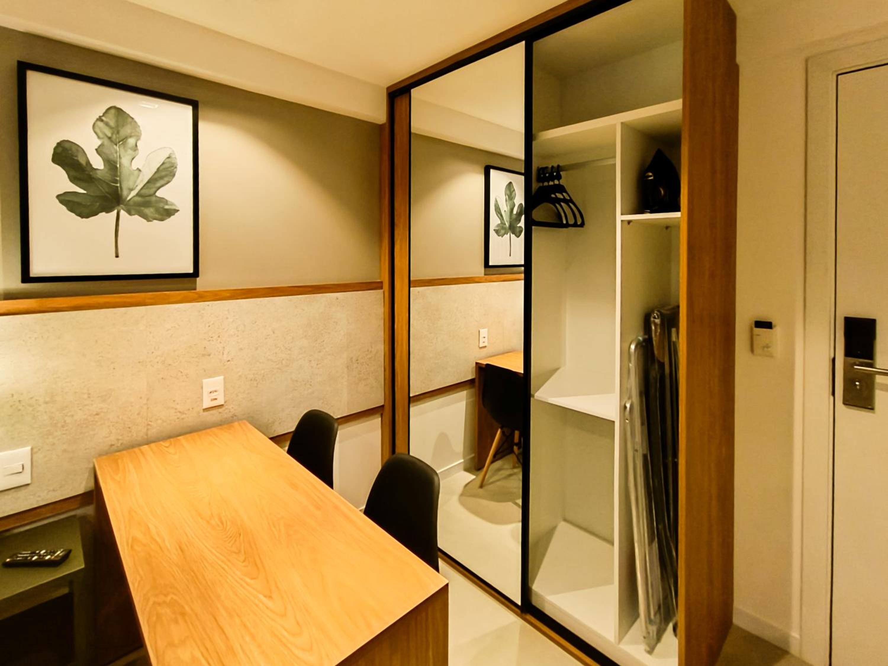 Apesar de pequeno (Studio) o hotel é novo e os quartos são equipados com todas as comodidades geladeira, Cooktop...