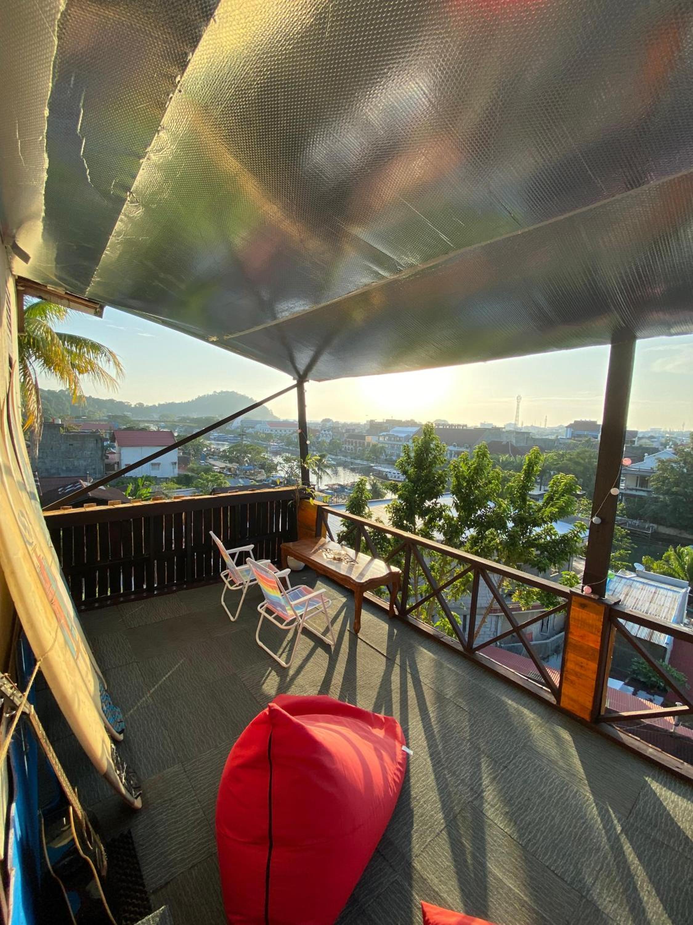 The staff is great and the common areas are fantastic. The views over Padang from the balconies can’t be beat. We also appreciated the free coffee in the morning. They also serve food - the pumpkin curry was amazing! The WiFi is super strong which was a first during our travels in Indonesia. Overall, we’d stay here again.