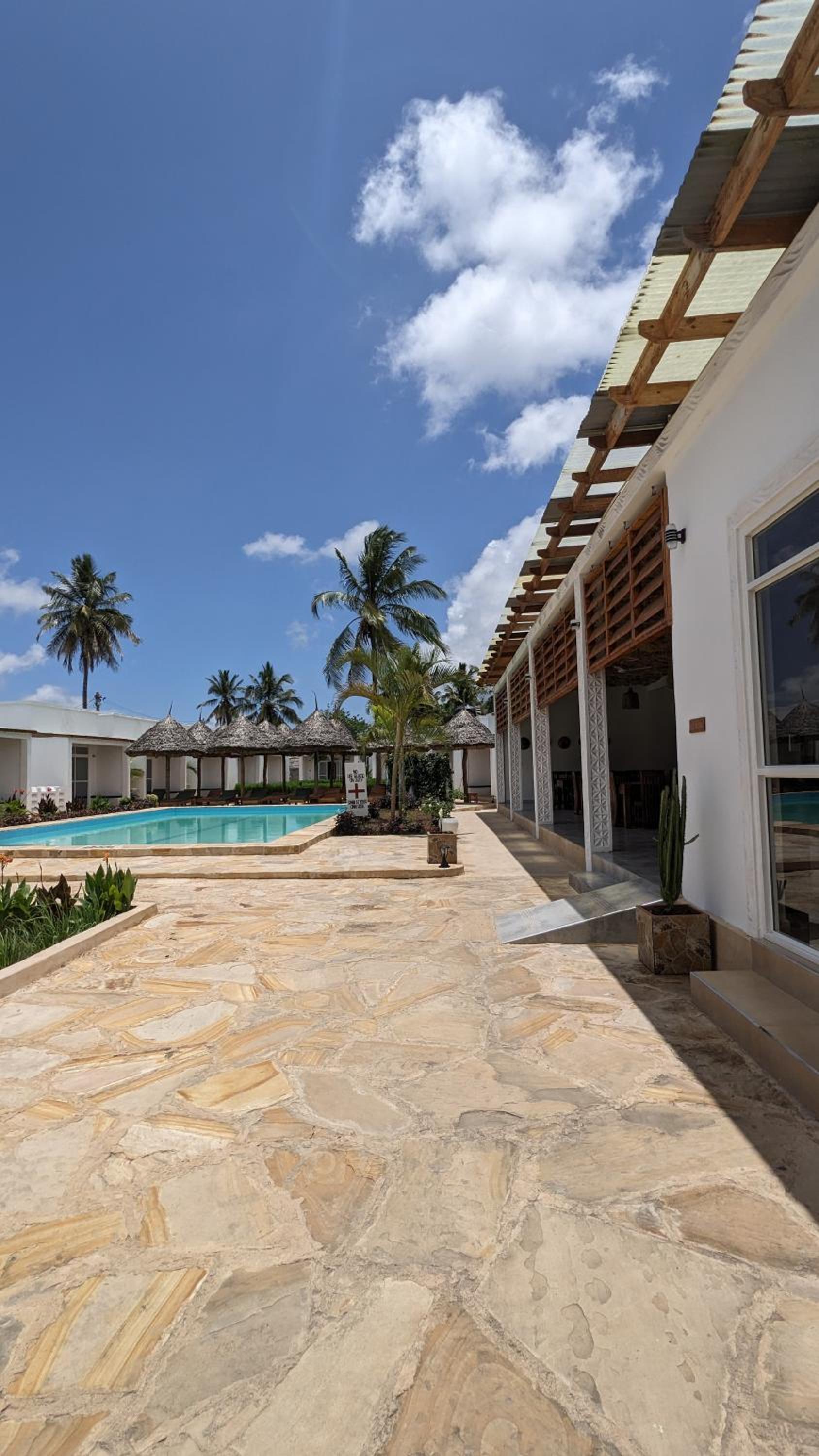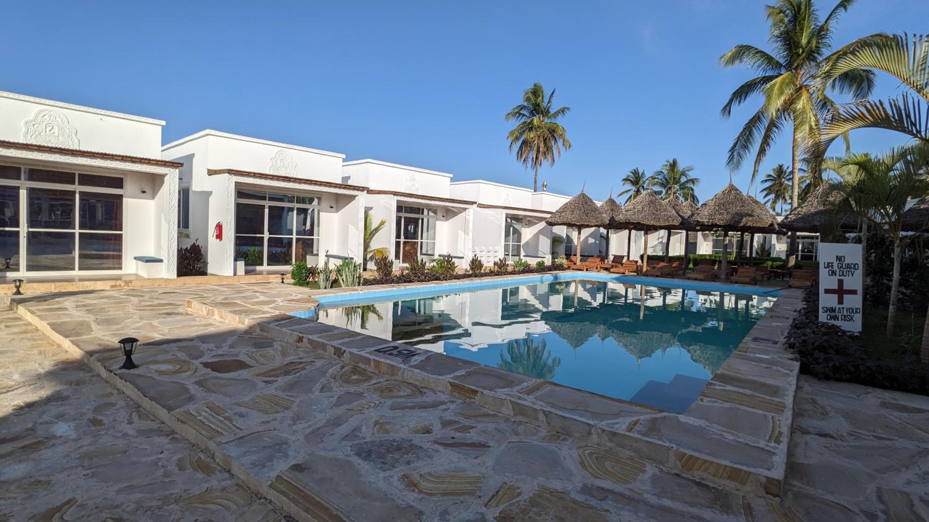 We stayed for one night after flight. 10 minutes walk from the airport. Big comfortable room with AC (which is really nice thing in Mafia). The hotel is really quiet and pool area is cozy and clean.