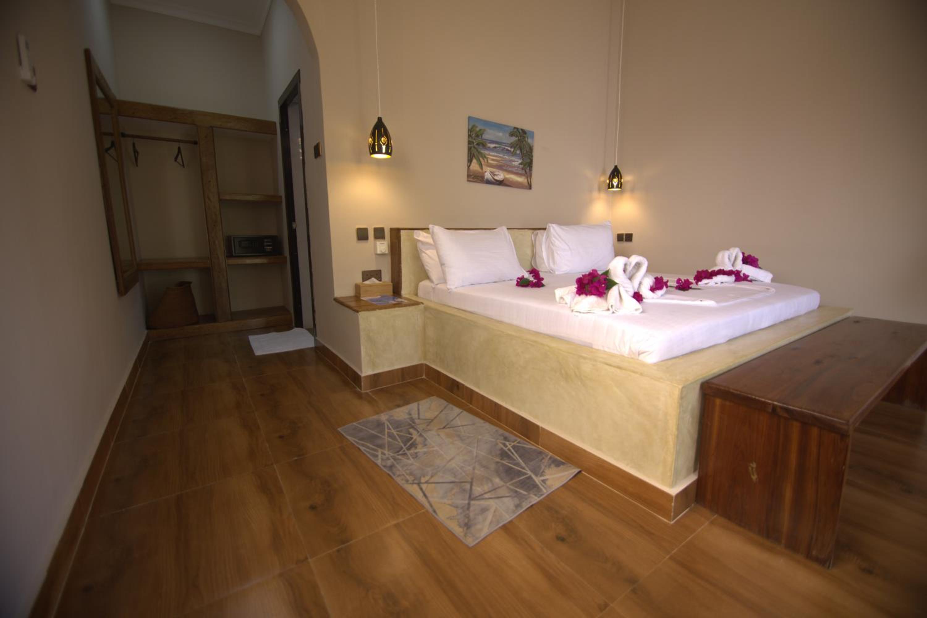 The hotel is located conveniently 1km away from the airport. It has a wonderful restaurant, great pool area and spacious airconditioned rooms. The bed was very comfortable and huge! The staff is exceptionally friendly, and Hamidu made sure our stay was everything we hoped for. If we come back to Mafia Island, we will definitely stay at this place again.