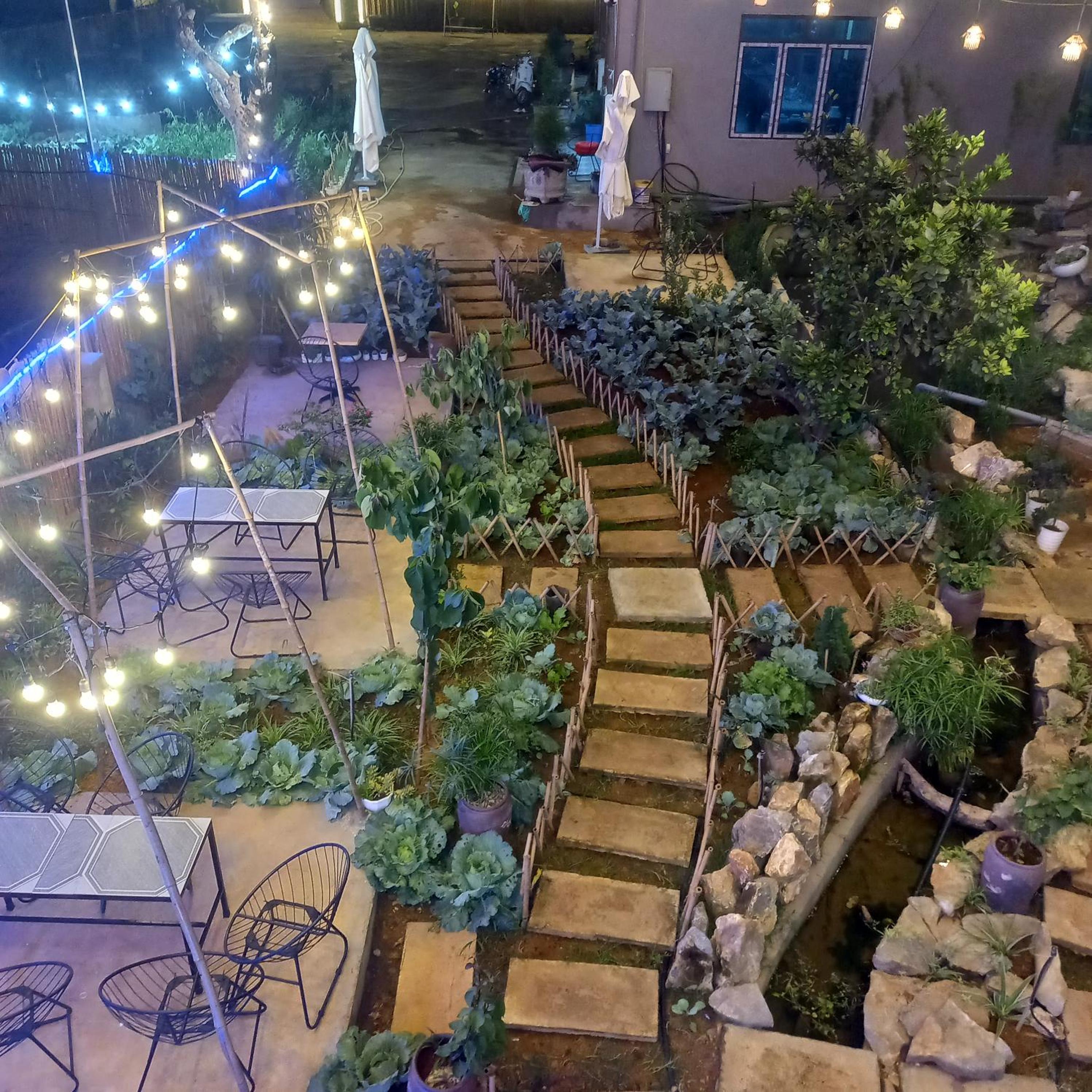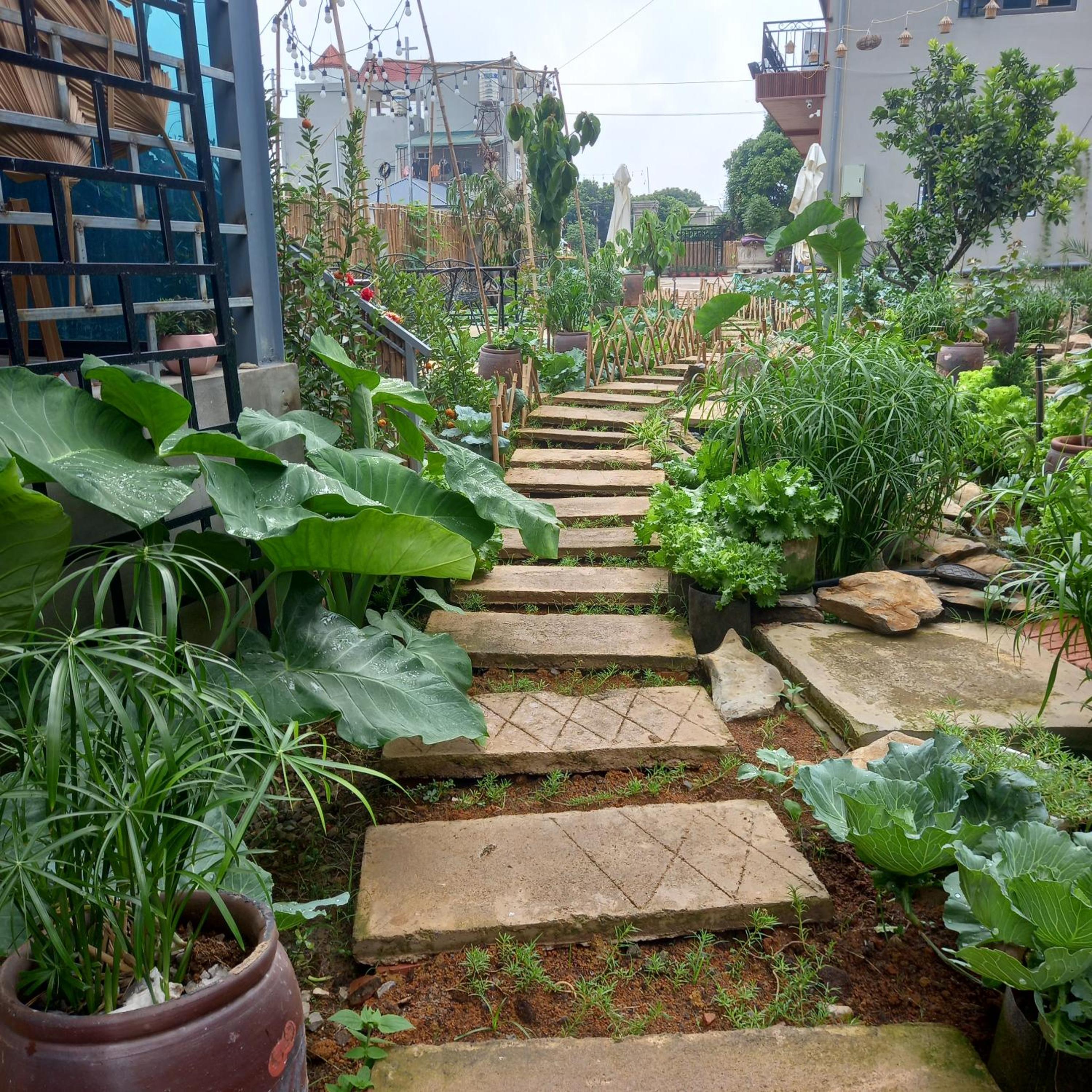 Escape to a serene garden oasis at mộc châu homestay, where the beauty of nature surrounds you.