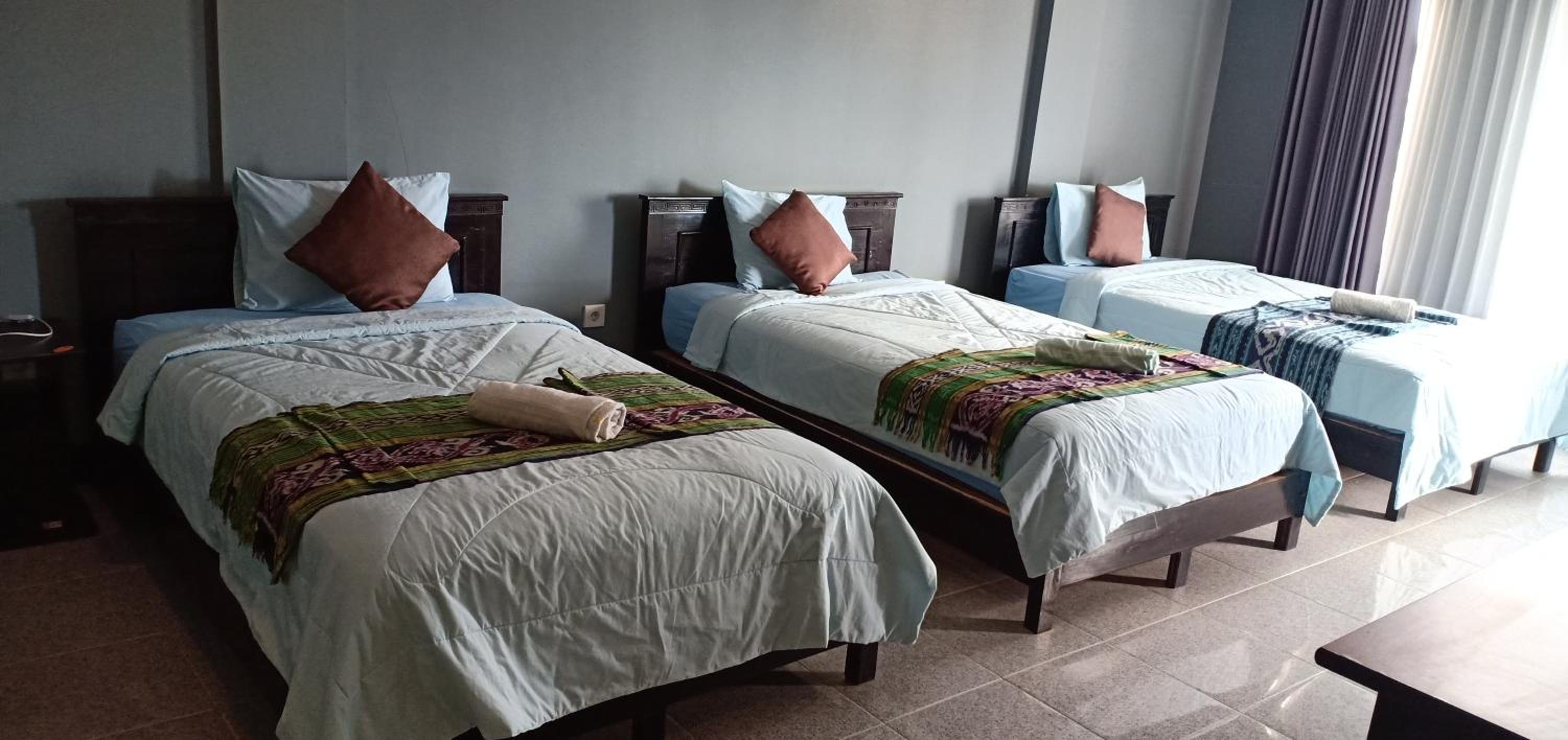 The rooms are spacious, with air conditioning and a comfortable bed. They have hot water, which is not very common in Lombok.