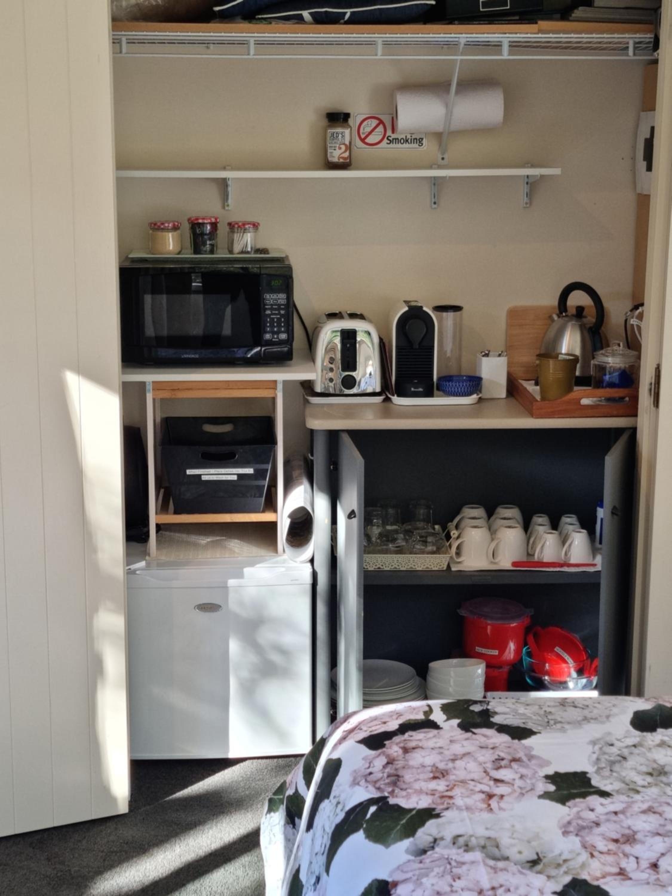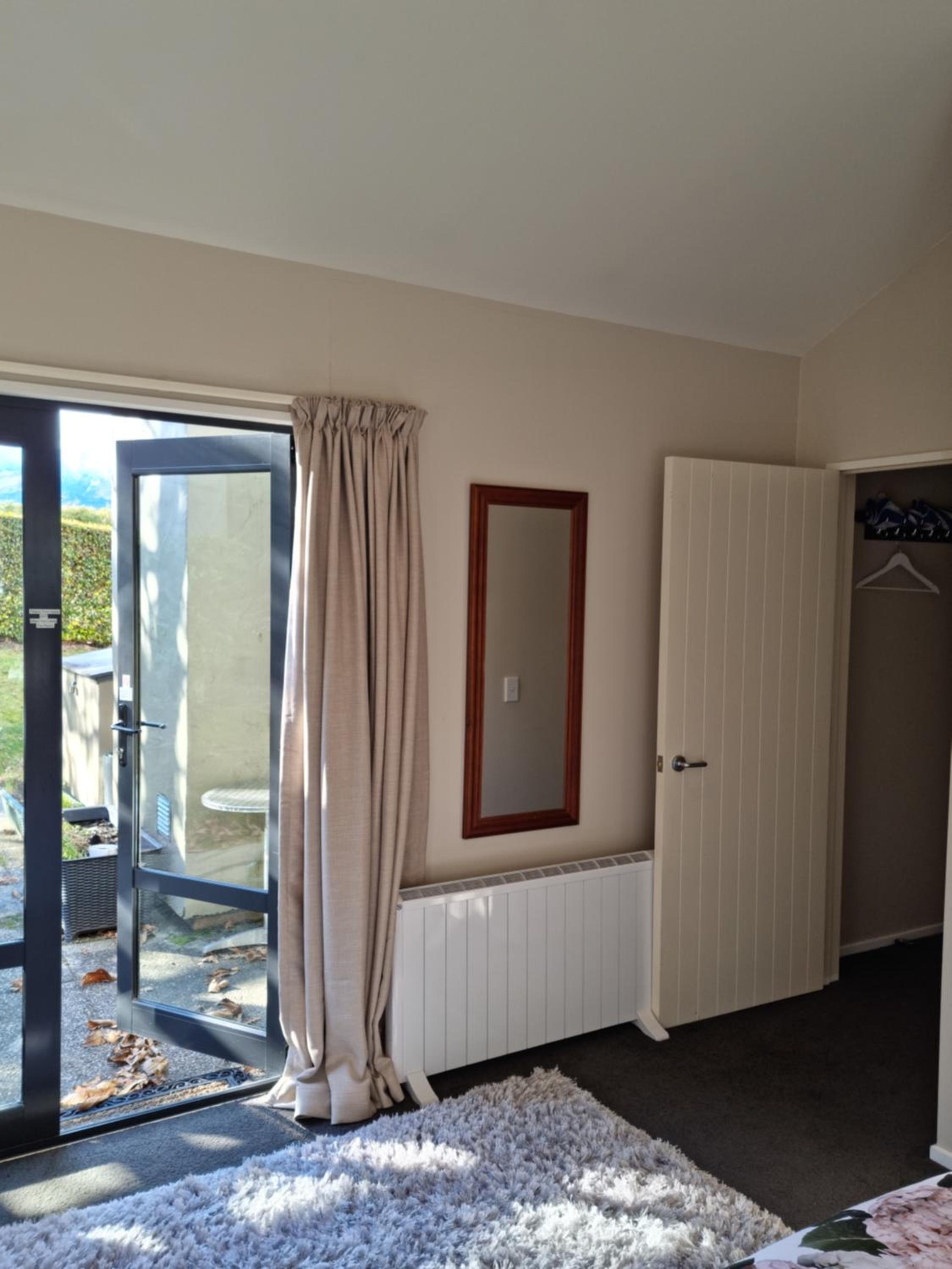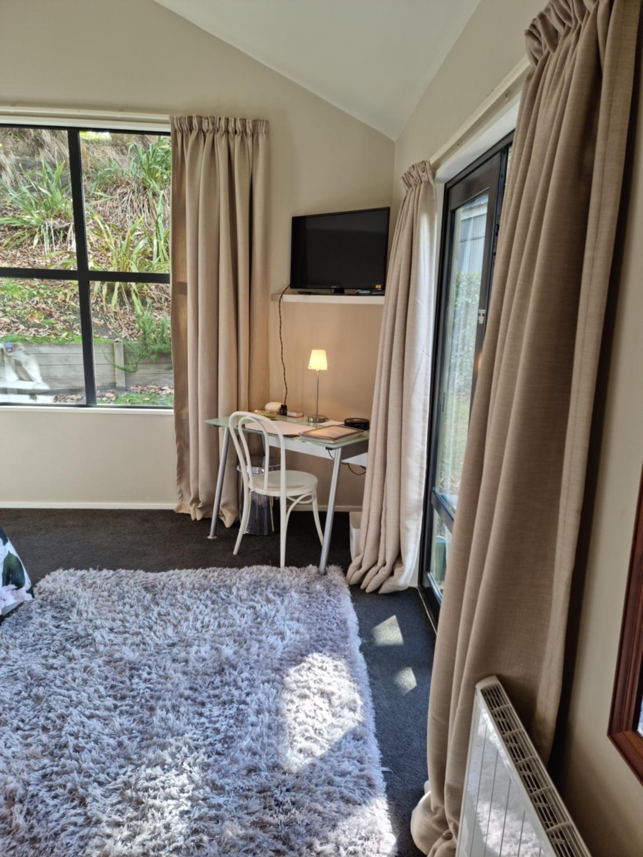 The place was lovely. A back unit on Warren’s property, tucked away on a hill not far from the Queenstown Airport and the Frankton Bus Interchange. Warren is a friendly fellow and takes pride in his work. The room is lovely with more pillows than you will know what to do with. There is a kitchenette hidden in the closet, and the BBQ worked well too.