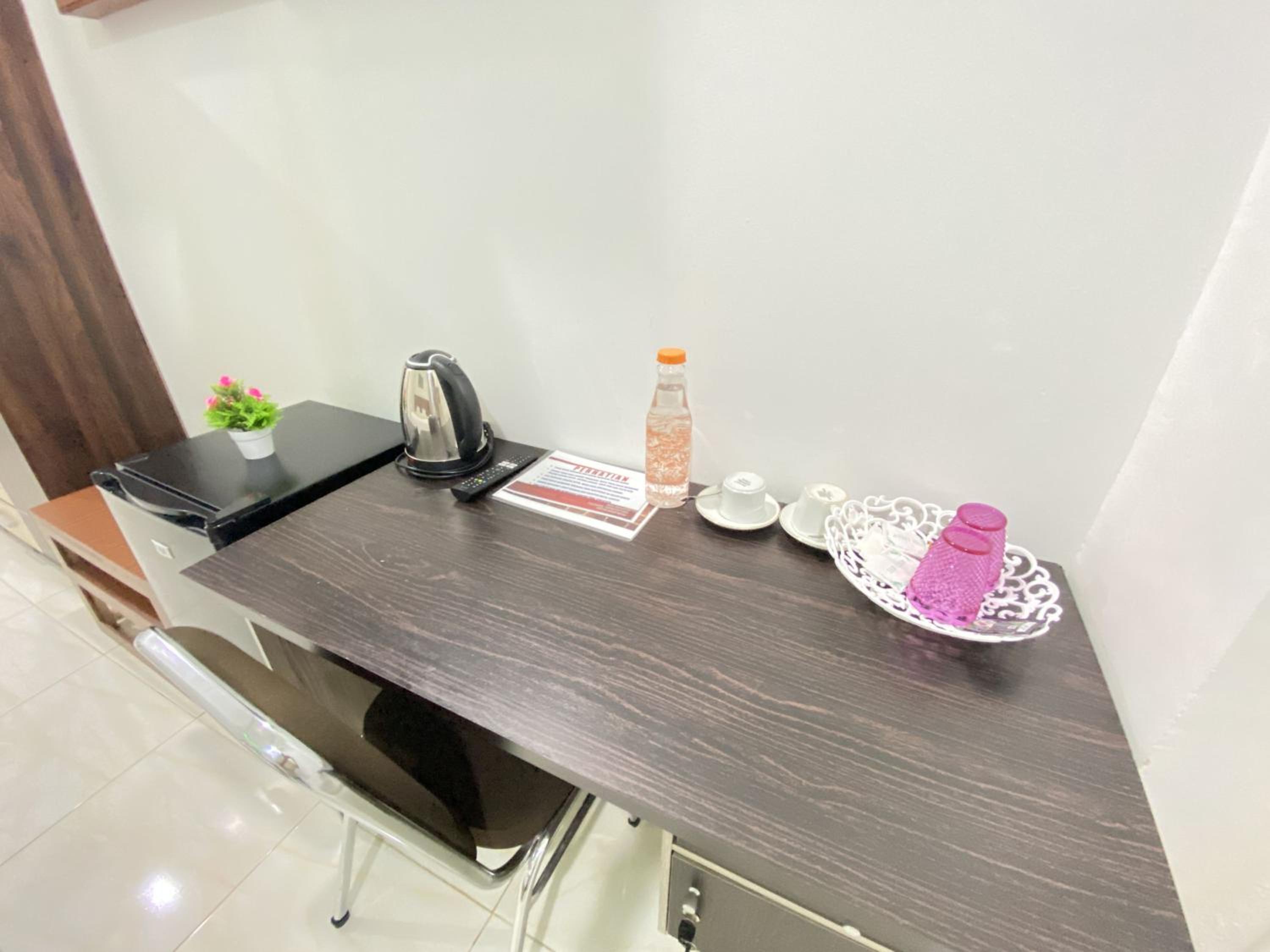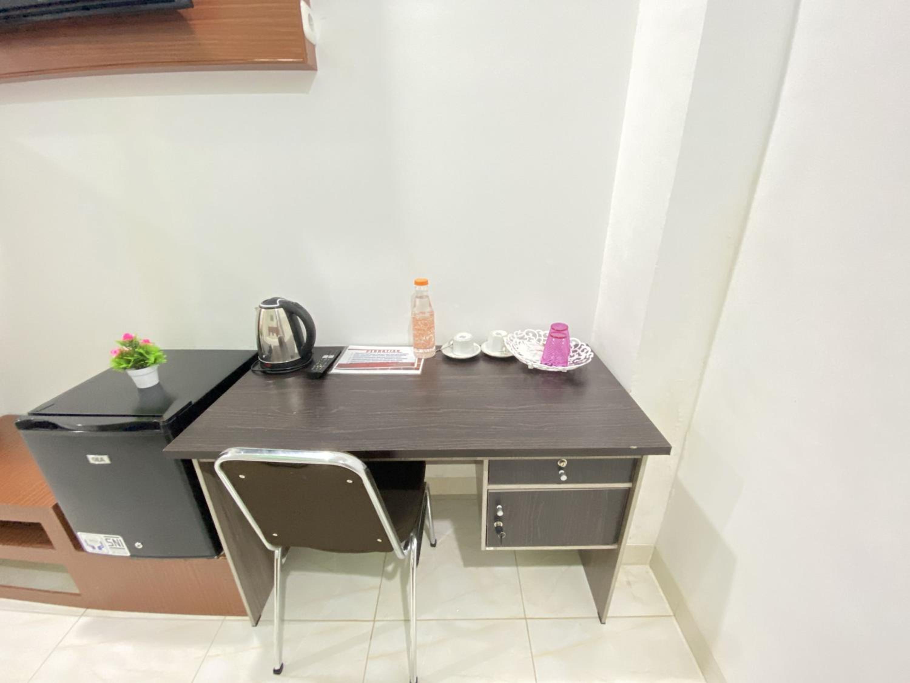 In-Room Features: Each room is equipped with a desk and a TV for your entertainment.