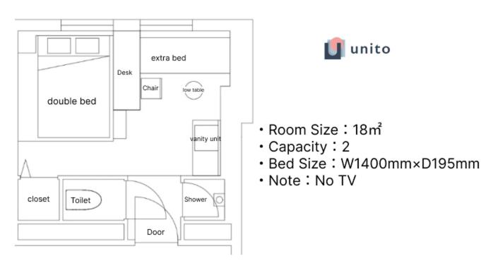 Sometimes the check in can be slow; I wish they would send the Unito login or check-in link via Booking.com or Airbnb. The rooms are standard Japanese business hotel size.
