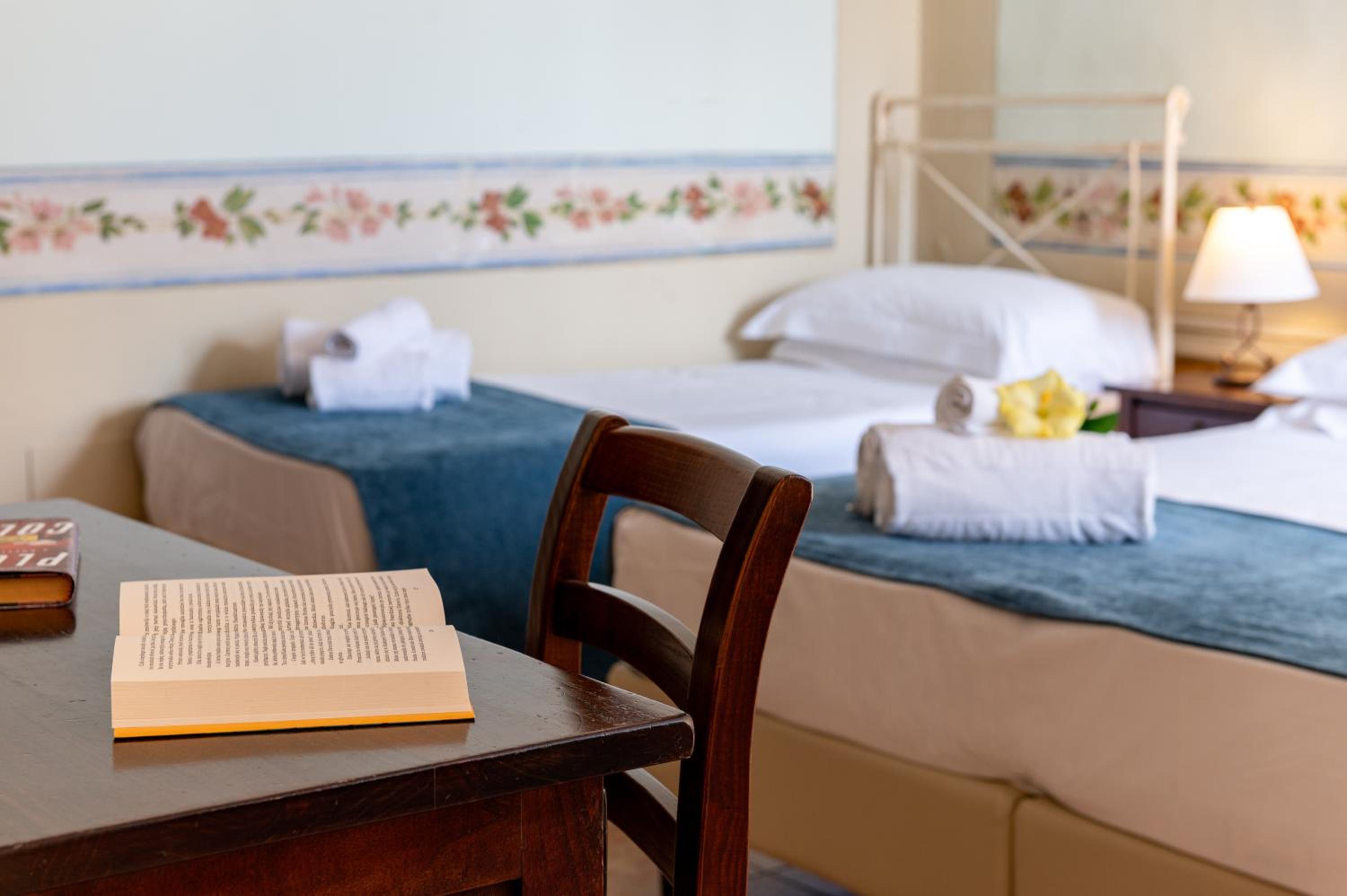Piękny hotel położny na uboczu z basenem, praktycznie było pusto a byliśmy na początku września. Obsługa bardzo sympatyczna, uśmiechnięta no cudowna! Codziennie były sprzątane pokoje, wymiana pościel, jest to bardzo na plus. Słodkie śniadanie bardzo dobre.