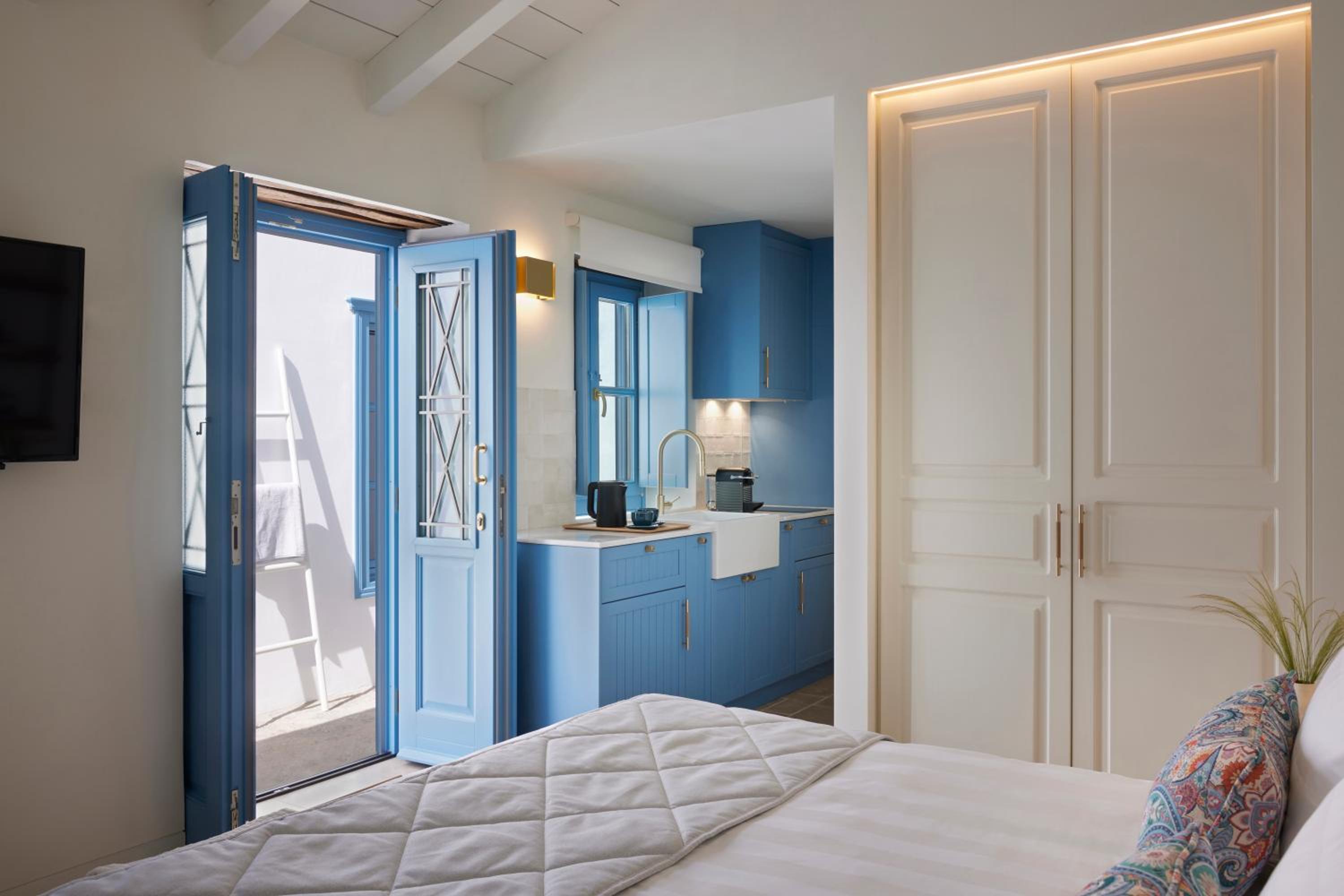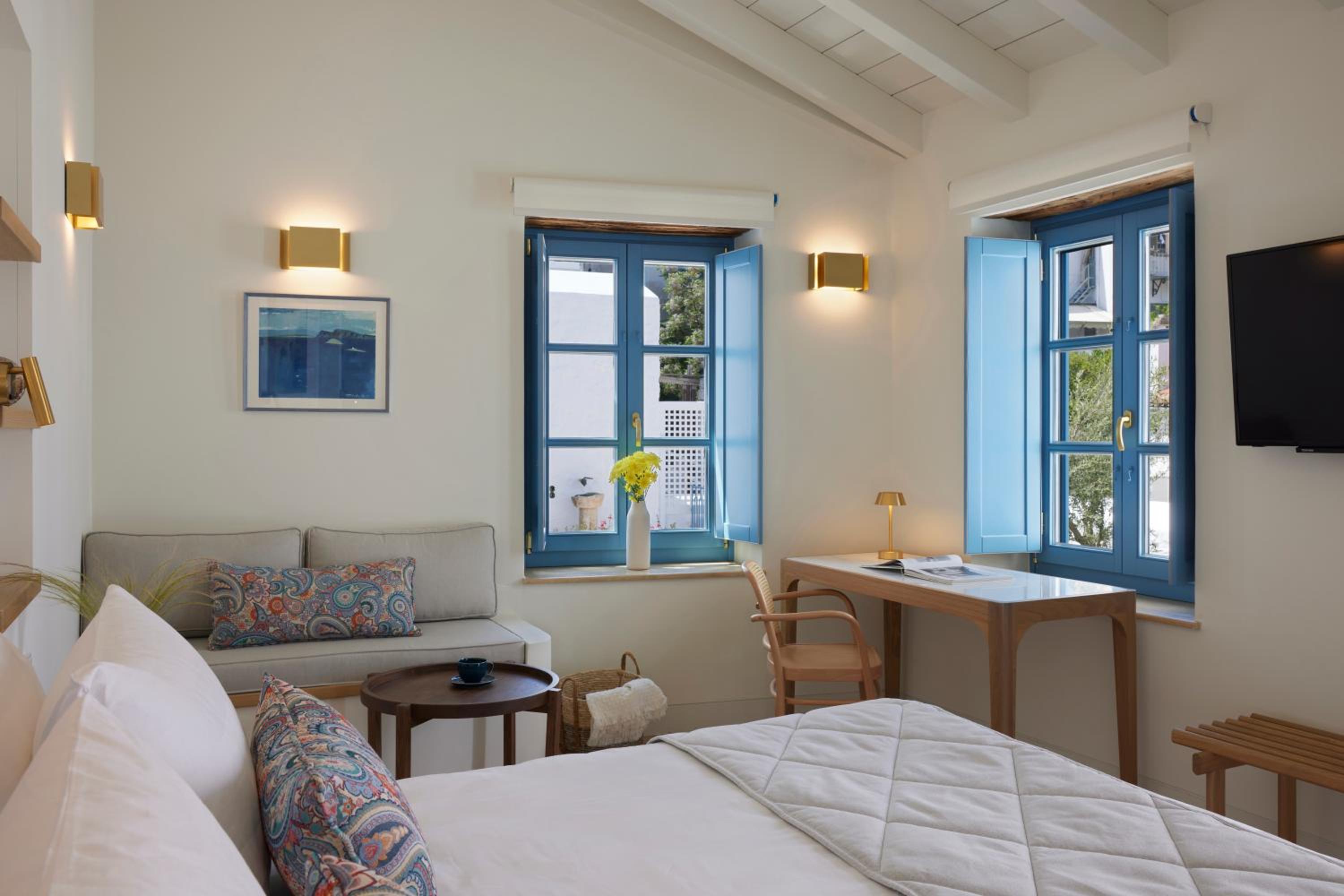 Beautiful, modern, and luxurious space–a short walk from the main port. The staff, especially Pascheline and Angelika, are outstanding–some of the most helpful hotel staff we've ever encountered. They helped us with dinner reservations and booking activities for our stay on the island, and went out of their way to make us feel at home.
