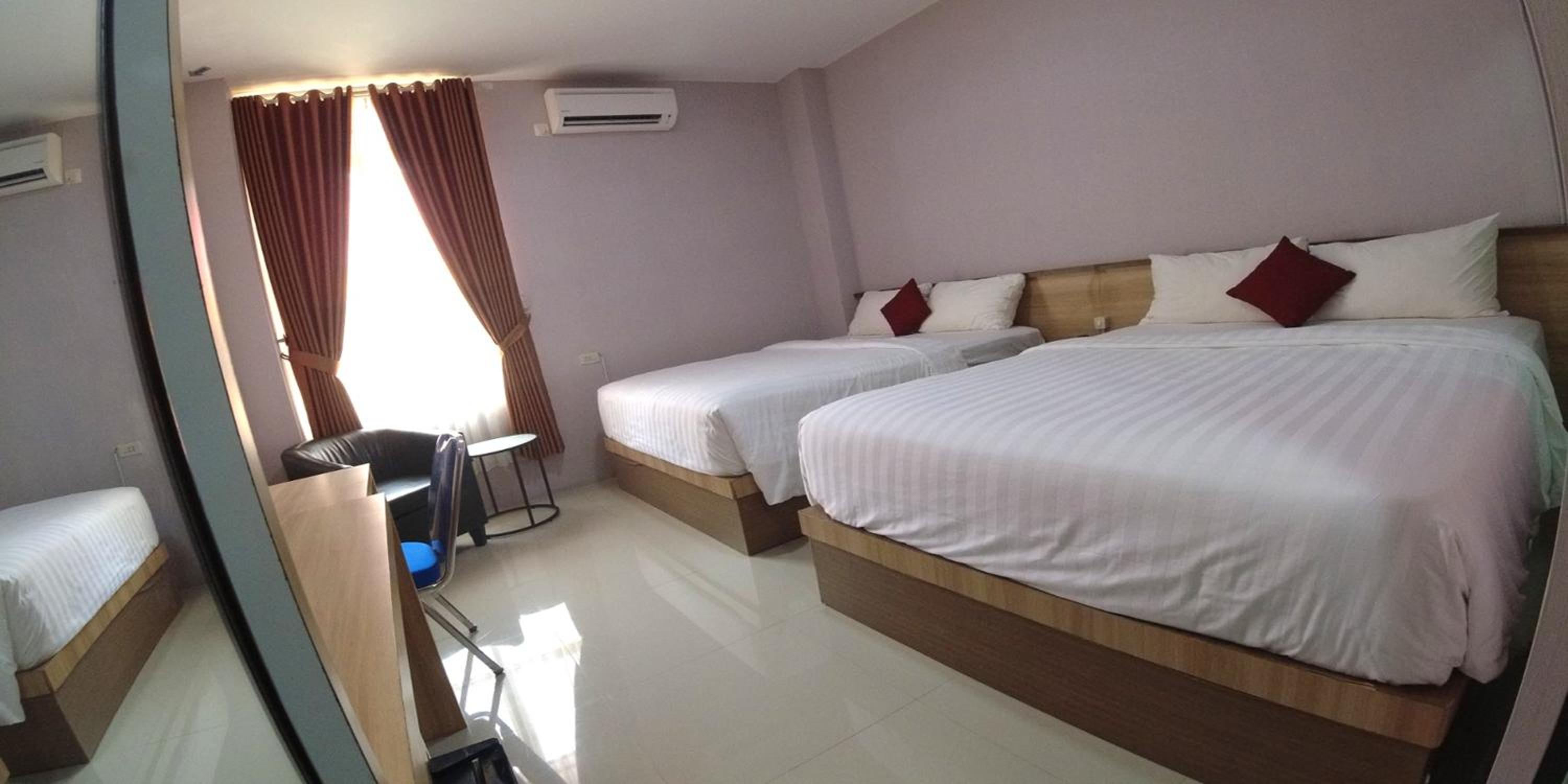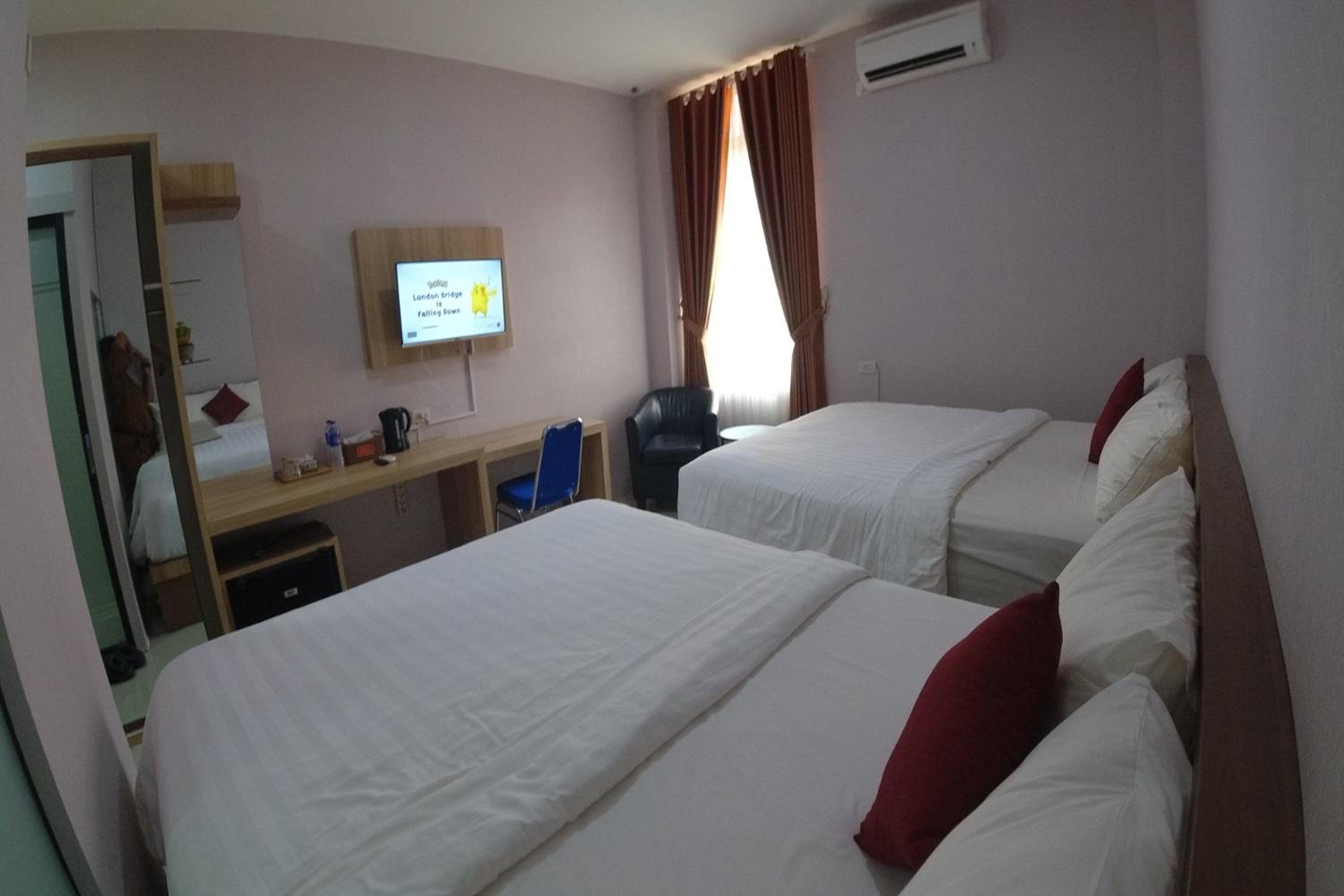 The hotel provides air-conditioned rooms with essential amenities for a comfortable stay like a desk, kettle, and flat-screen TV.