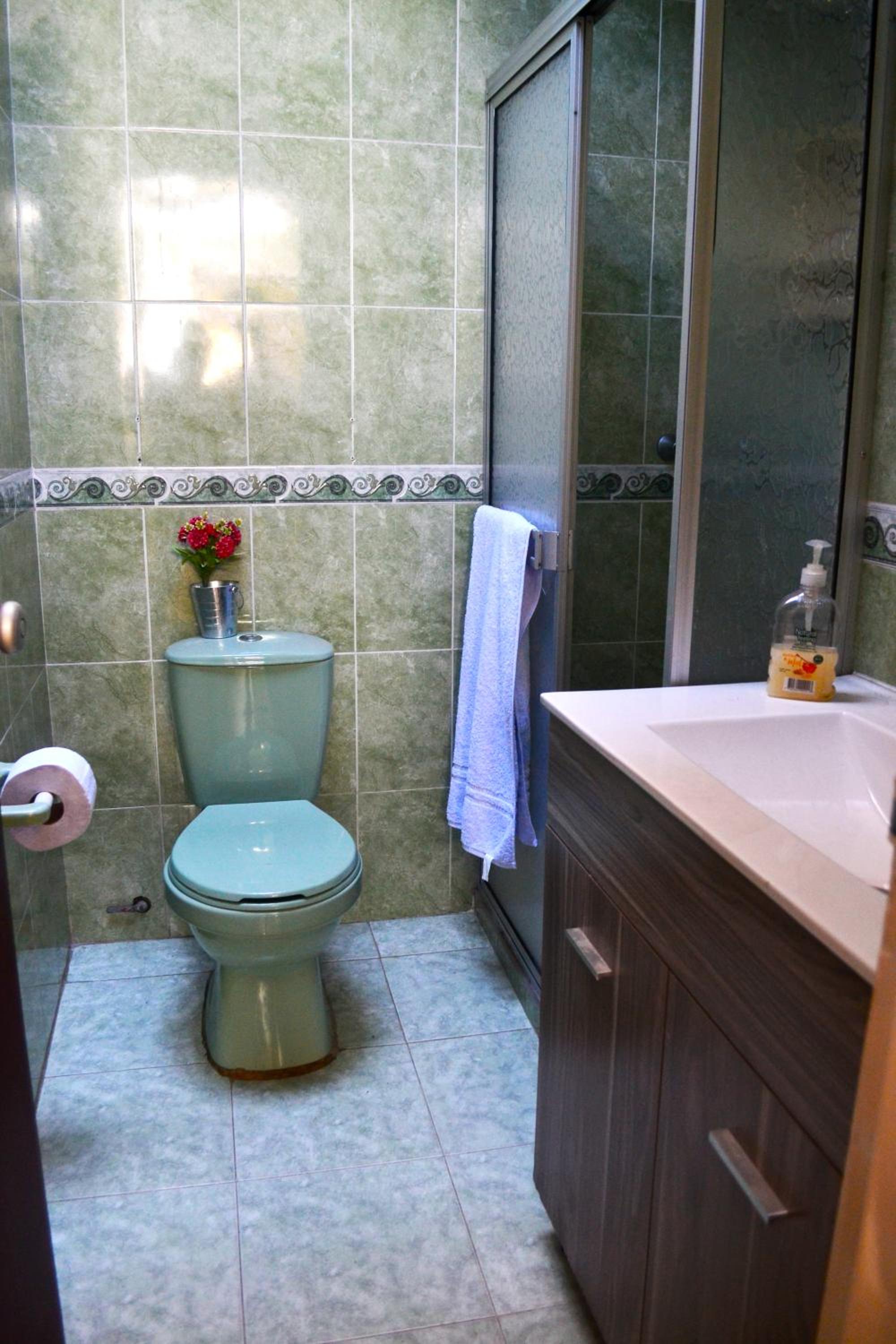 Relax in our bonita y cómoda habitación, complete with a flat-screen TV, cozy bedding, and all the amenities you need for a pleasant stay.