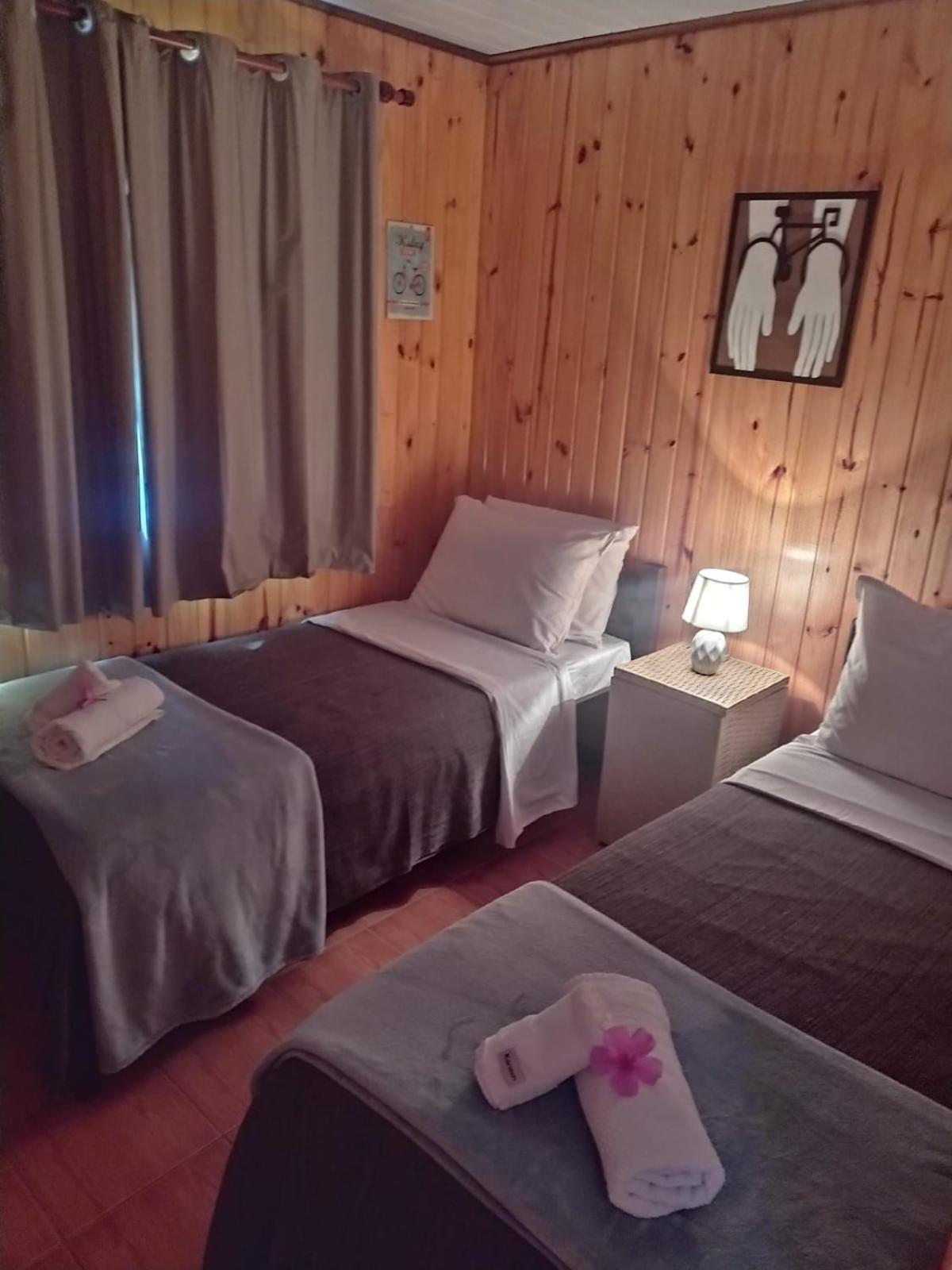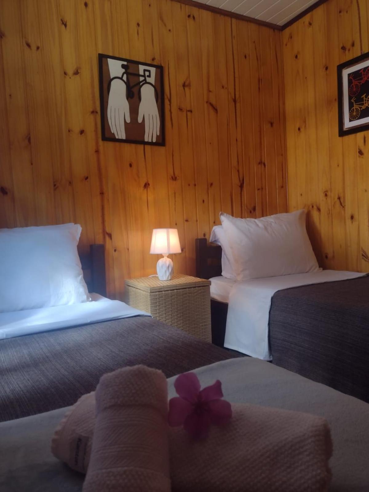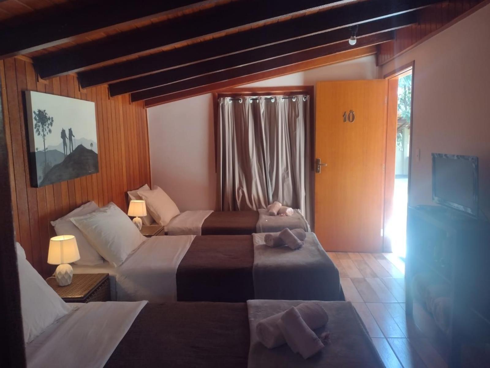 Infelizmente, o primeiro quarto que ficamos hospedados, era muito pequeno, não havia como se movimentar, e nem onde por a mala. Depois nos mudaram para um quarto com tamanho adequado, porém, em ambos a cama de casal era feita por uma junção de duas camas de solteiro, que não foram feitas para isso. Infelizmente o estrado da cama ficou inclinado, o que me causou dores fortes no nervo ciático, me impedindo de dormir nos últimos dois dias. Estou comentando, porque é uma oportunidade de tornar a pousada perfeita: tem MUITO espaço no terreno para quartos tão pequenos, por favor aumentem e coloquem um armário e um apoio de malas em todos os quartos. Por fim, comprem camas de casal normais, que vai melhorar muito o conforto. Muito obrigado e até a próxima.