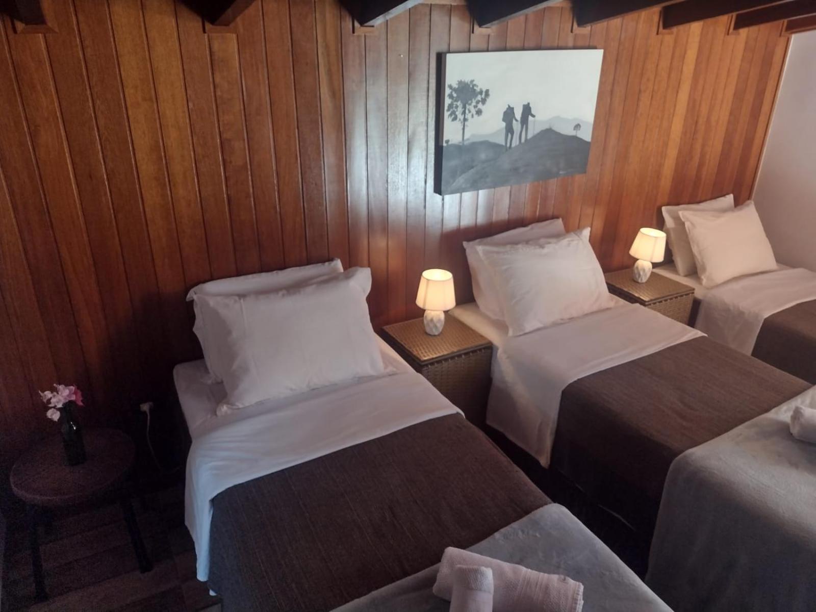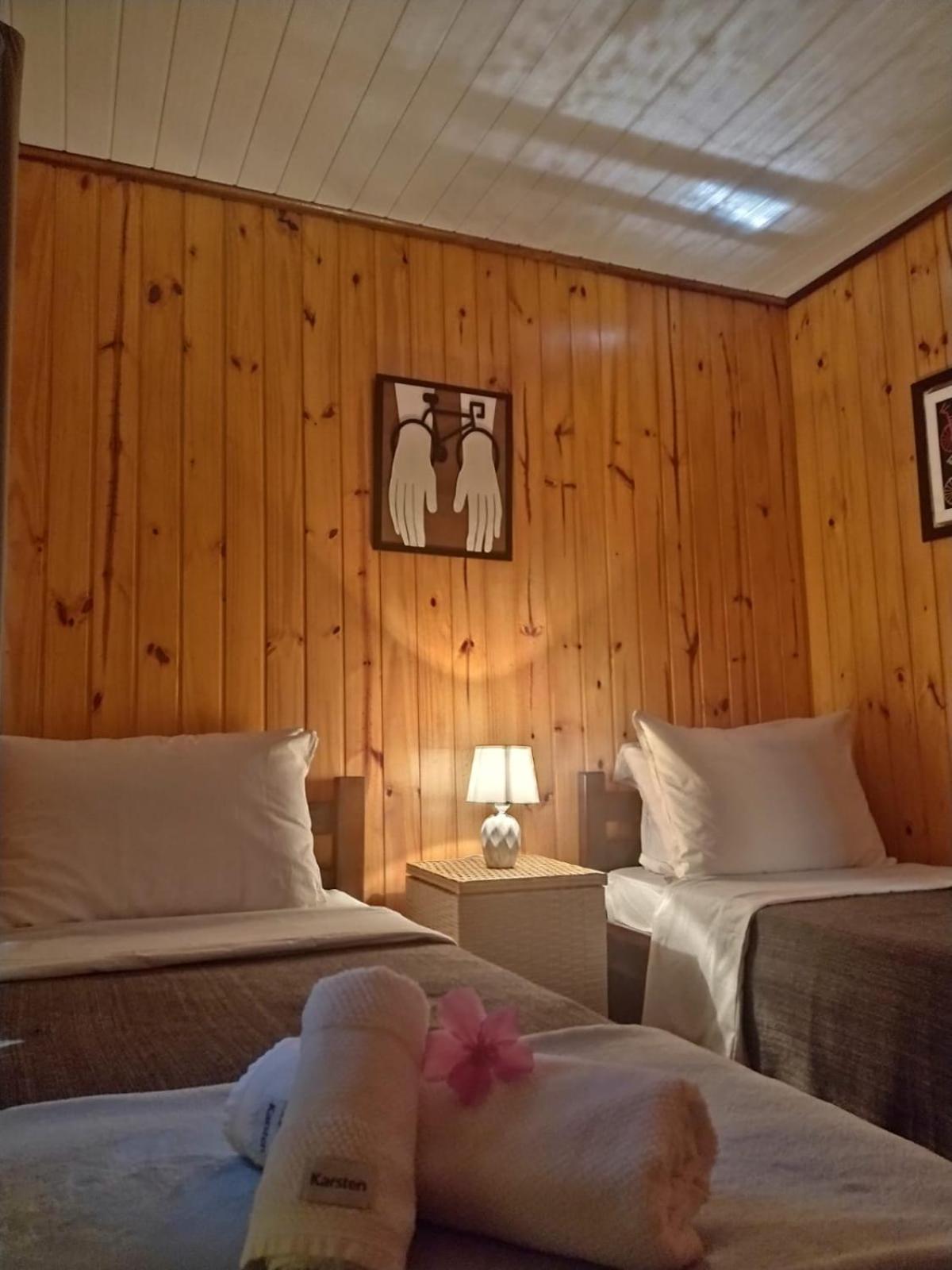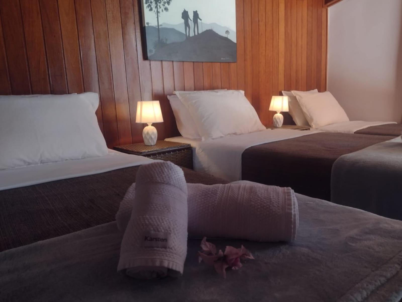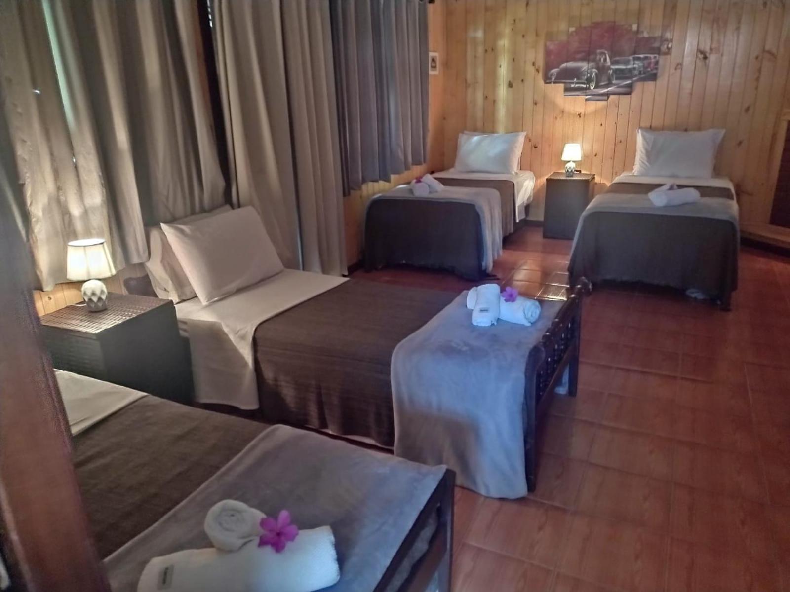 Infelizmente, o primeiro quarto que ficamos hospedados, era muito pequeno, não havia como se movimentar, e nem onde por a mala. Depois nos mudaram para um quarto com tamanho adequado, porém, em ambos a cama de casal era feita por uma junção de duas camas de solteiro, que não foram feitas para isso. Infelizmente o estrado da cama ficou inclinado, o que me causou dores fortes no nervo ciático, me impedindo de dormir nos últimos dois dias. Estou comentando, porque é uma oportunidade de tornar a pousada perfeita: tem MUITO espaço no terreno para quartos tão pequenos, por favor aumentem e coloquem um armário e um apoio de malas em todos os quartos. Por fim, comprem camas de casal normais, que vai melhorar muito o conforto. Muito obrigado e até a próxima.