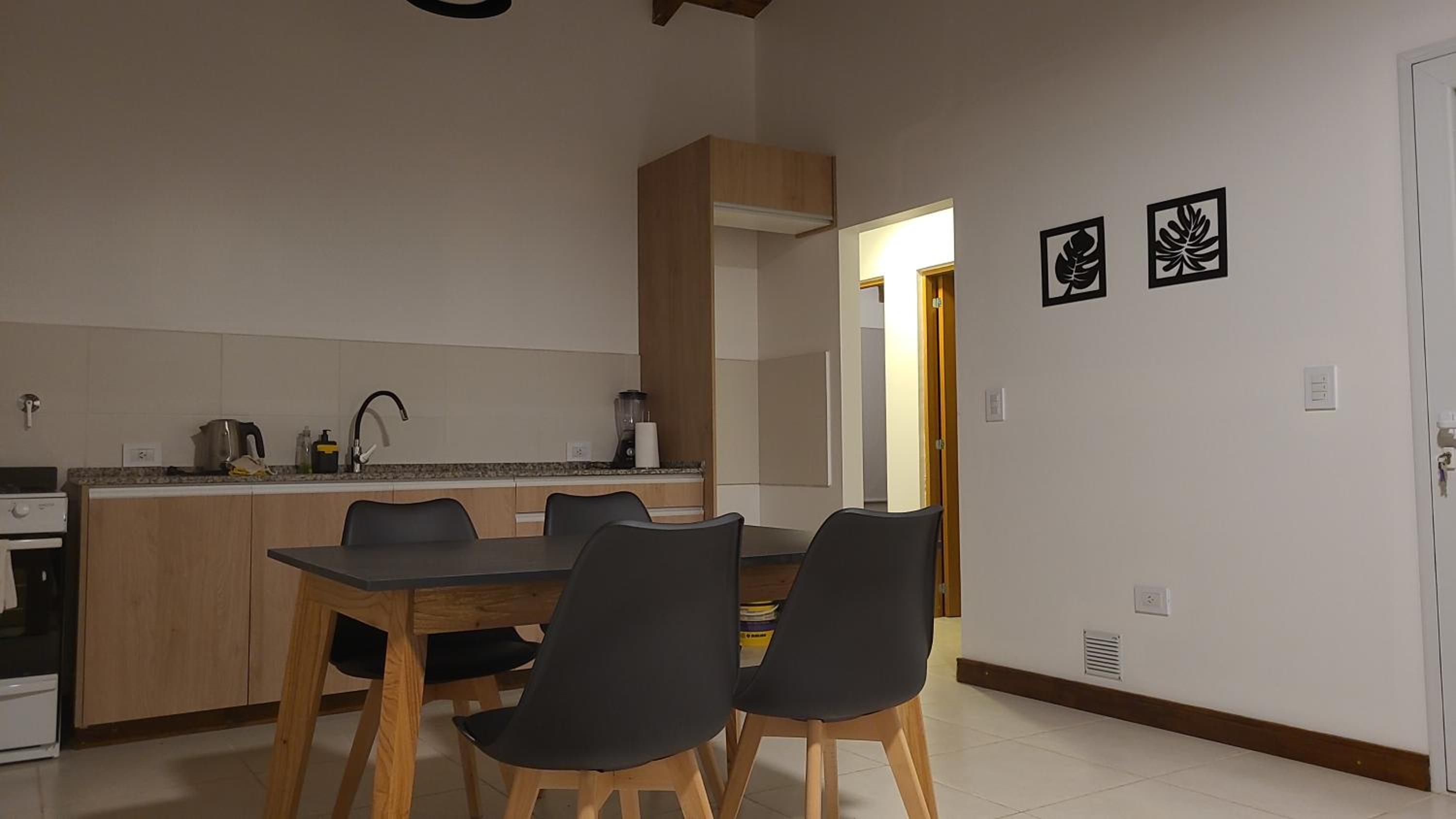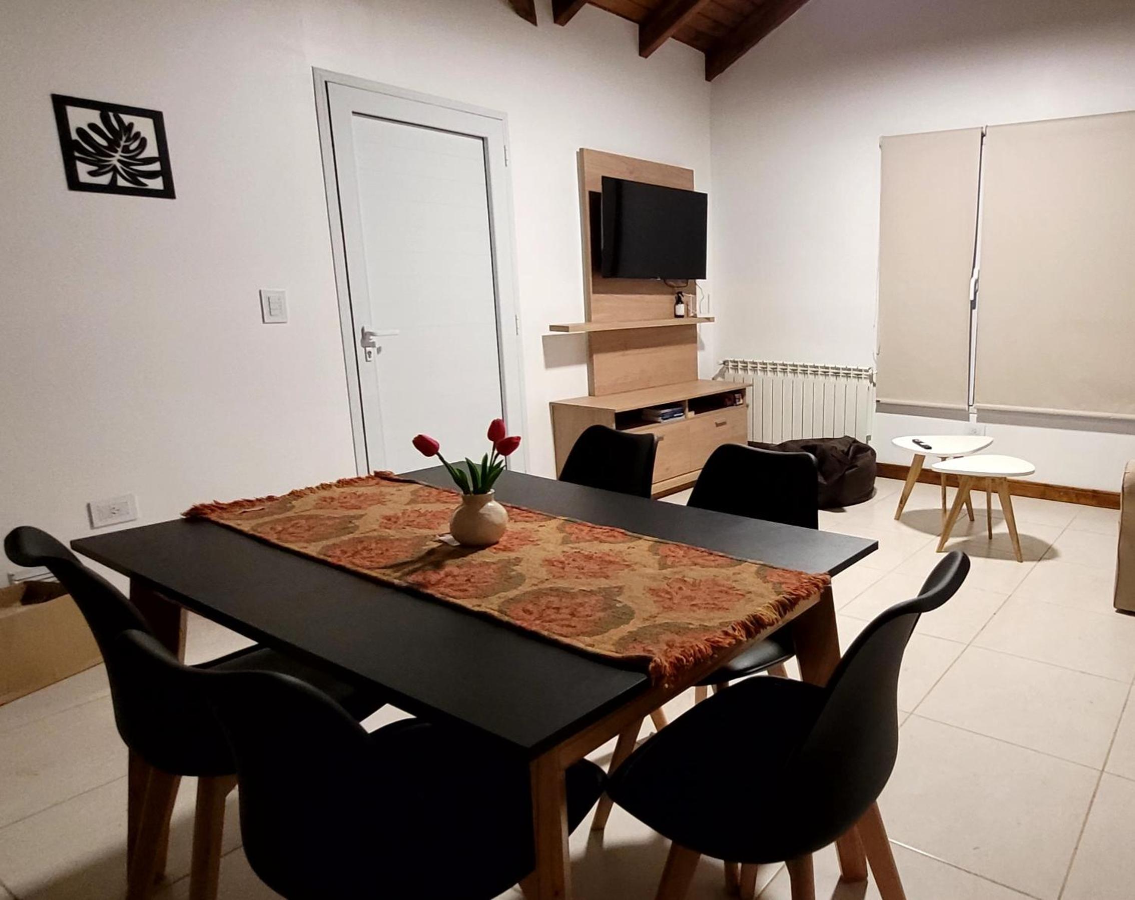 Enjoy the convenience of a well-equipped kitchen, cozy living room, and a flat-screen TV for entertainment.