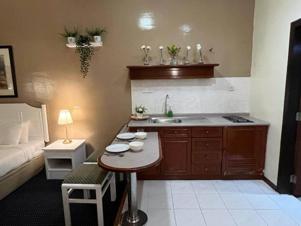 Convenient Amenities: Enjoy the convenience of a fully equipped kitchenette and a private bathroom with a relaxing bath.