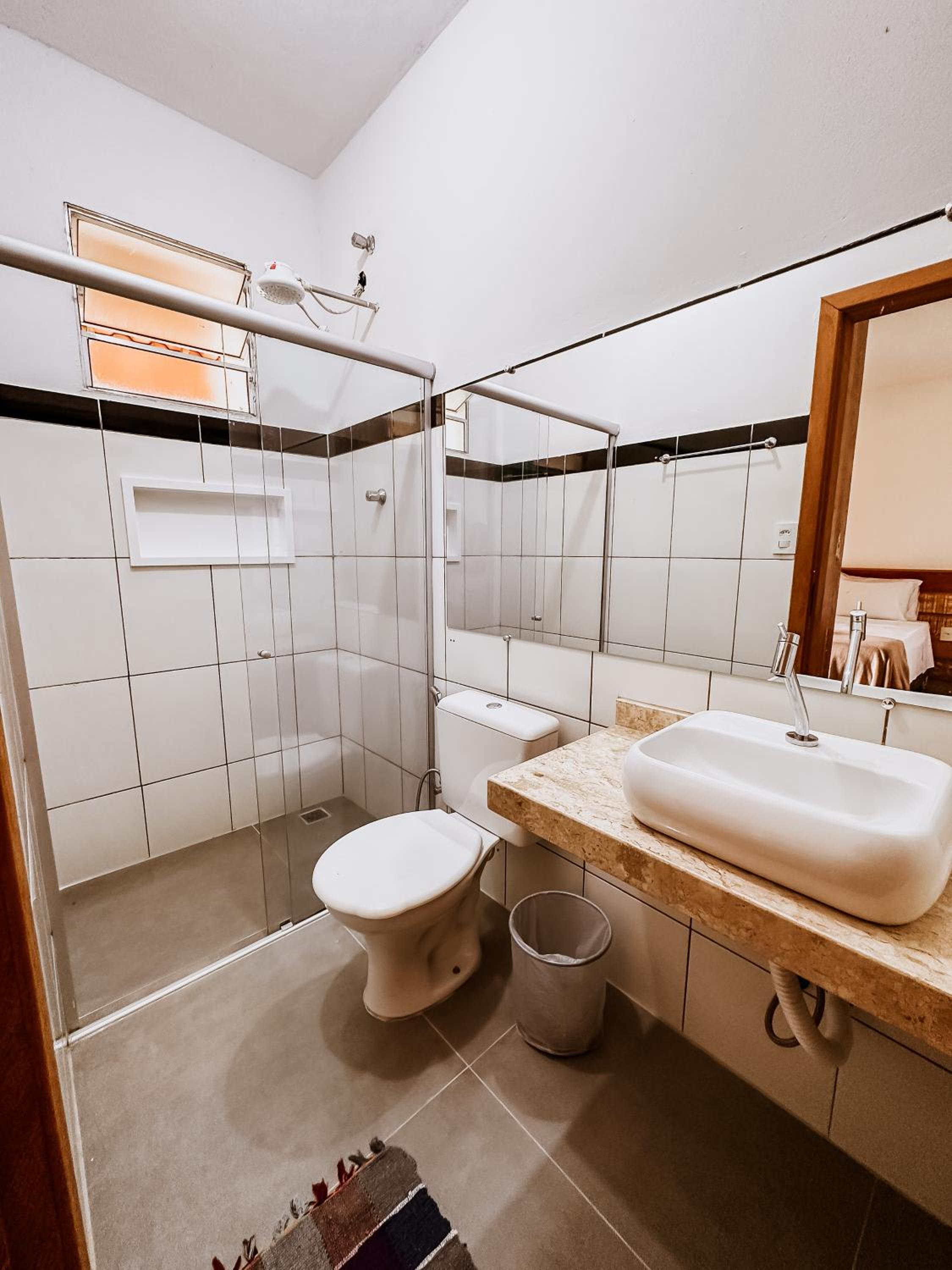 Falta charme no ambiente, pode melhorar os colchões e as roupas de cama. O quarto é muito bem iluminado, mas a luz é branca e vem direto no olho.