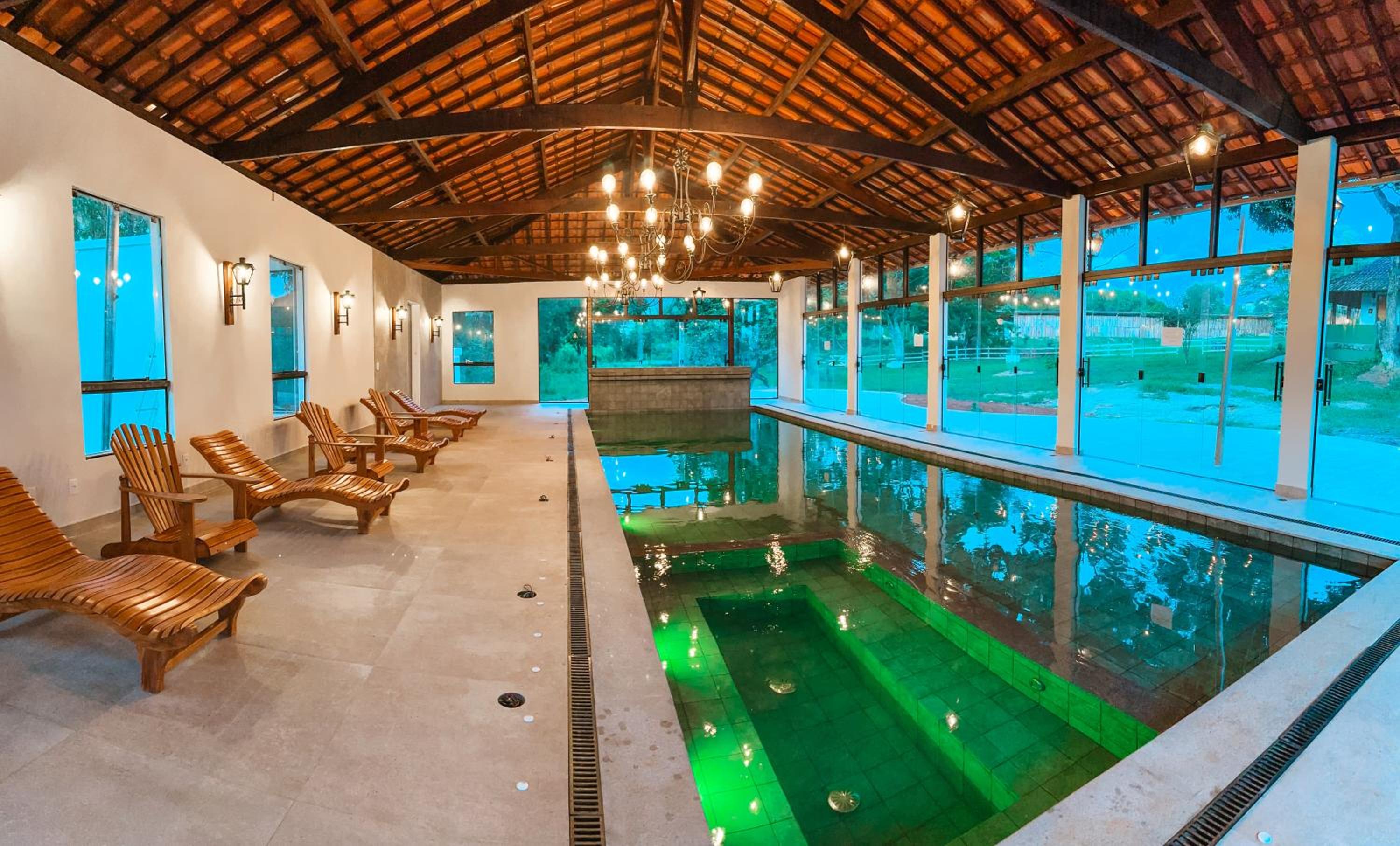 A piscina com cachoeira é top, a piscina aquecida é muito boa também, café da manhã regado!