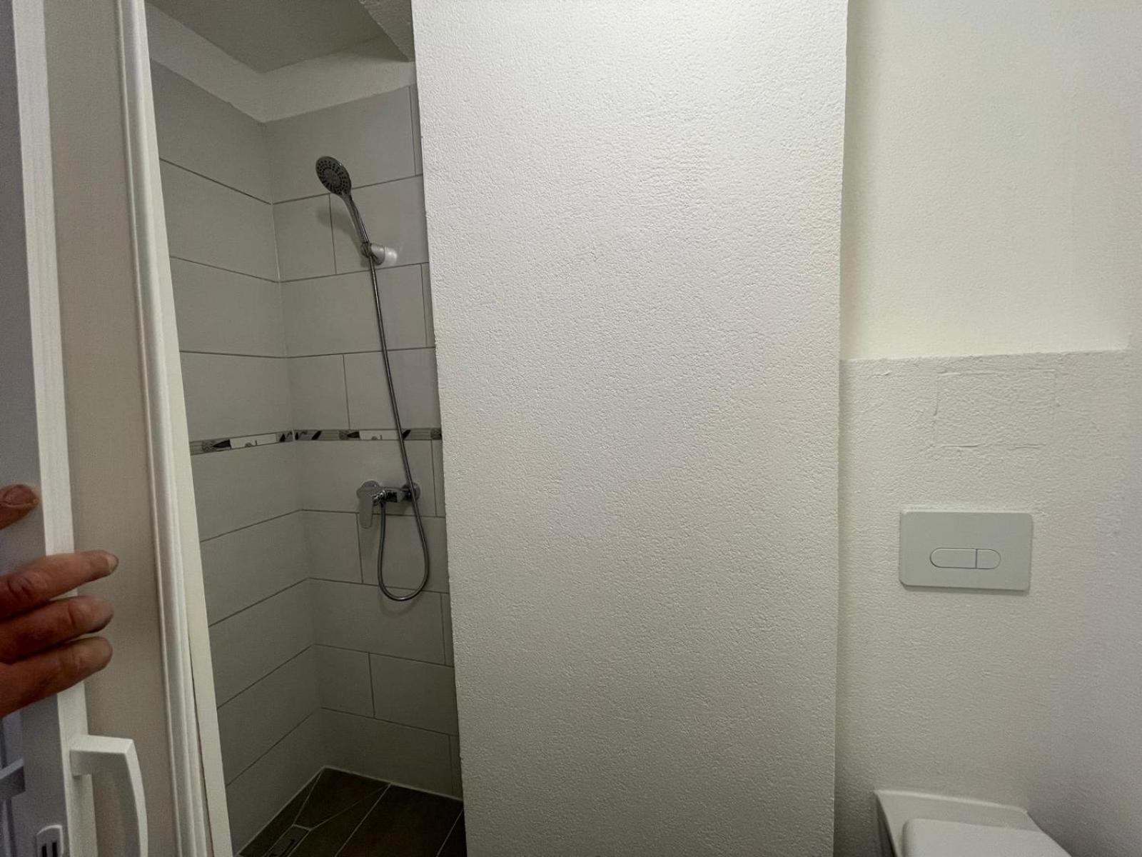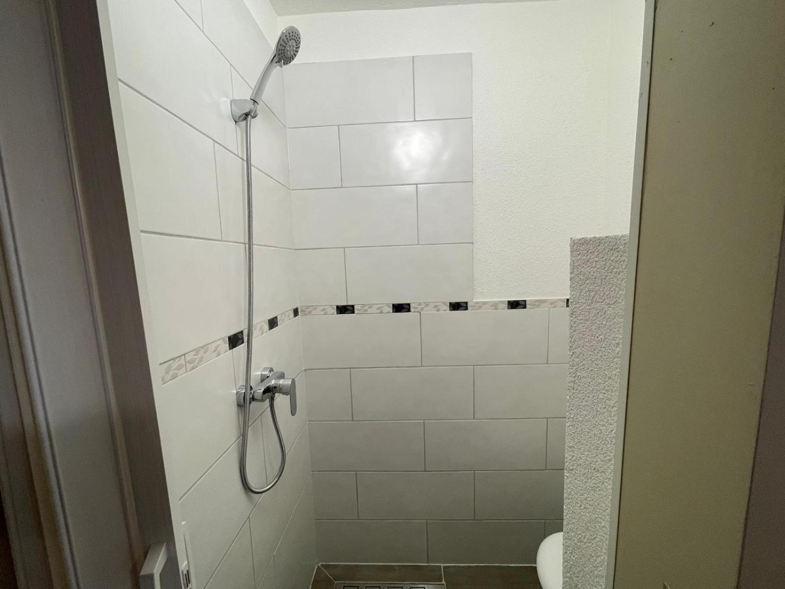 Kein Fernseher am Zimmer, sehr schwacher und alter Haarföhn, Löcher mit Kabeln raus in den Wänden, die Dusche ist einfach ein gefliester Raum ohne Trennwand, keine Duschutensilien, gar nichts.