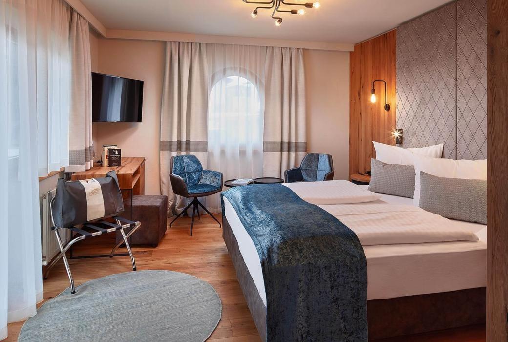 Experience the elegance of Sporthotel Ellmau with its charming rooms boasting balconies and panoramic mountain views. Relax in style with amenities like cable TV, bathrobes, and a seating area.