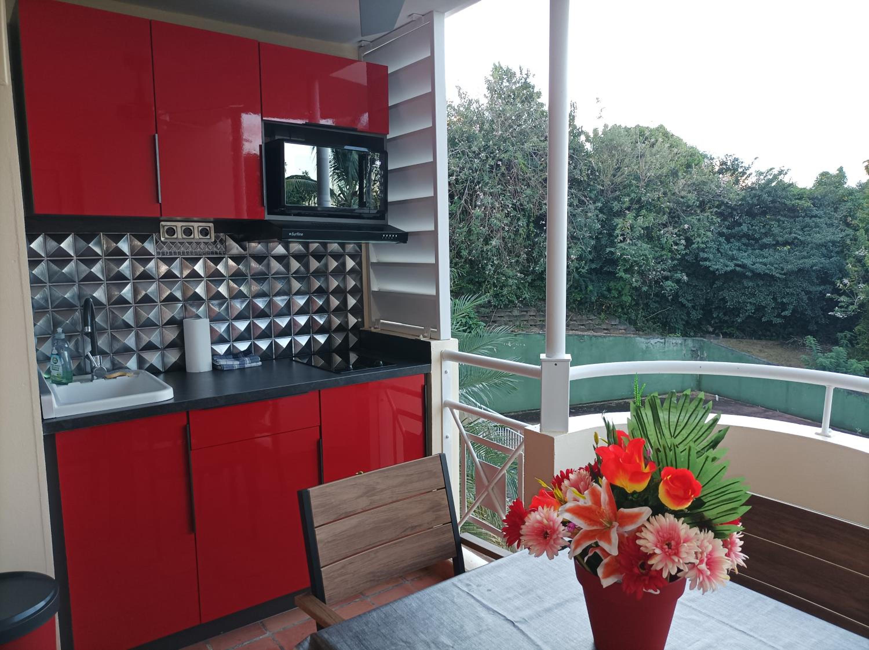 L'emplacement de la cuisine, très bien placé sur le balcon