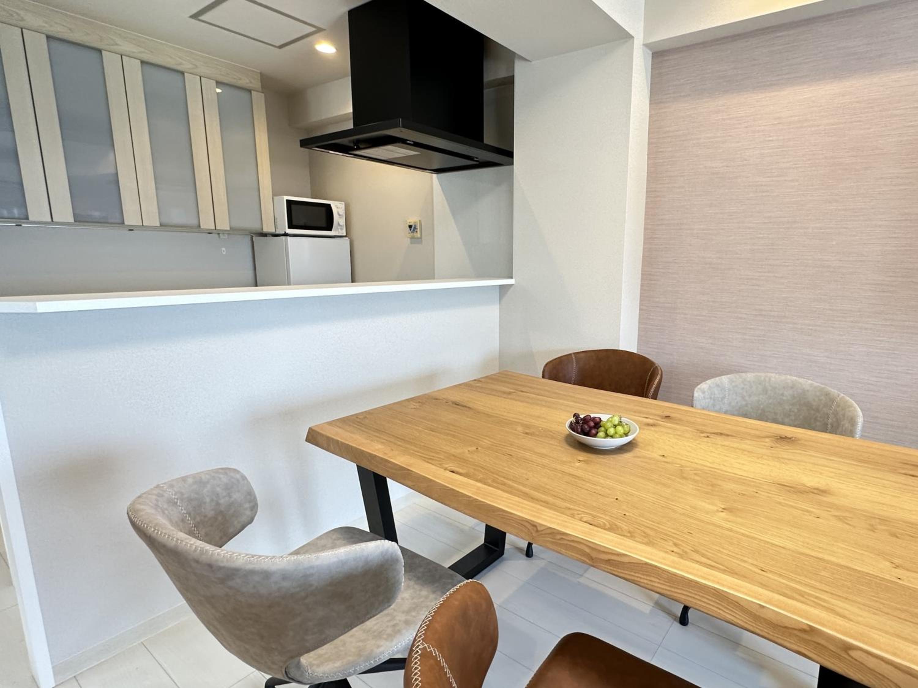 貸し切りの露天風呂が良かった。古いマンションを改装した部屋だが、広々として使い勝手がよかった。