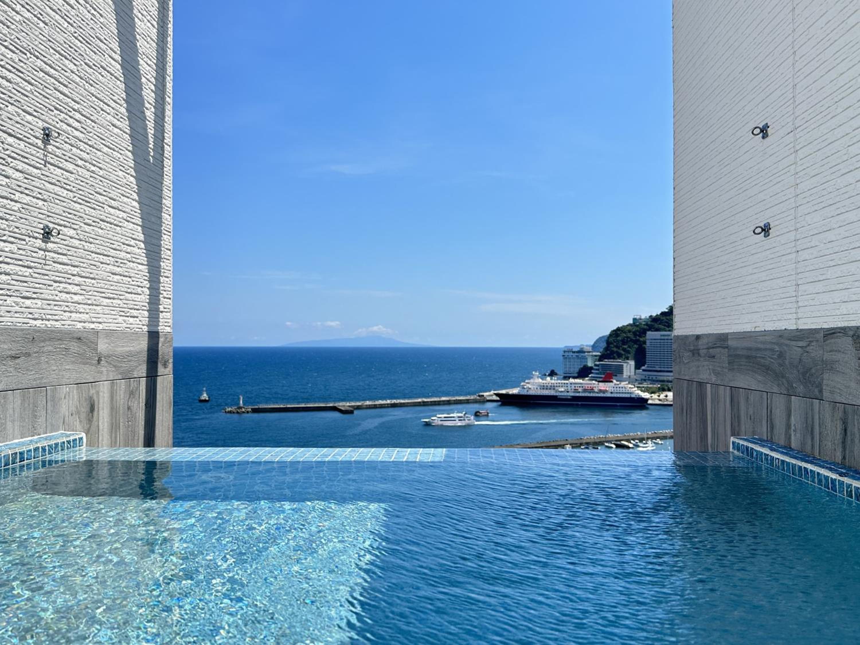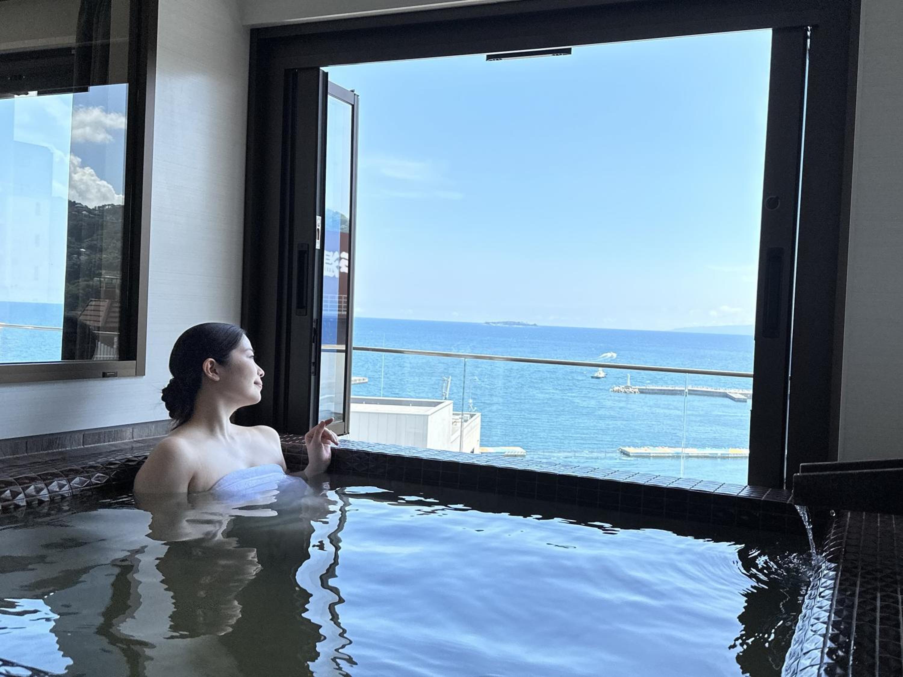 Indulge in the top-floor public hot-spring bath overlooking the sea, offering a serene and rejuvenating experience.
