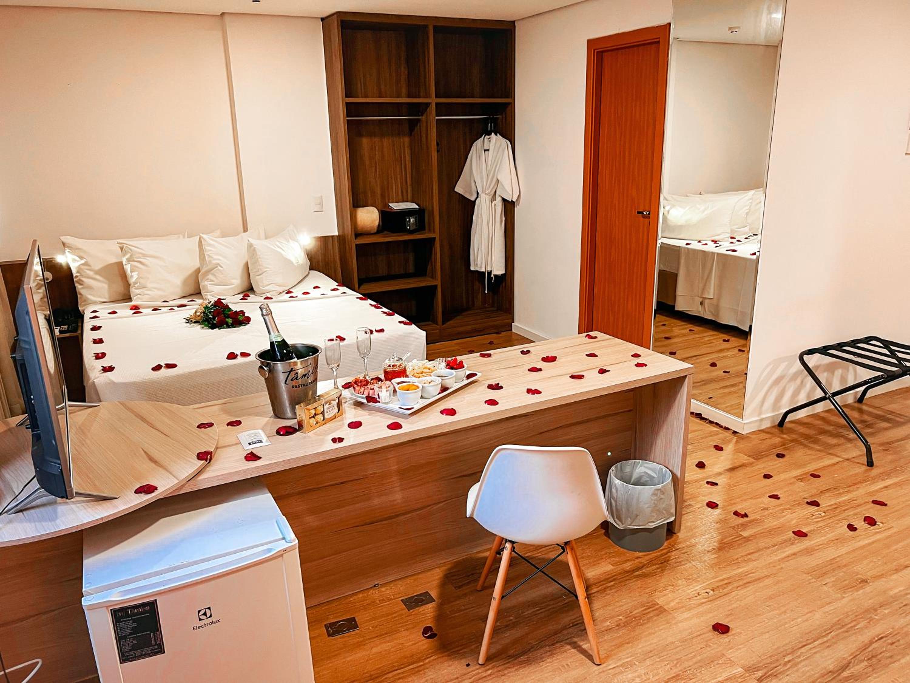 Fiz a reserva pelo booking e o desconto era muito bom, mas, quando nos instalamos, deparamos com um quarto minúsculo, uma pequena cama de casal, uma de solteiro e móveis grudados na cama e parede. Um espelho enorme na parede onde a cama de solteiro estava encostada na parede. Dificultando a nossa mobilidade e insegurança por quebrar o espelho dormindo. Havia um sabonete usado na pia do banheiro. Vale ressaltar que já havíamos nos hospedado neste mesmo hotel por uma semana e ficamos em um quarto amplo, roupão, sabonetes, escova e creme dental e todos os dias havia limpeza no quarto e banheiro. Ficamos uma semana pelo Club Bancorbras e fomos muito bem instalados, mas neste quarto minúsculo, foi muito ruim. Se