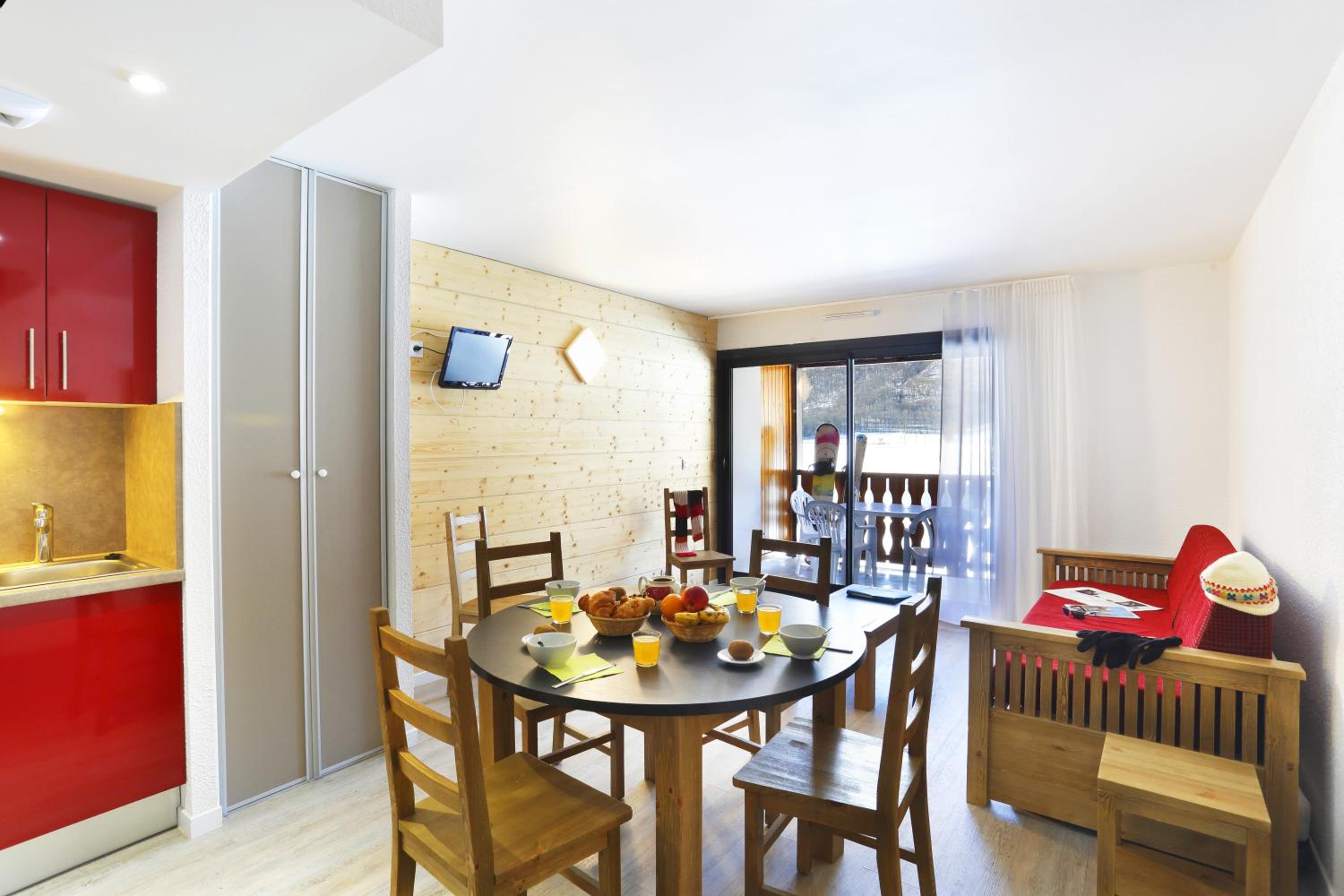 Please note that WiFi is available in the public areas. For guests wishing to access WiFi from their apartment, an additional EUR 16 per week charge applies. Bathroom linen, bed linen and kitchen linen are not included but can be rented on site: - Bed linen costs EUR 10 per person and per change - Towels cost EUR 10 per person and per change TV is available at an extra cost of EUR 42 per week or EUR 8 per day.