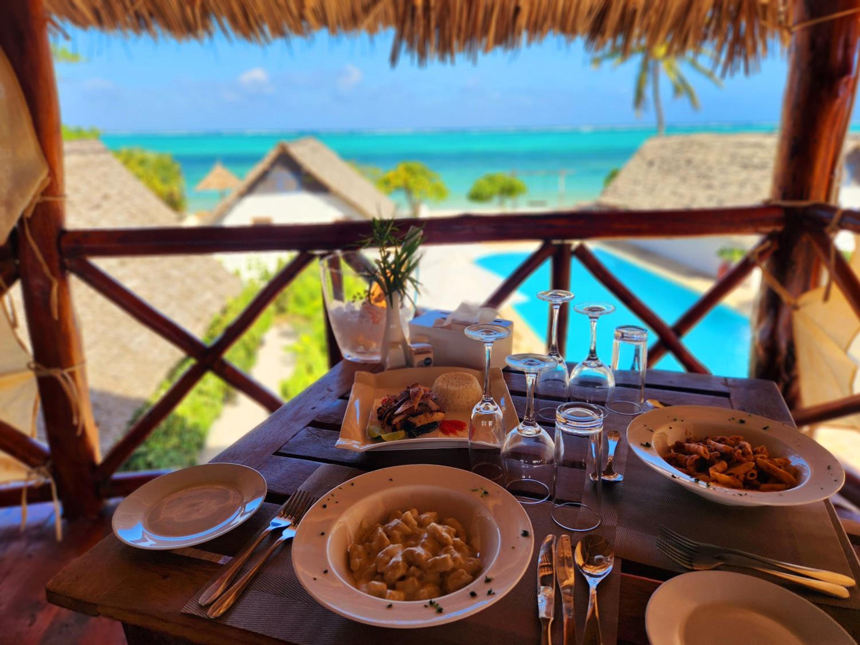 Indulge in a culinary journey at Almas Beach Boutique Hotel with a restaurant offering a delightful fusion of African, Italian, and Seafood cuisine. Vegetarian and halal options are also available upon request, catering to diverse palates.