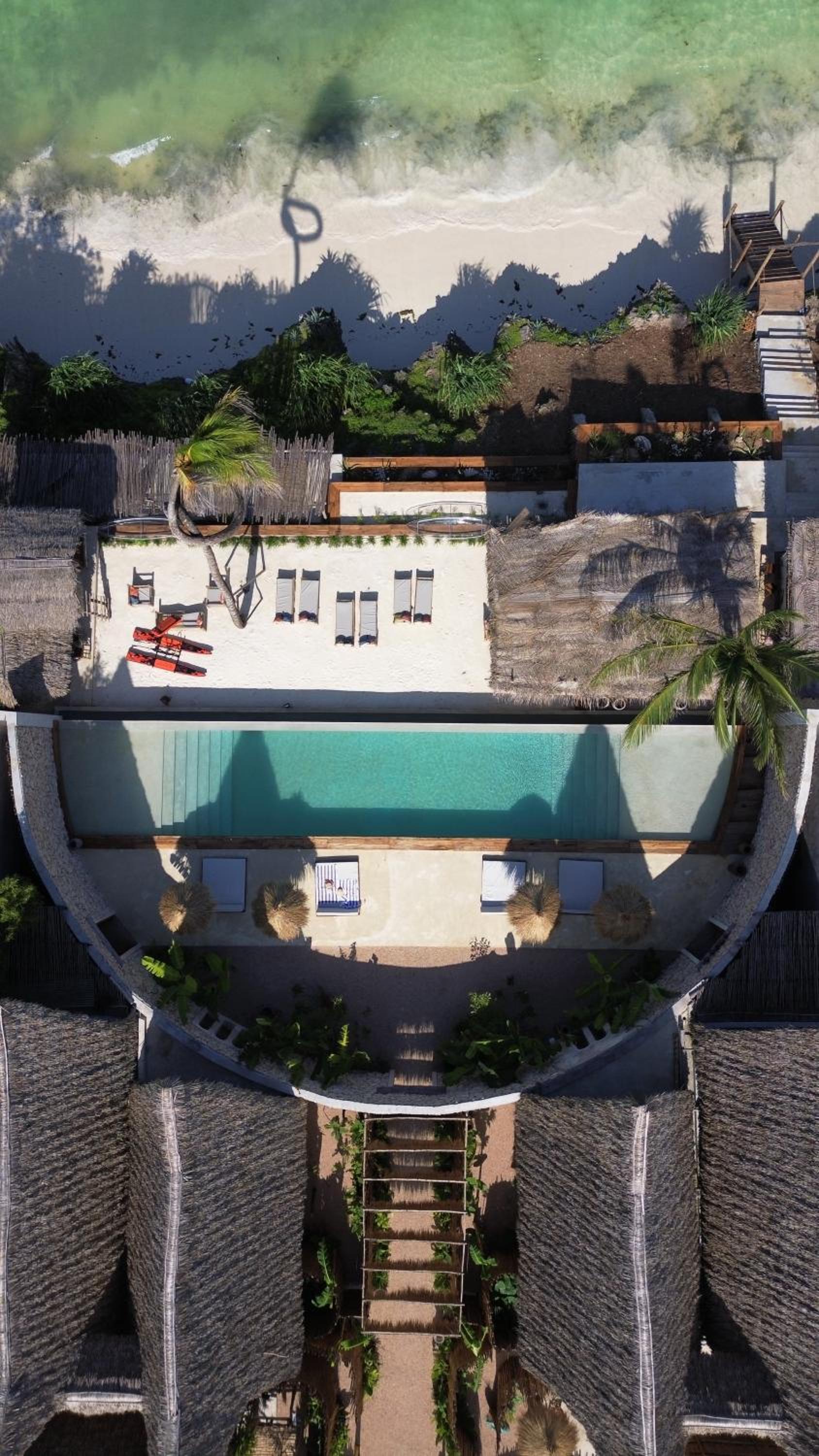 Enjoy the tropical sun at the outdoor swimming pool or relax on the private beach area just steps away from Jambiani Beach.