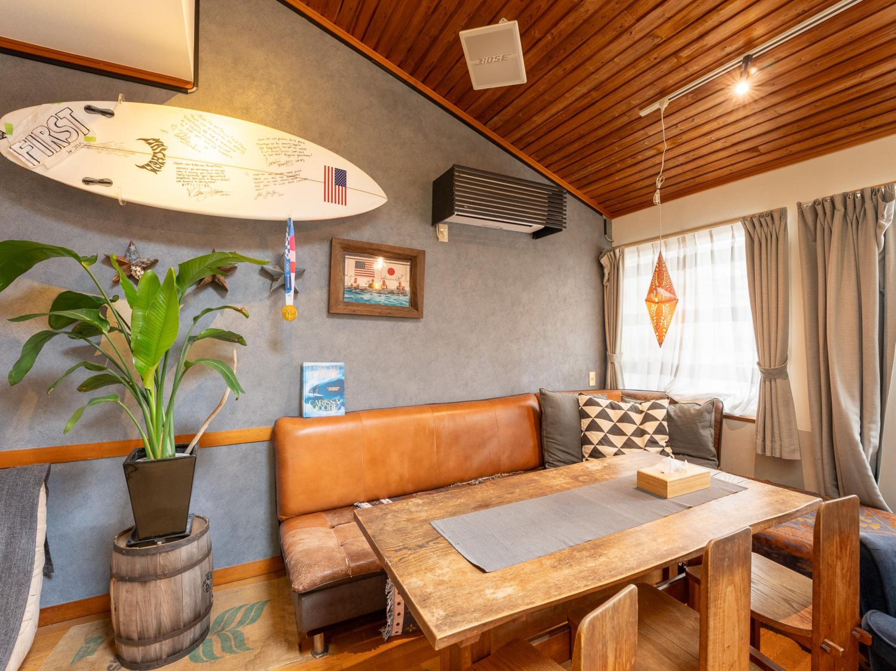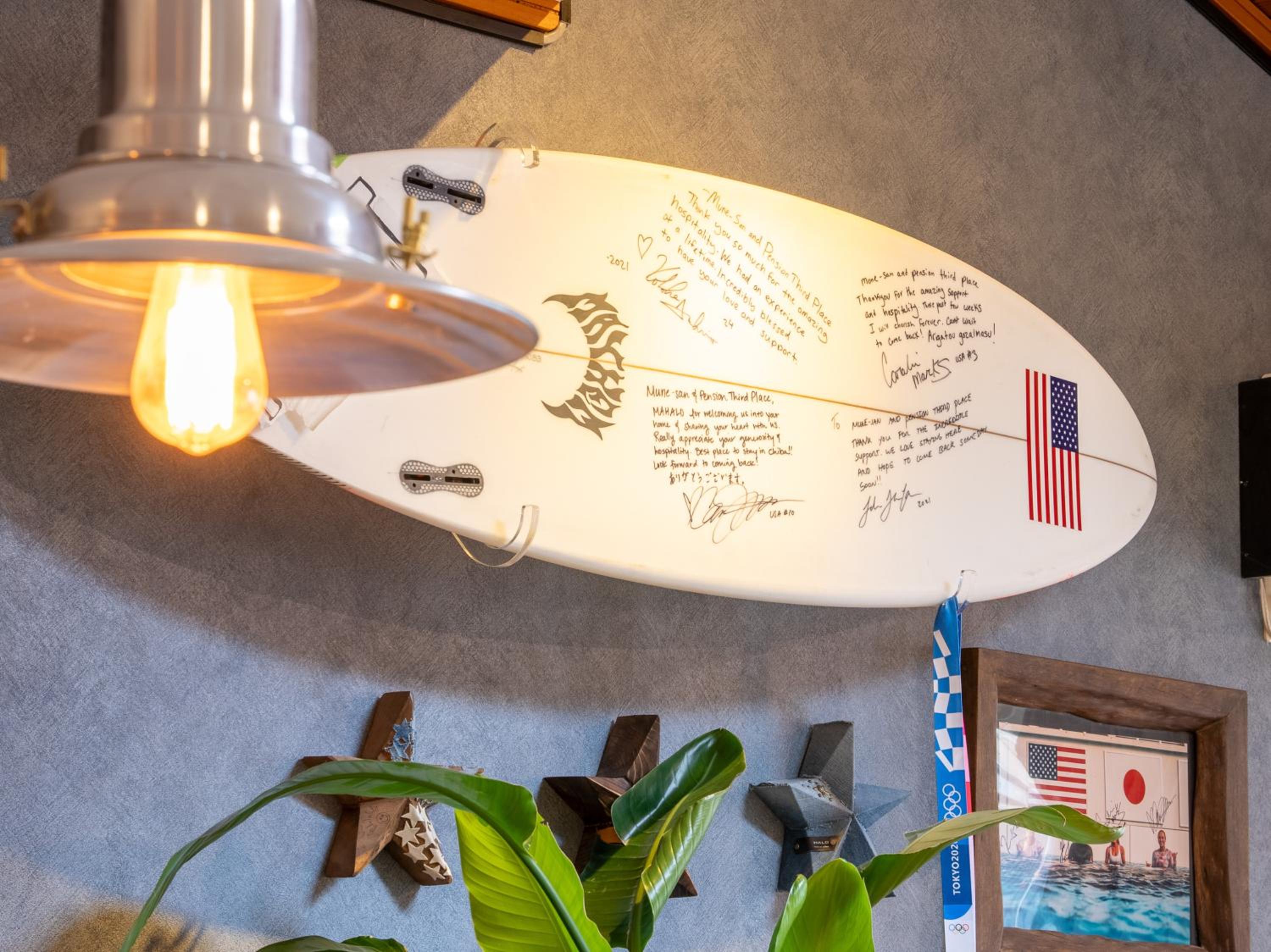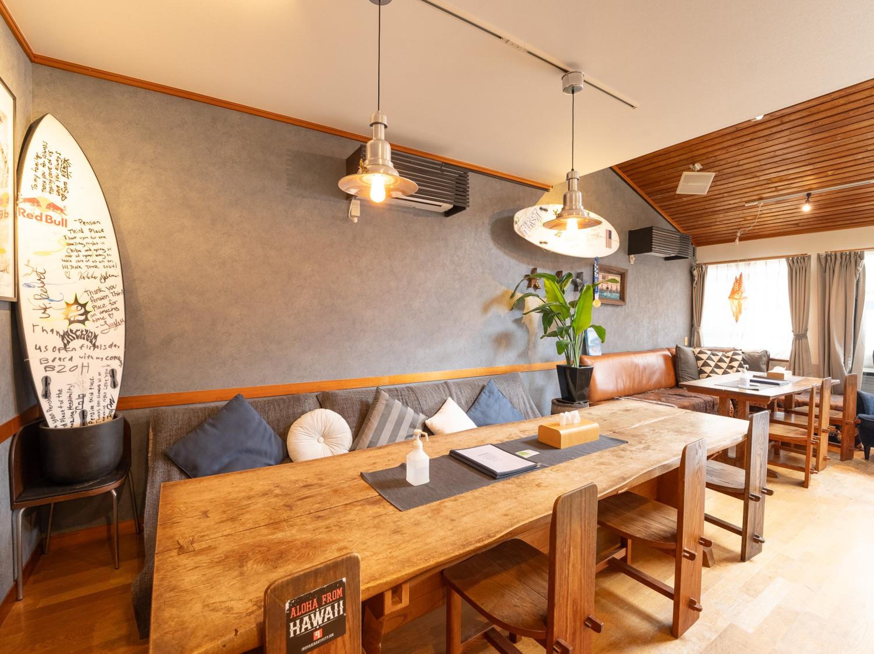 Third Place is a supercool surf-stay with an adjoining pizza restaurant, a little surf-shop and all the comfort you need with guest-only areas and areas where you can hang with local surfers. It's perfectly located a very short walk to Kujukuri beach. Mune-san and his team are awesome and make you feel at home in this Japanese-Californian styled surf oasis. Plus there's heaps of surf history throughout Third Place with signed boards and posters from events—JJF, Carissa Moore etc. It's special.