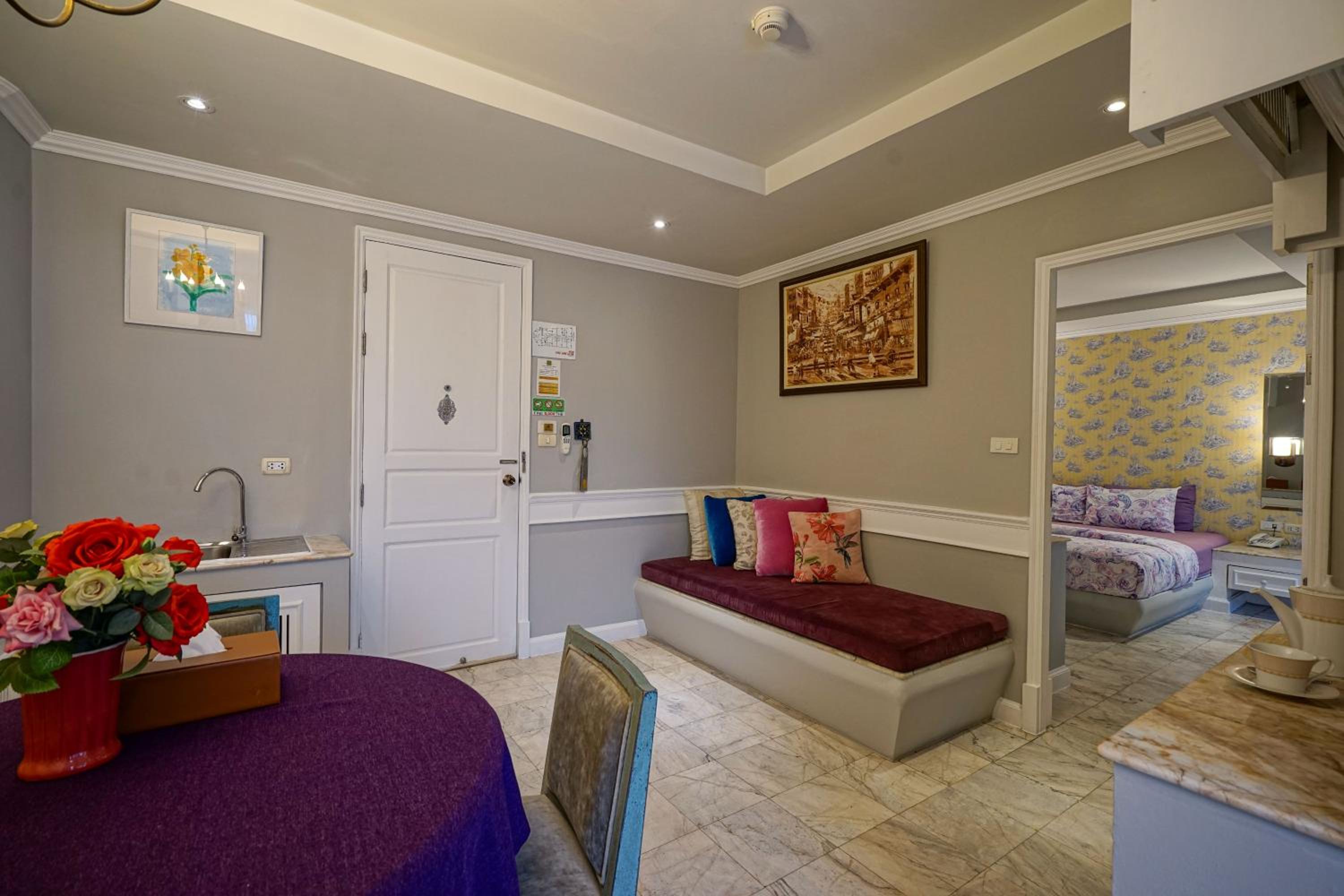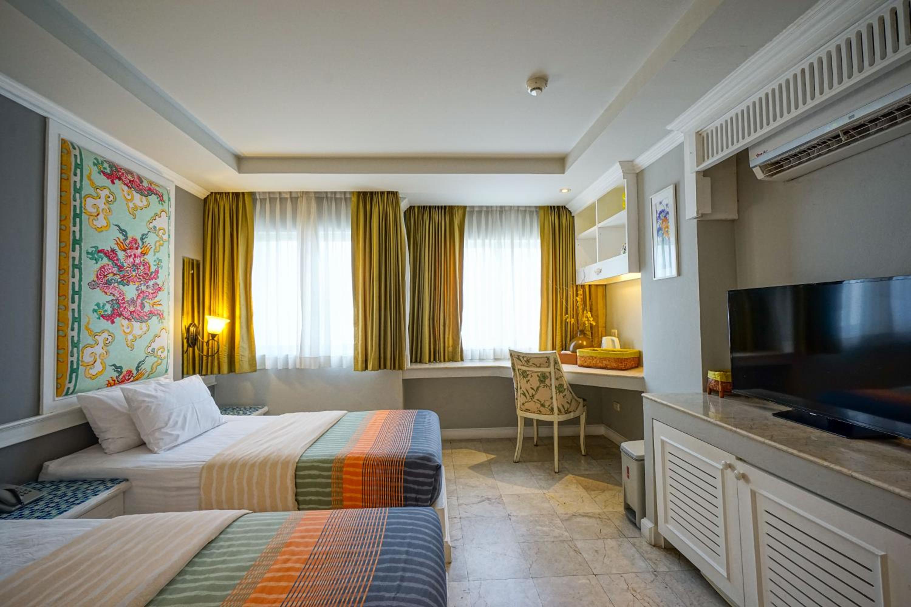 At Boutique Pingnakorn Hotel, experience elegance and comfort in every room with private balconies offering breathtaking city views. The beautifully designed rooms feature fine furnishings, artworks, and luxurious amenities like flat-screen TVs and minibars.