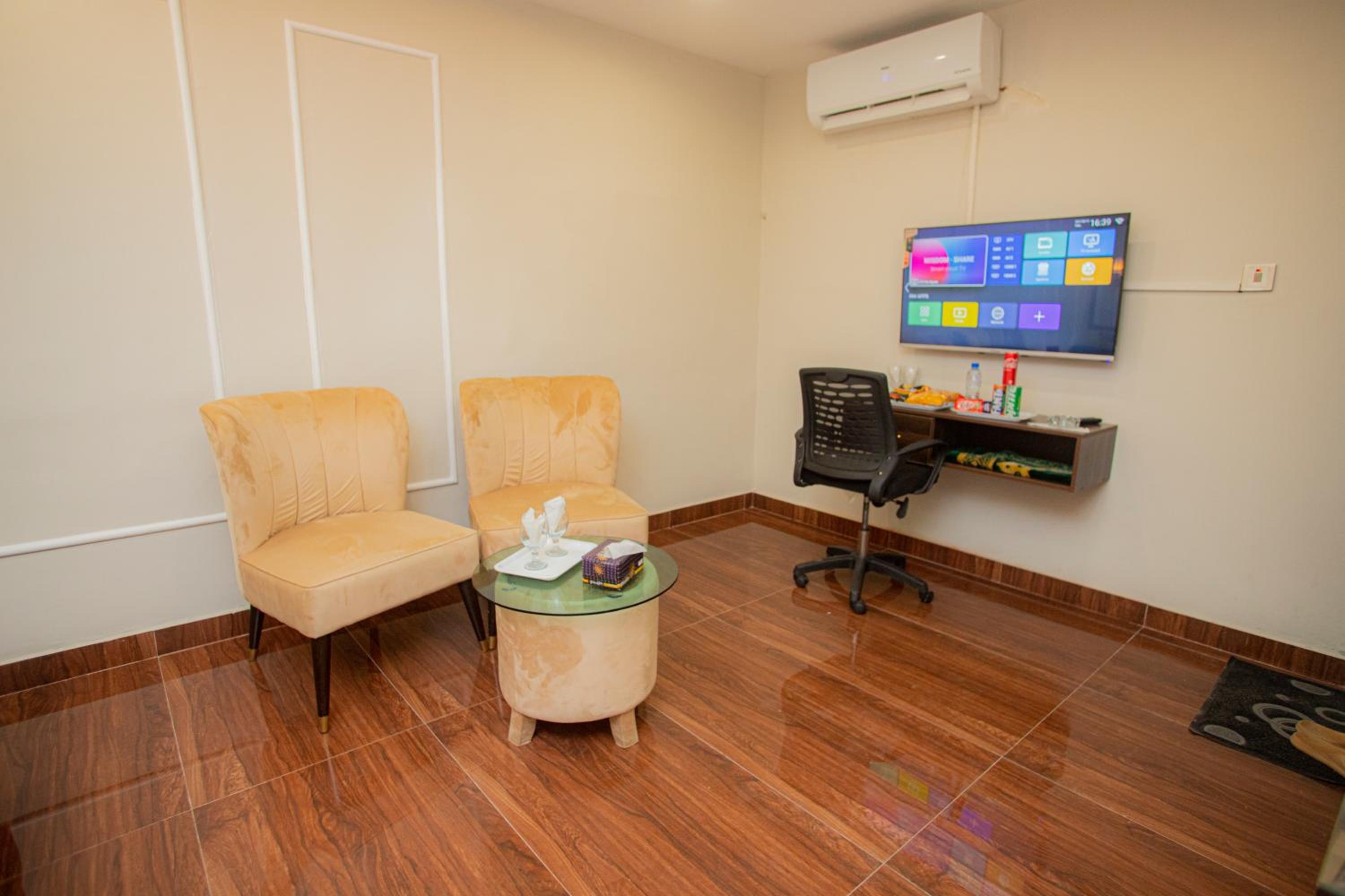 My apartment was at the back side at first floor no lift and walking thru kitchen area with food smell and i was not comfortable sending kids wife alone thru that. Door of the apartment was glass door with no lock n privacy. So dont book the apartment. Inside rooms were good n clean. Breakfast was good. Ground floor rooms look good n comfy. My internet was also not working for 2 days