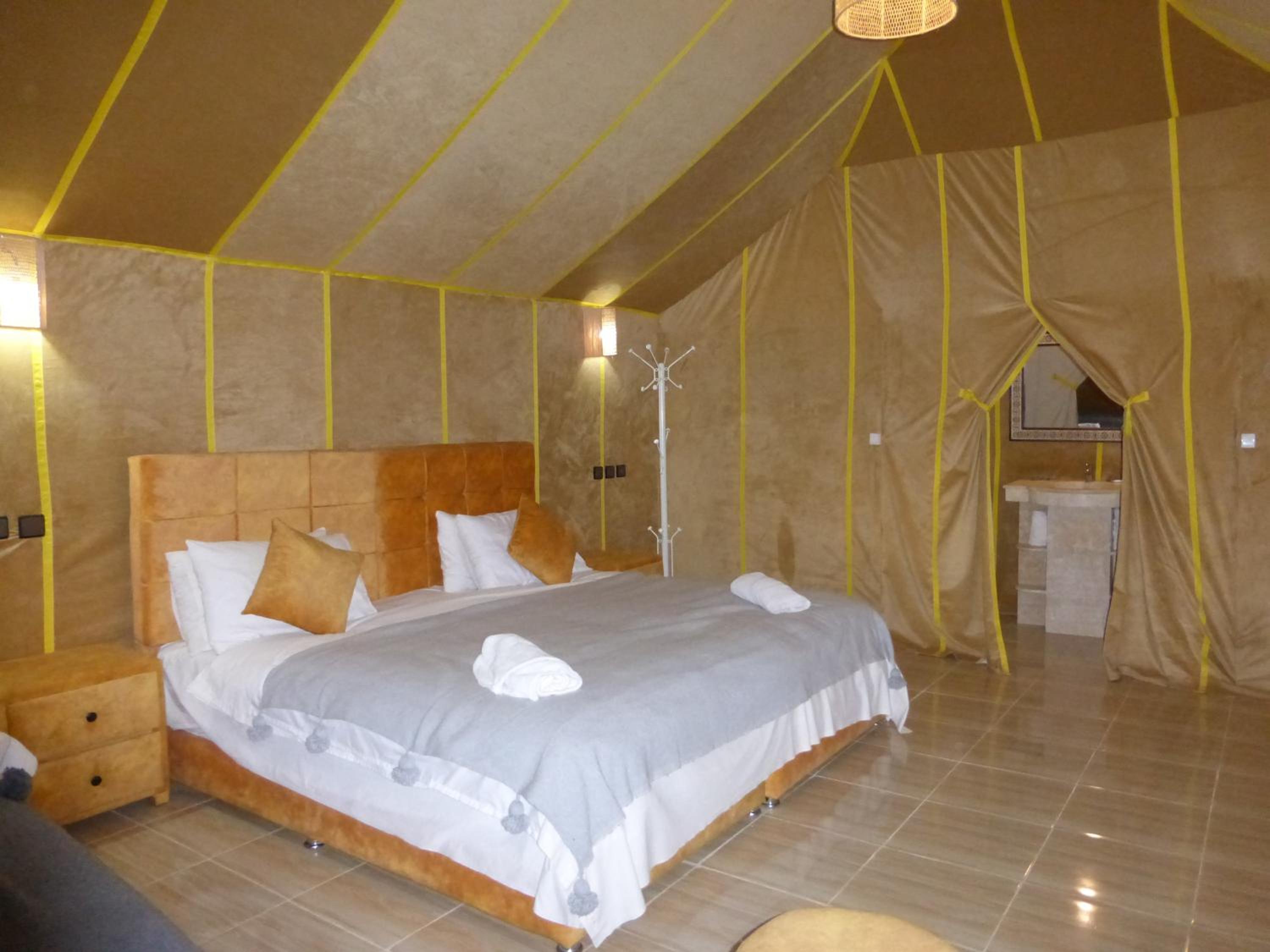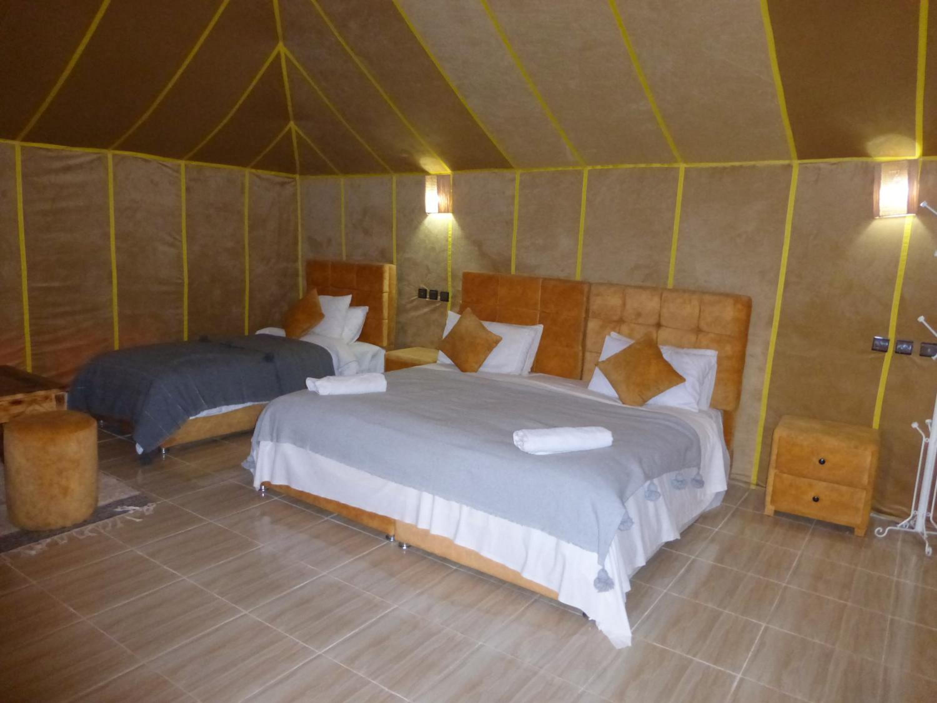 we spend best time in Lenas desert camp merzouga Nice and clean room, very comfortable bed. Great host, very welcoming and nice. He organised a camel trip for us even though we asked at the last moment. Amazing breakfast. Thank you Lena's desert camp merzouga